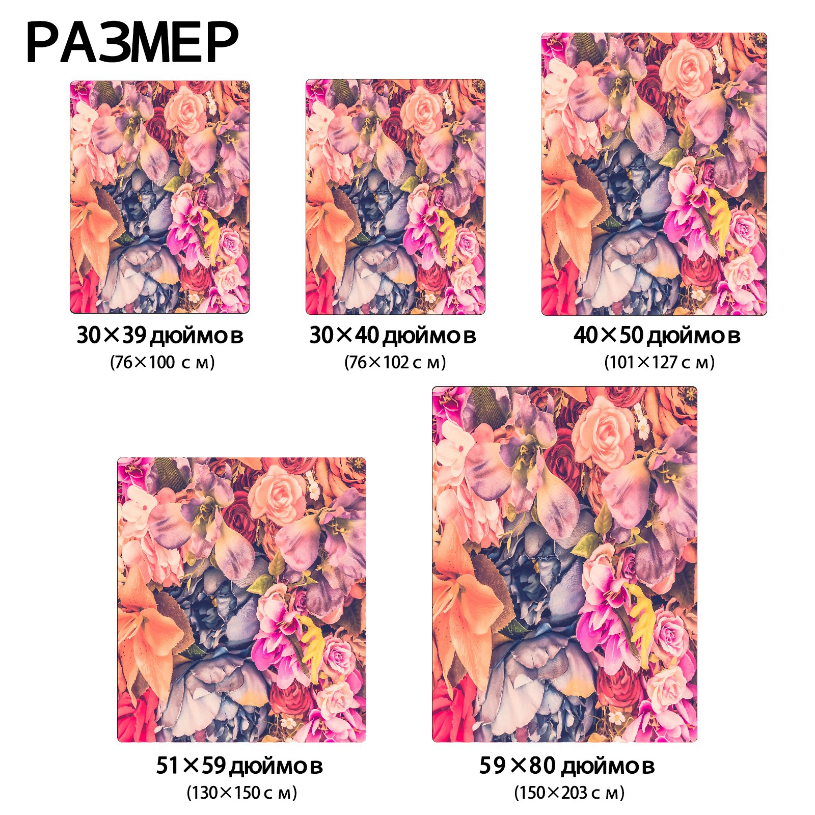 Beautiful Different Flowers 76x102cm