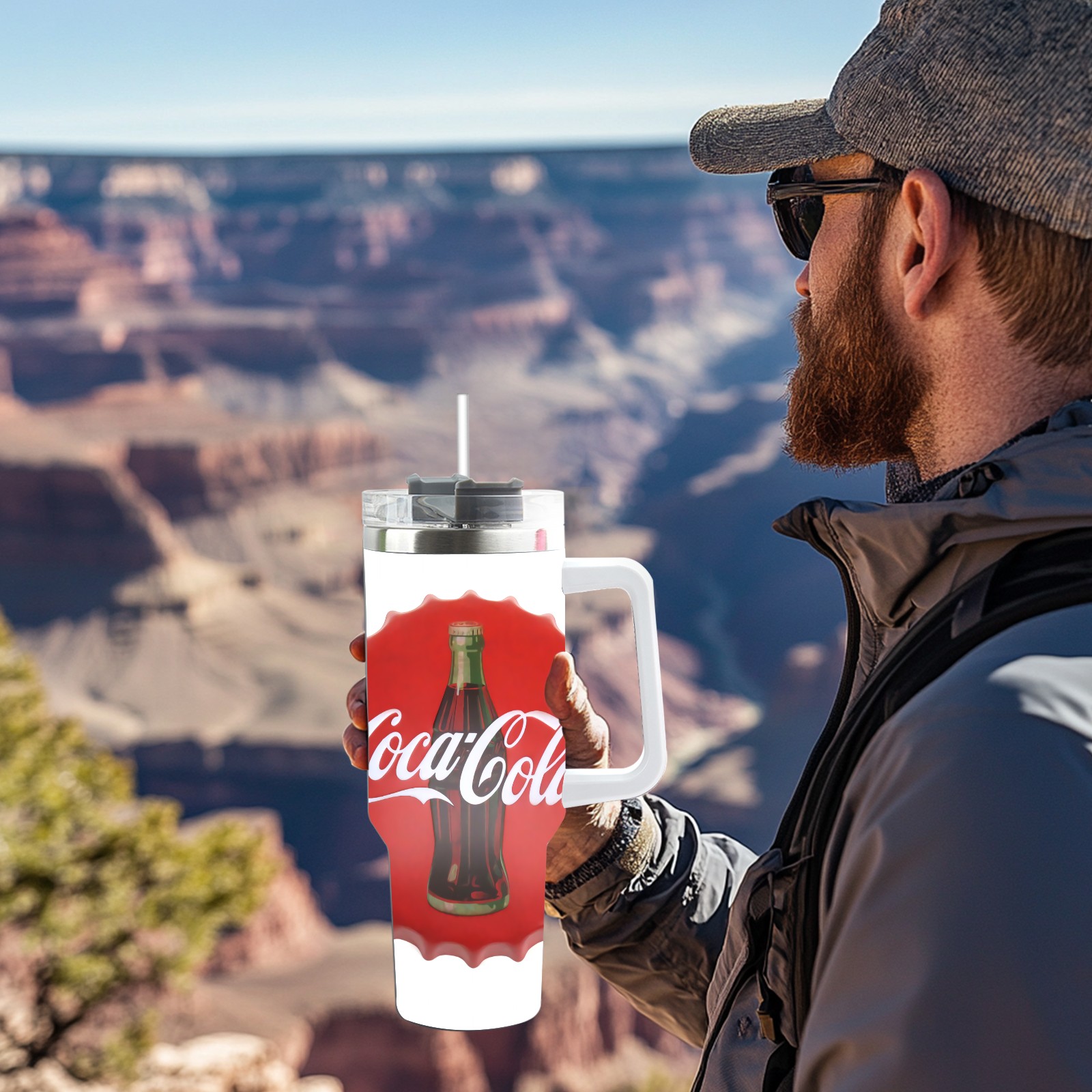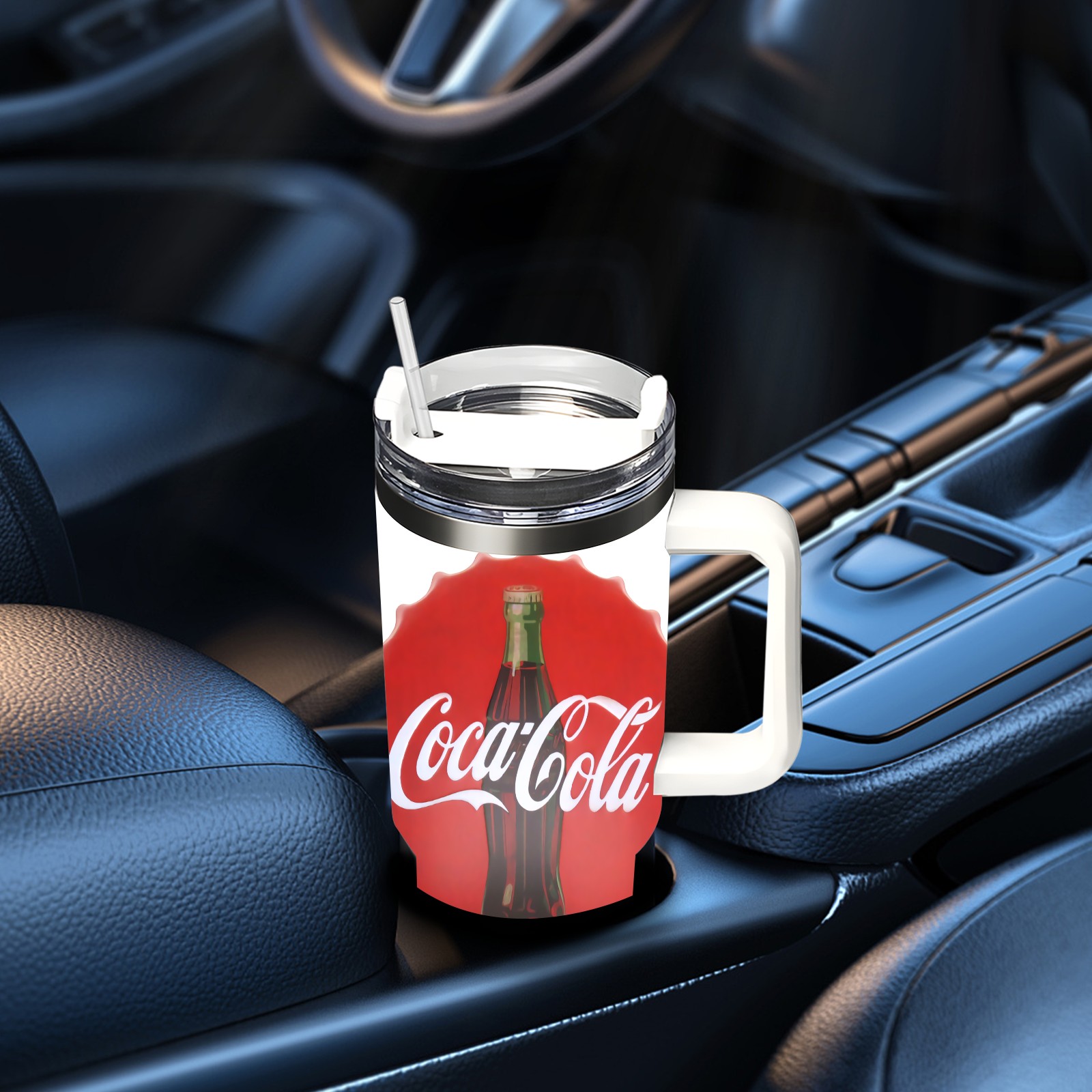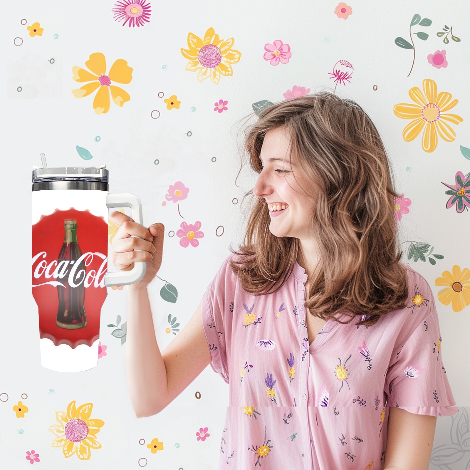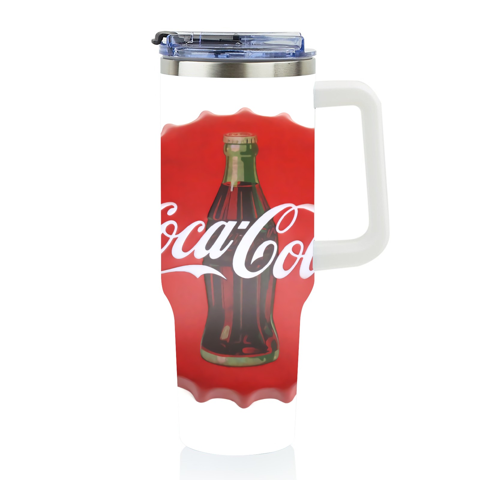 40oz Cola Bottle Cap thermos with lid and straw, leak-proof stainless steel, with handle, spill-proof bottle, convenient for travel(pink)