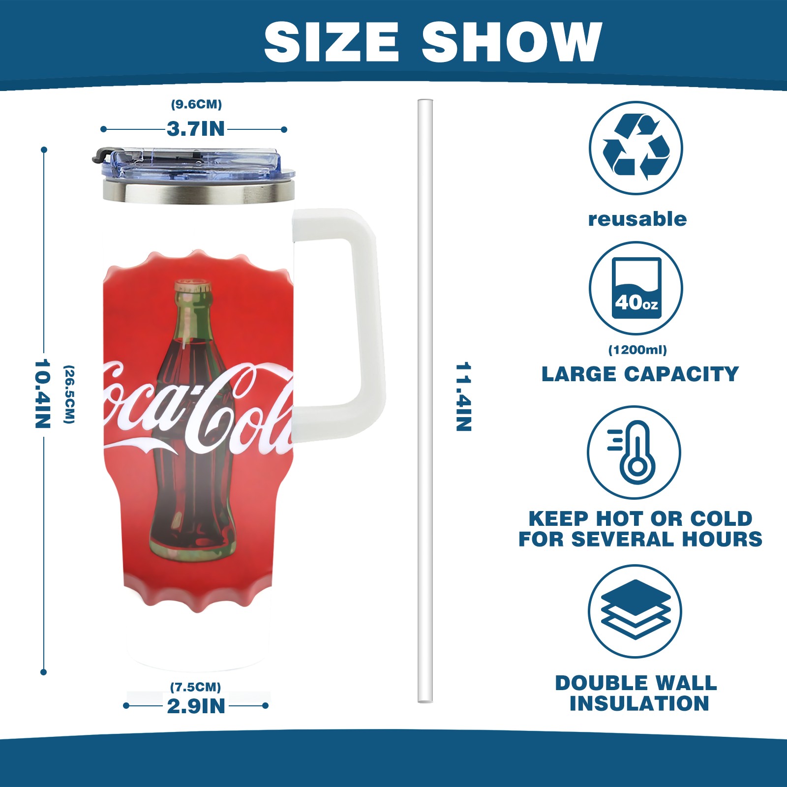 • <p>This multi-functional insulated water bottle features a simple and practical design, suitable for various daily scenarios. The ergonomic handle allows for easy one-handed drinking, and the detachable handle can be adjusted or removed as needed, making it convenient for commuting, exercising, or carrying to meetings. Made of high-quality stainless steel, it is BPA-free and features double-walled vacuum insulation technology that keeps drinks cold for 8 hours and hot for 6 hours, ensuring you can enjoy your beverage at the perfect temperature anytime, anywhere. The 40-ounce Christmas edition comes with a sliding lid, silicone straw, and a non-slip design. Accessories are dishwasher safe, and the narrow bottom and wide mouth design perfectly fits car cup holders. The exclusive flip-top straw lid is environmentally friendly and durable, with a one-touch leak-proof closure and two drinking modes: sip and gulp. A dust cover provides effective protection. This bottle is suitable for travel, office work, sports, camping, and other occasions, making it a thoughtful gift for friends and family.</p>