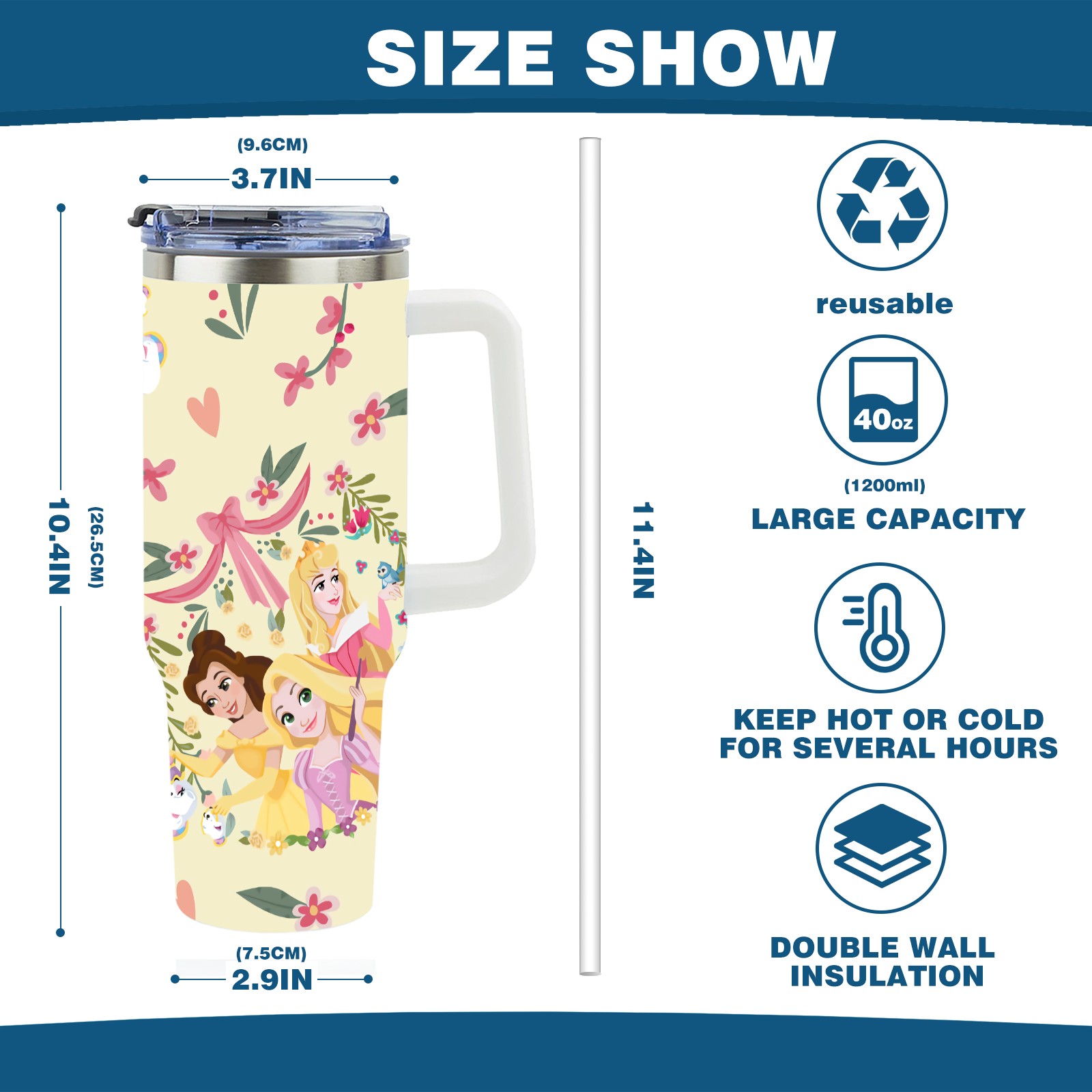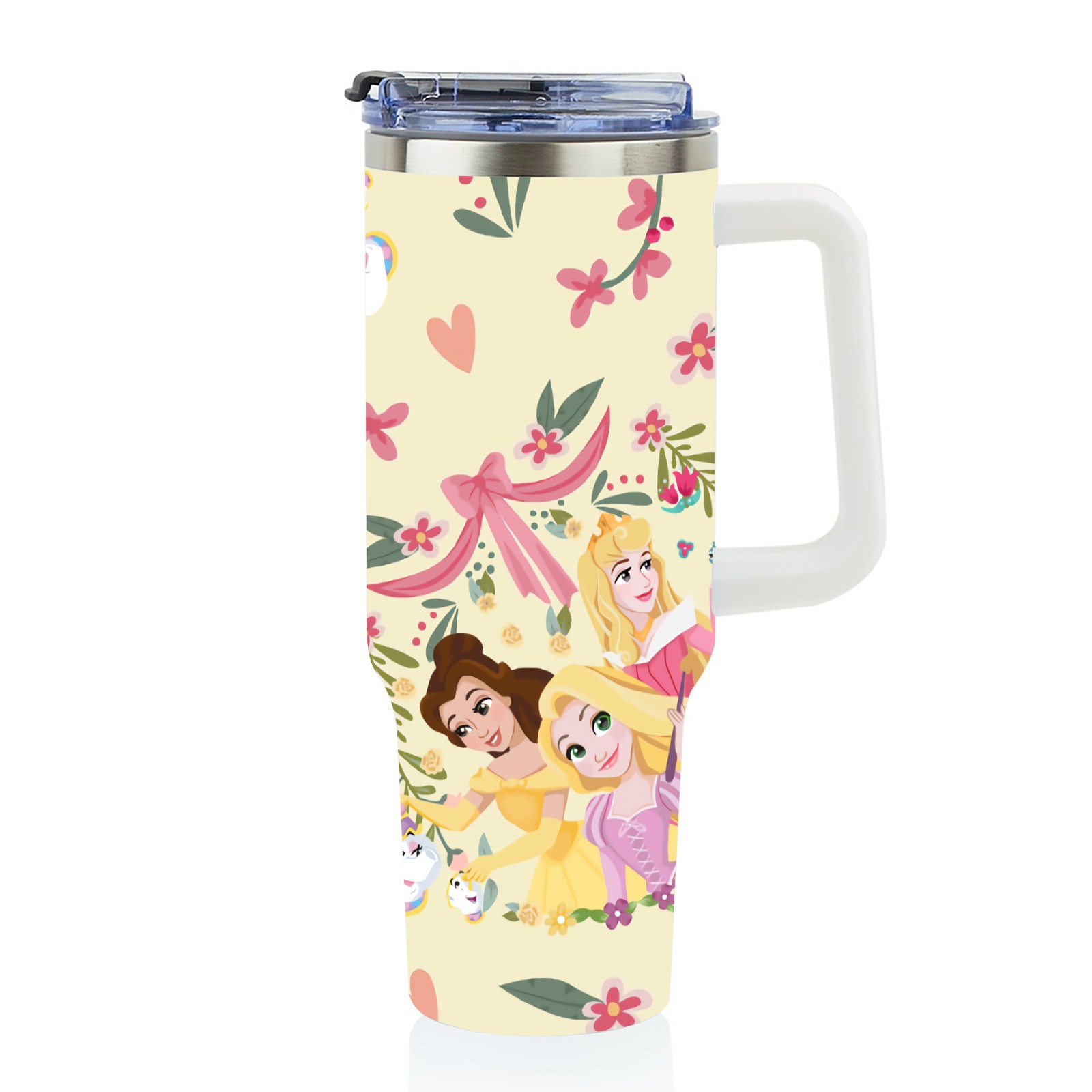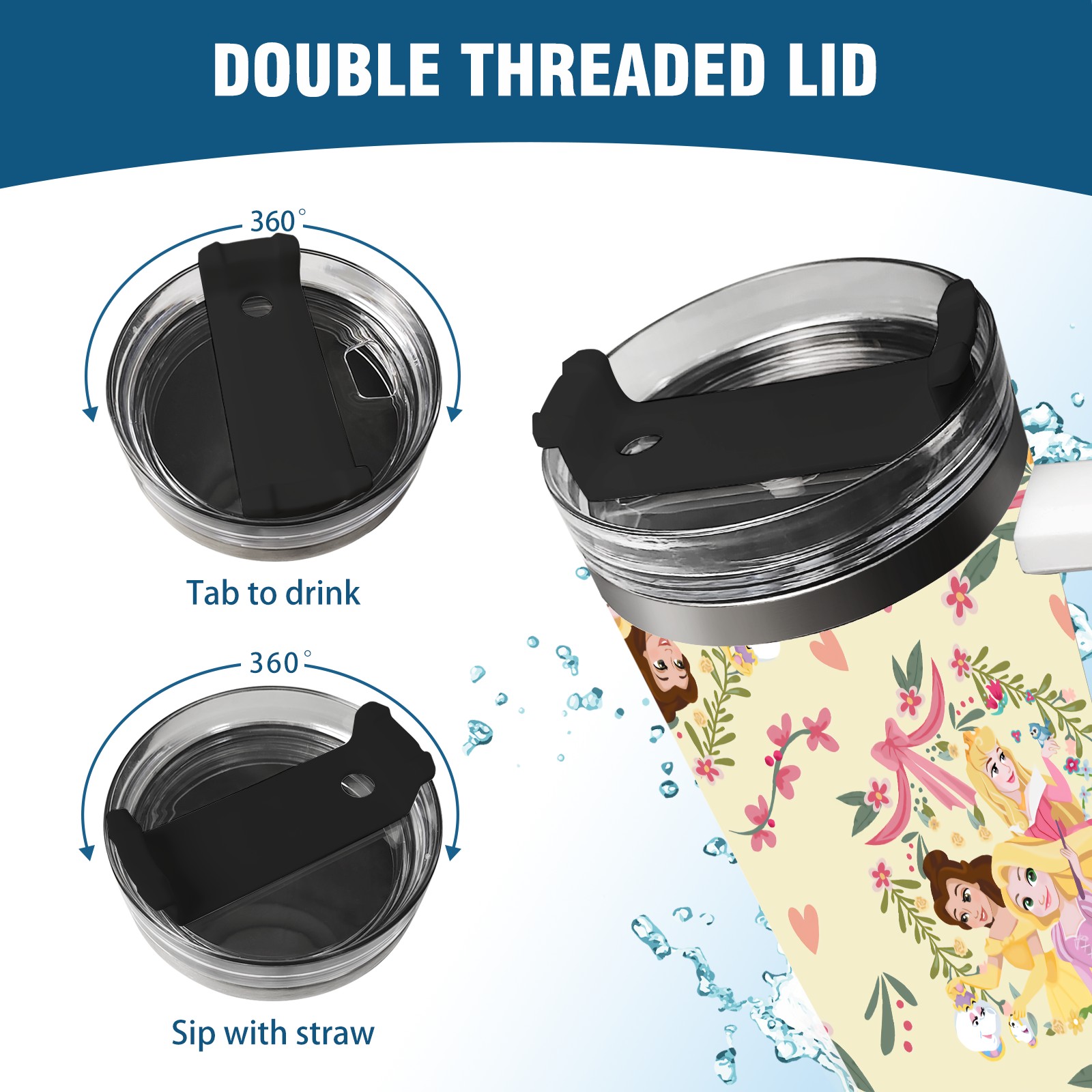 40oz Princess Pattern thermos with lid and straw, leak-proof stainless steel, with handle, spill-proof bottle, convenient for travel(pink)