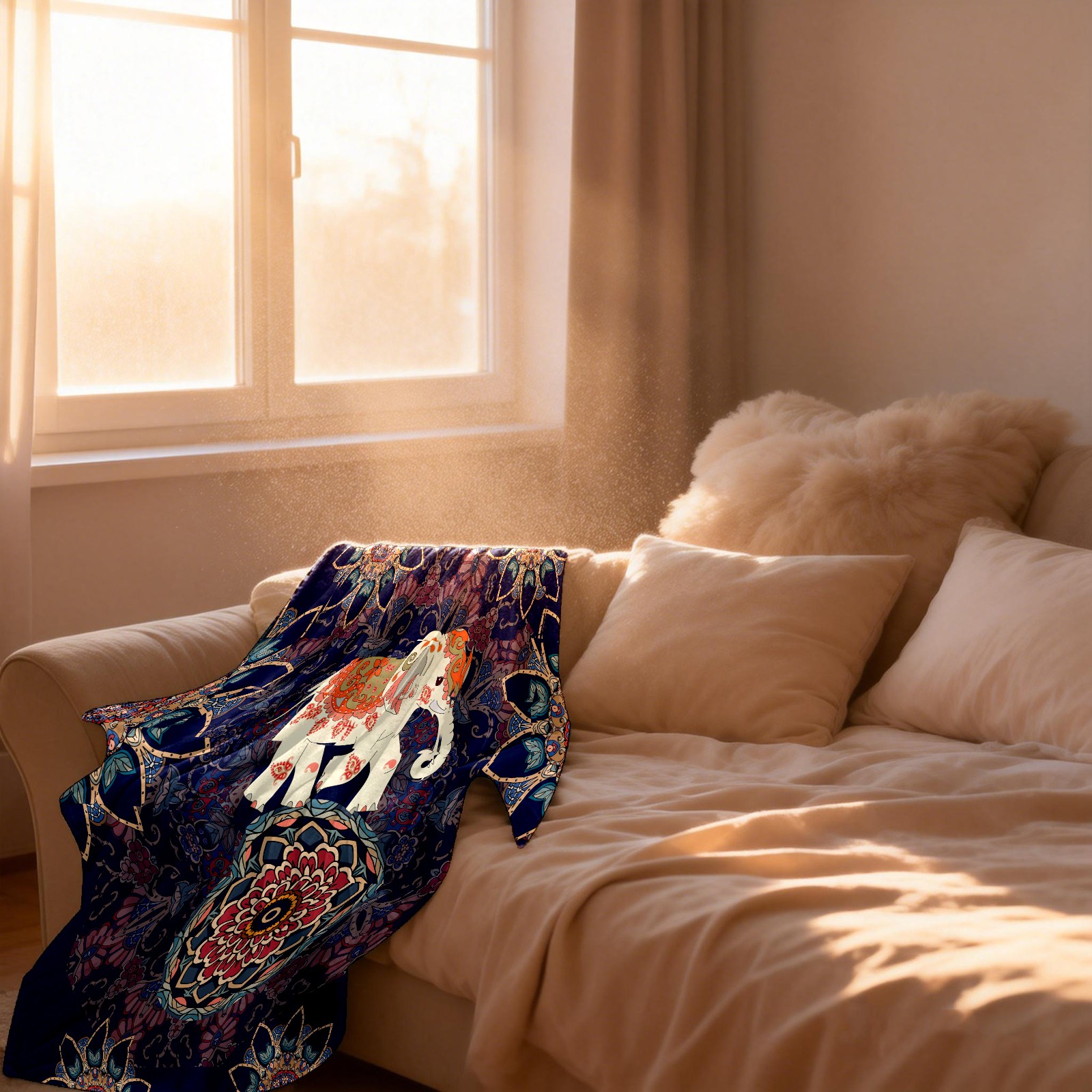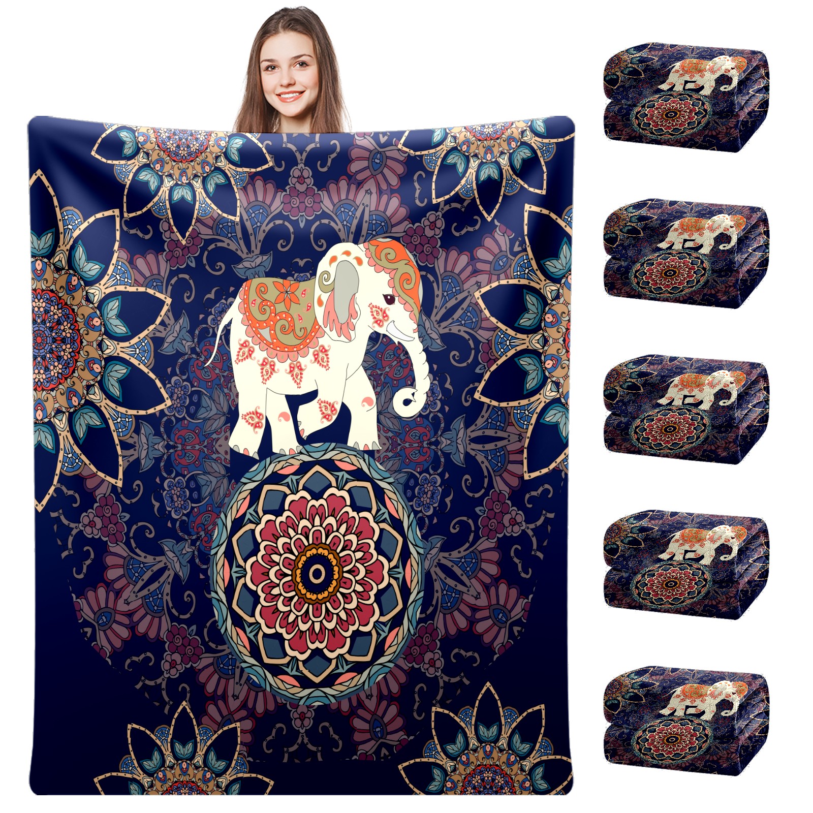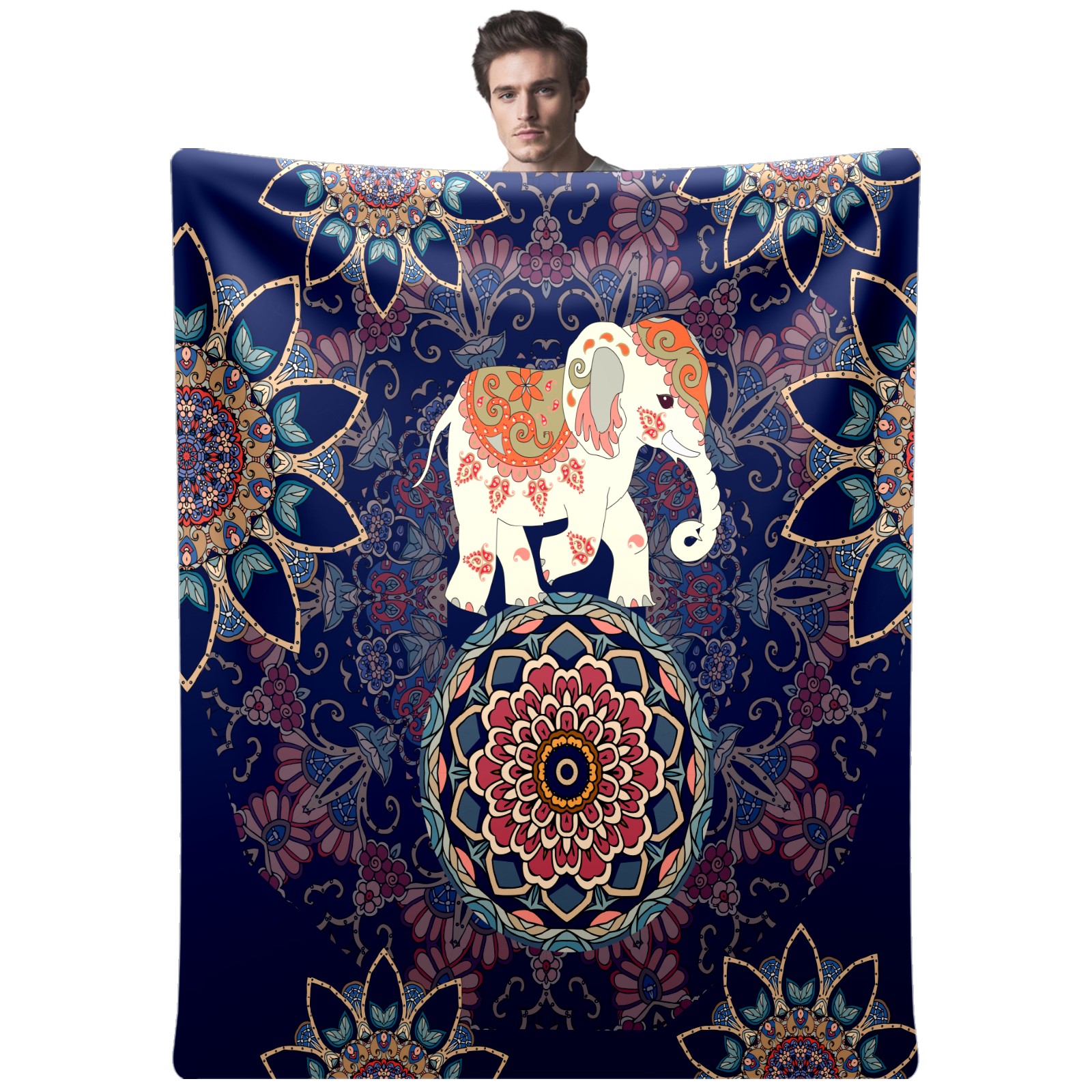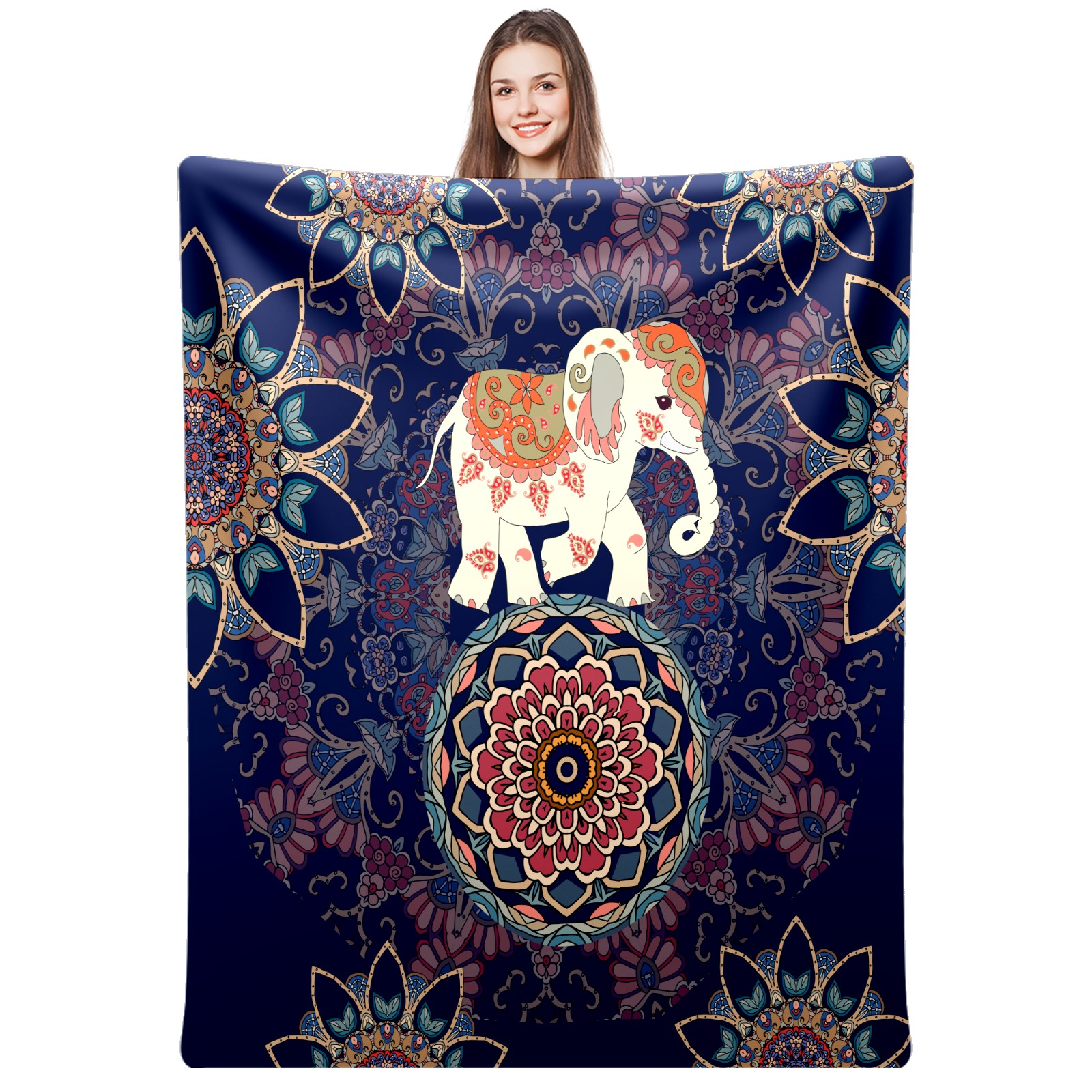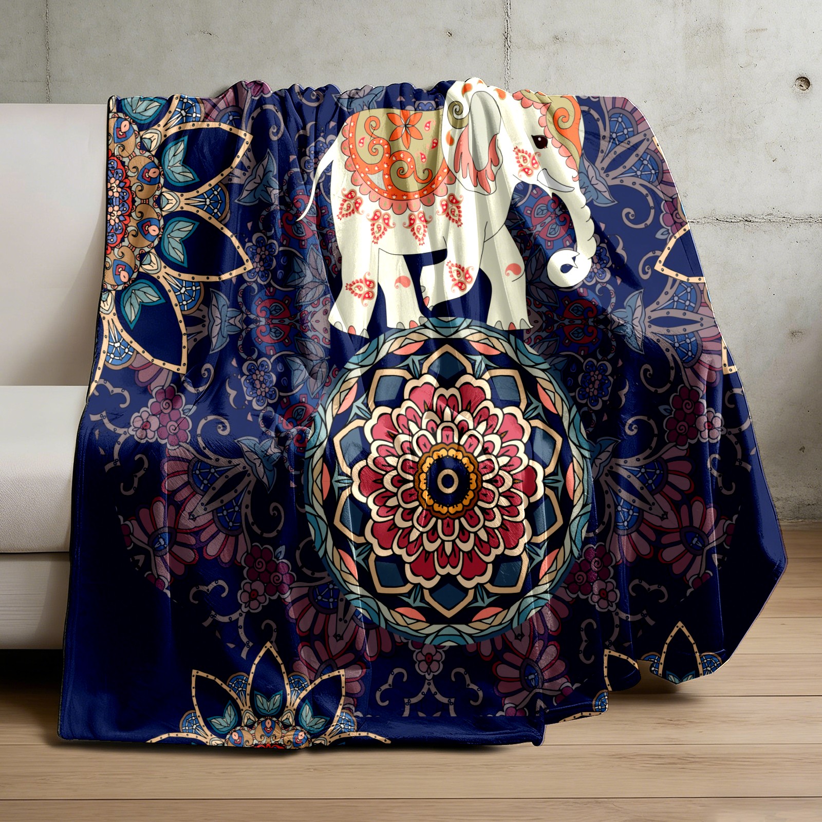 Boho Elephant Flower Pattern 76x102cm