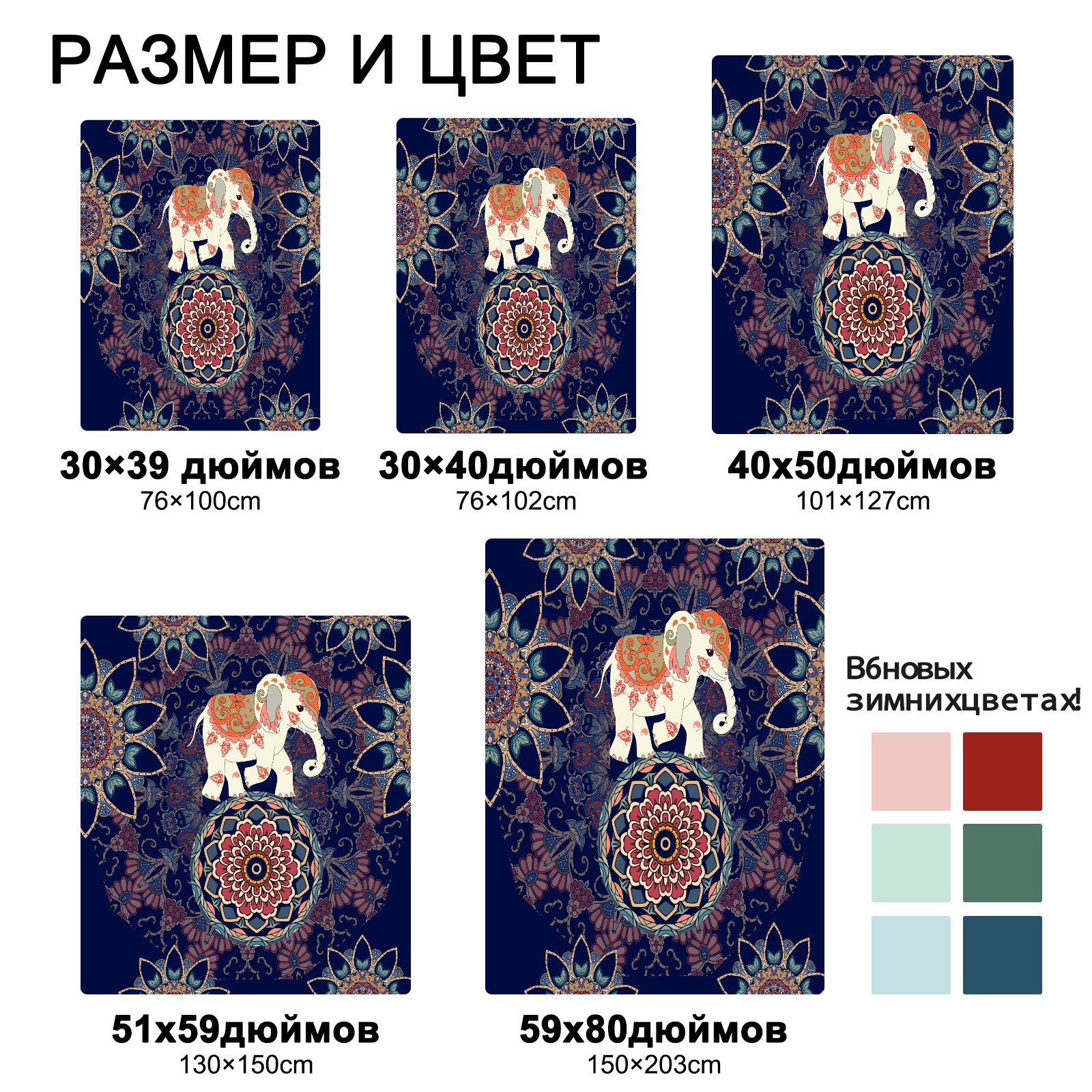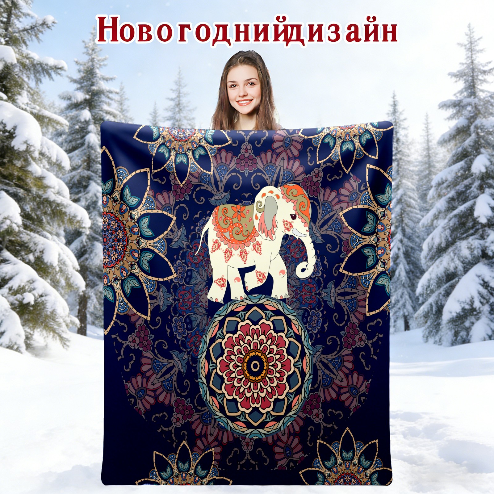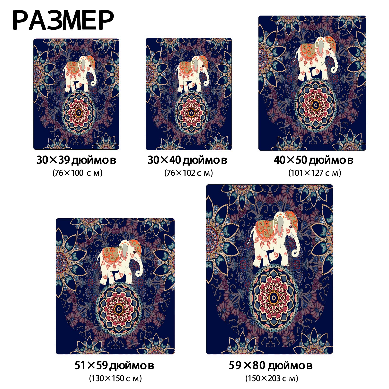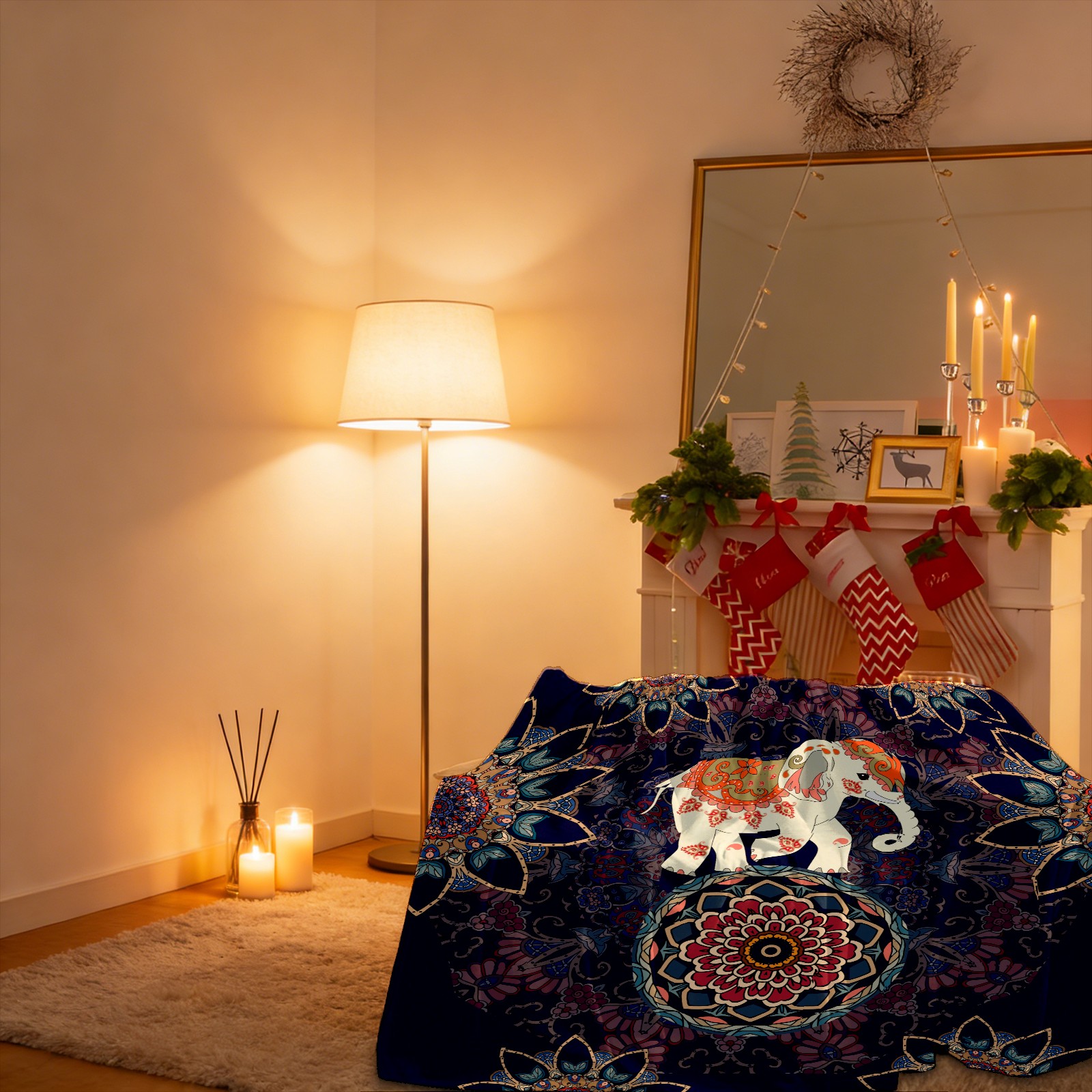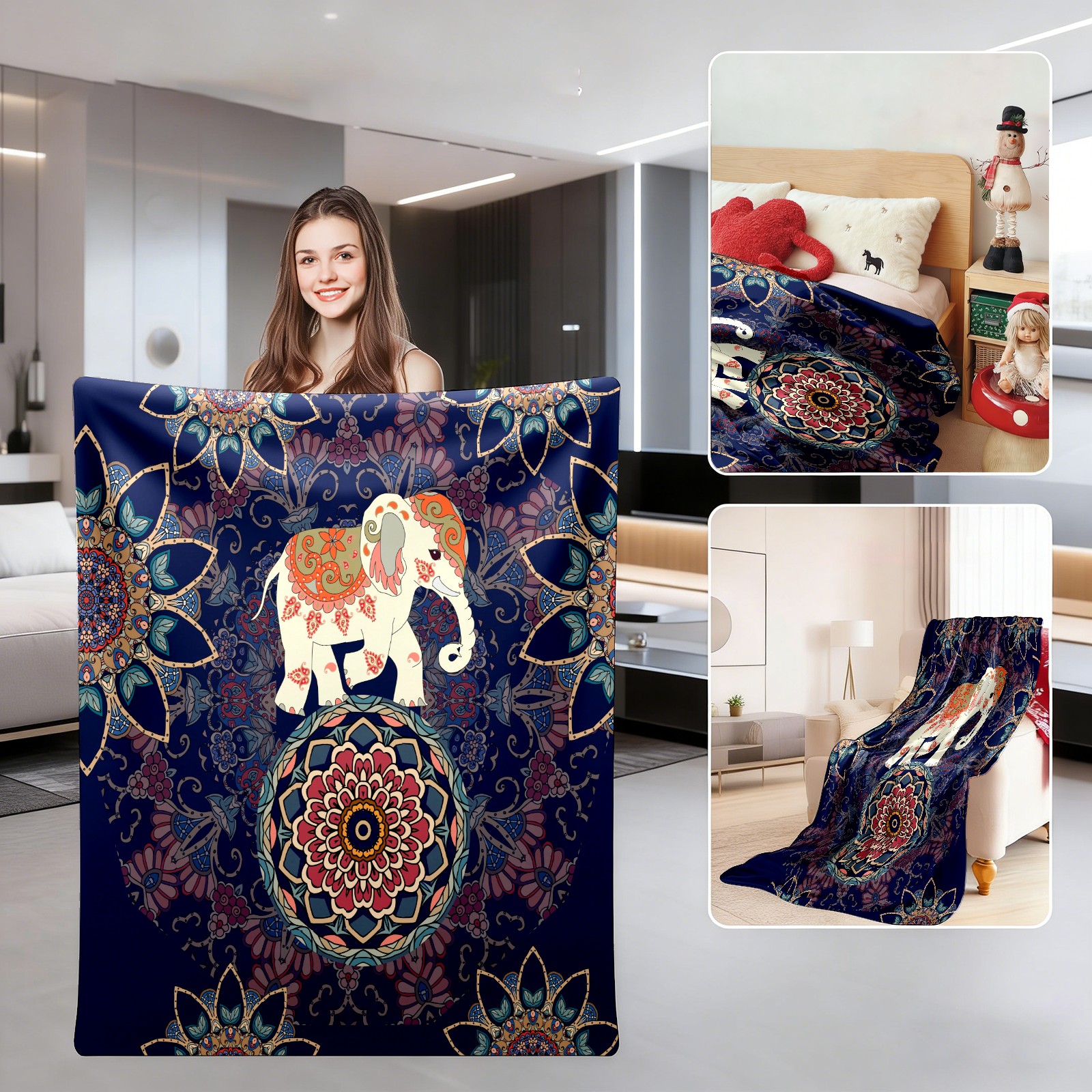 Boho Elephant Flower Pattern 76x102cm