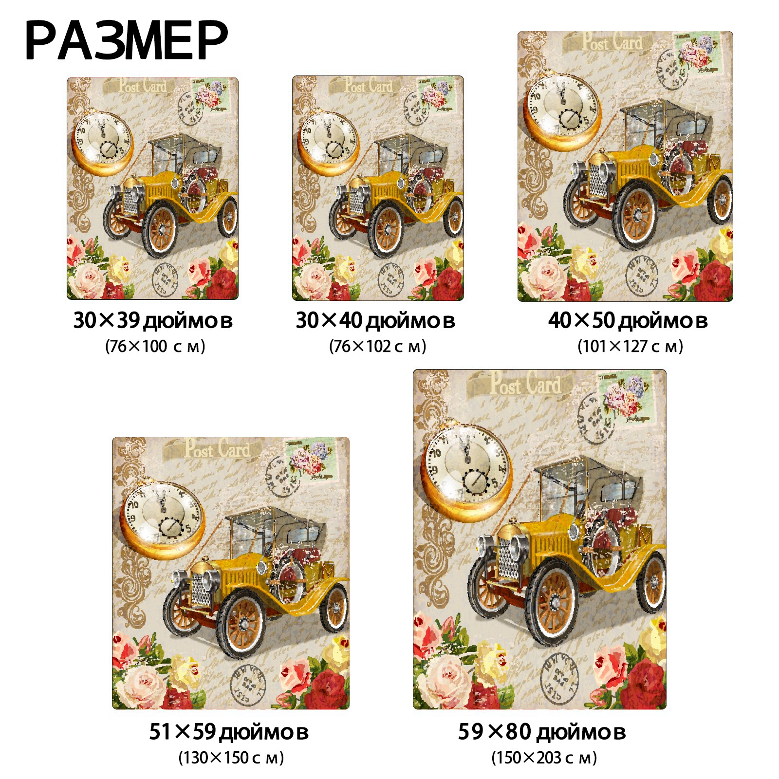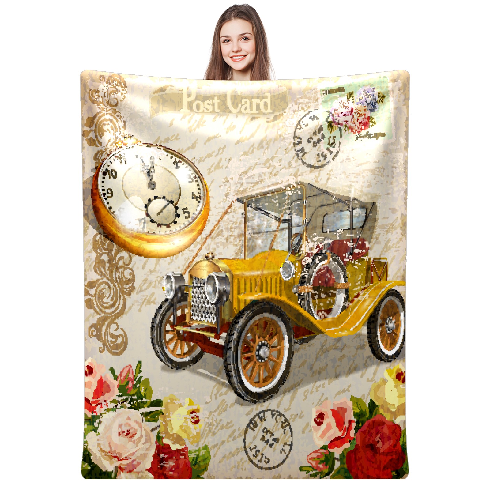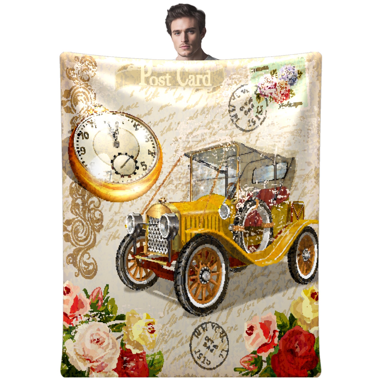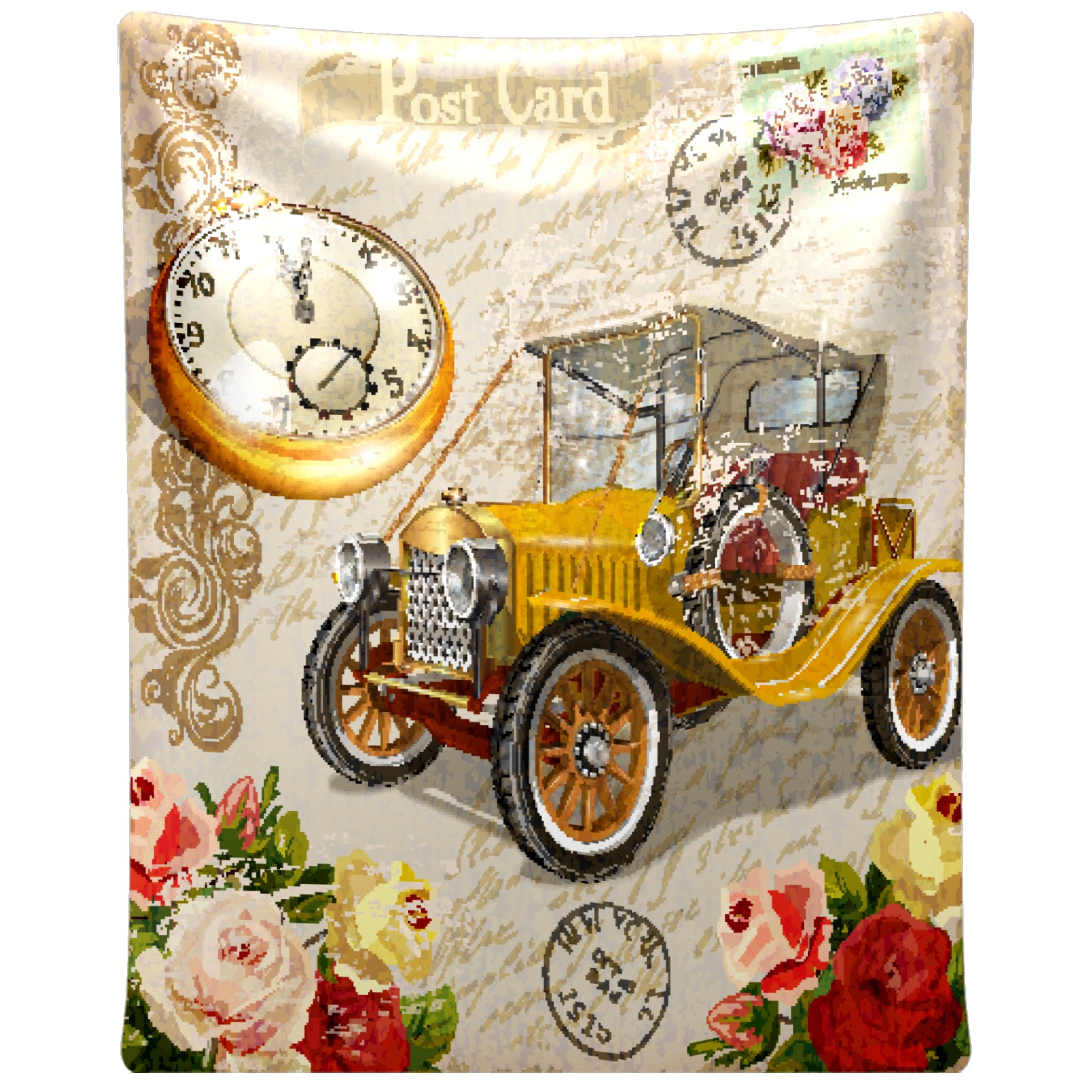 Vintage Car Rose Flower 76x102cm