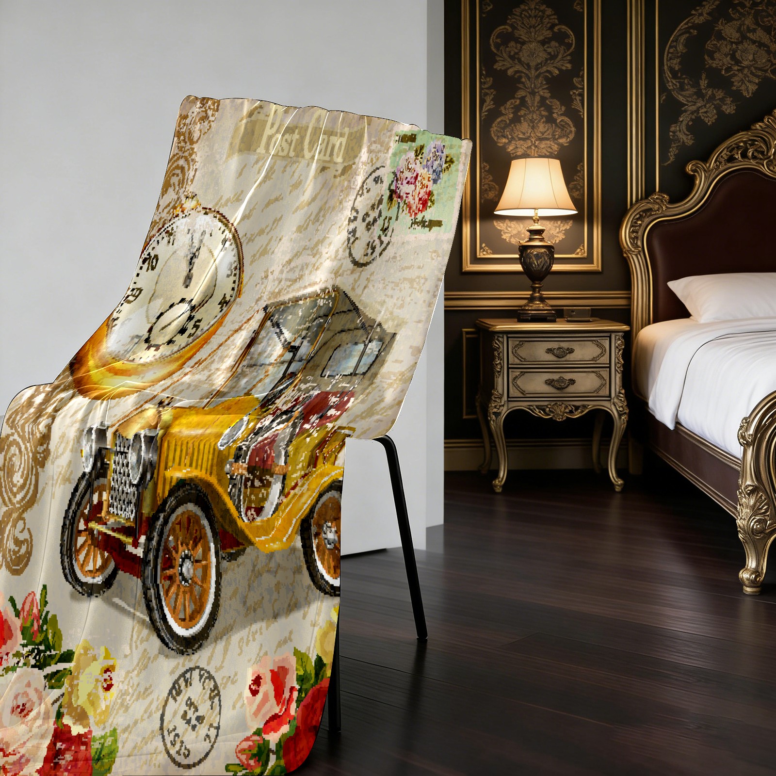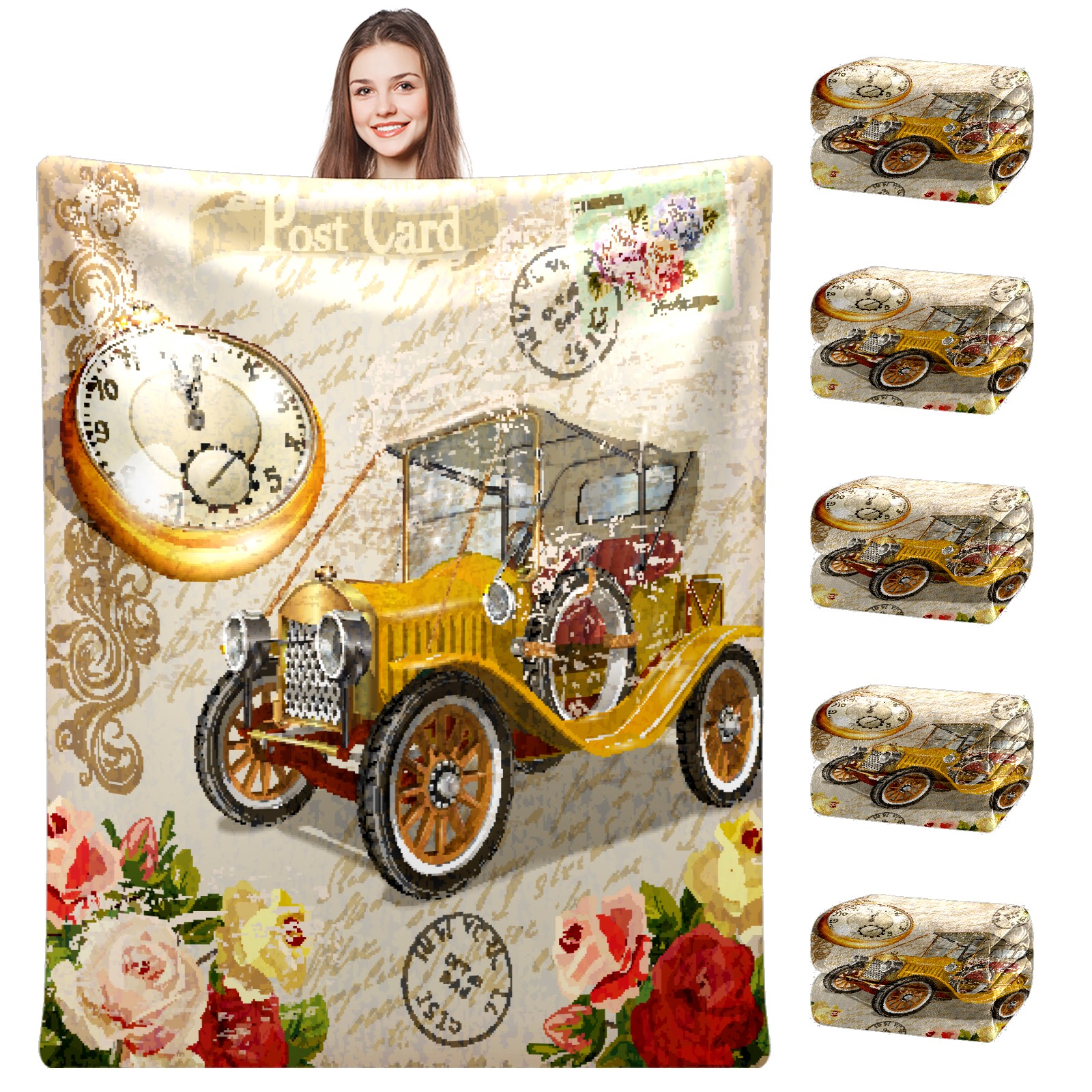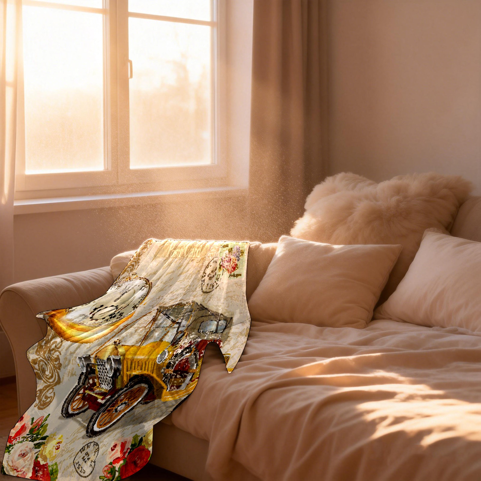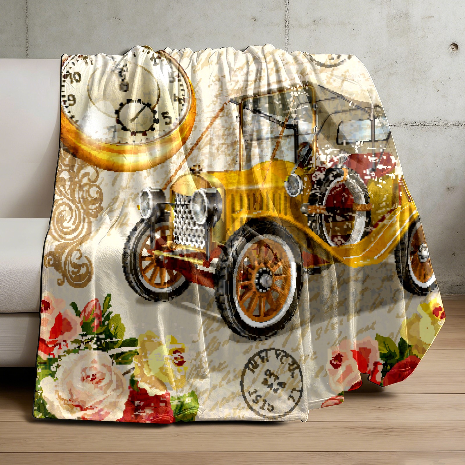 Vintage Car Rose Flower 76x102cm