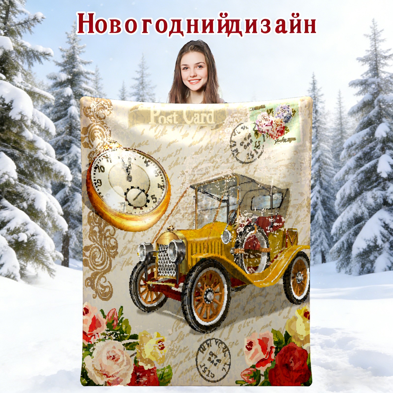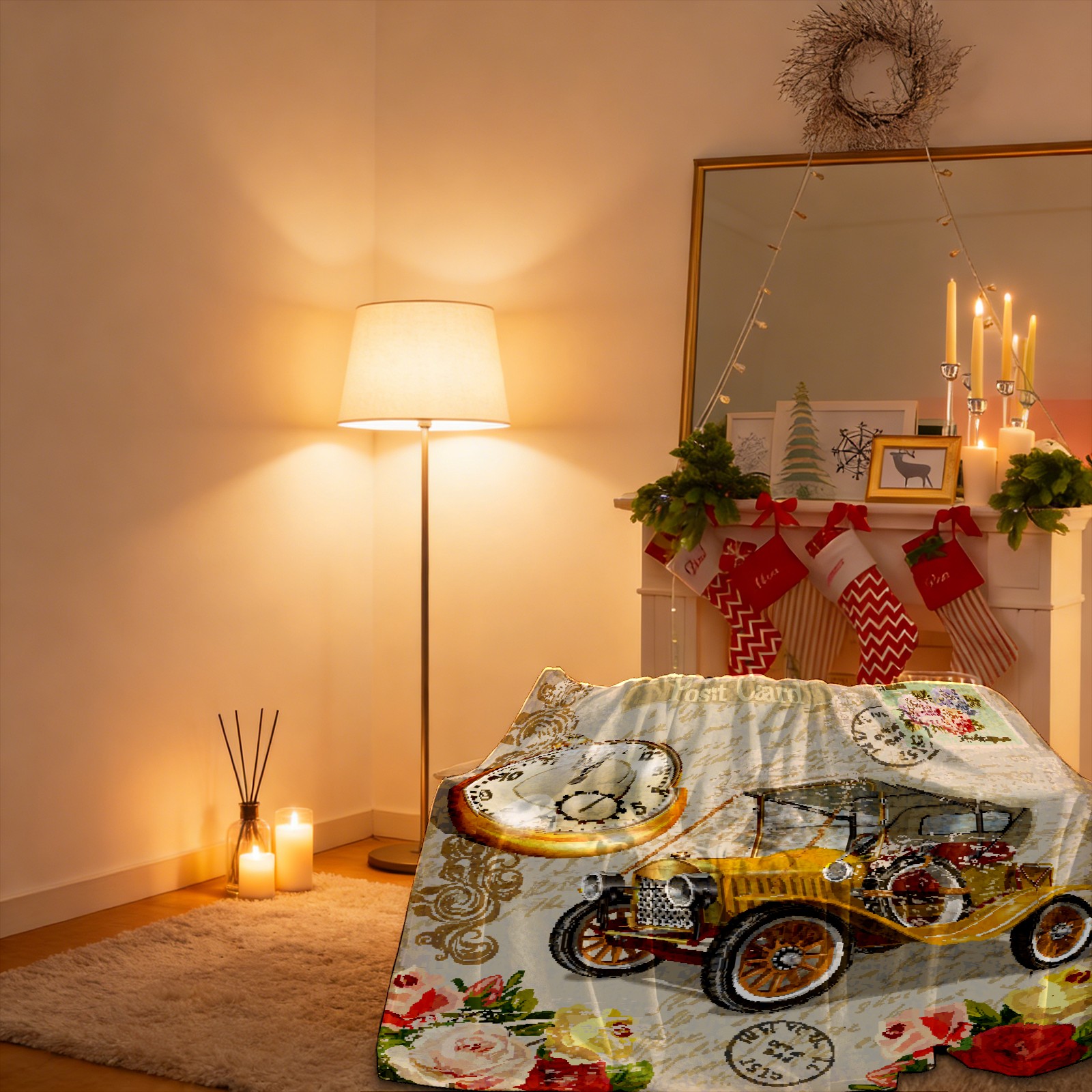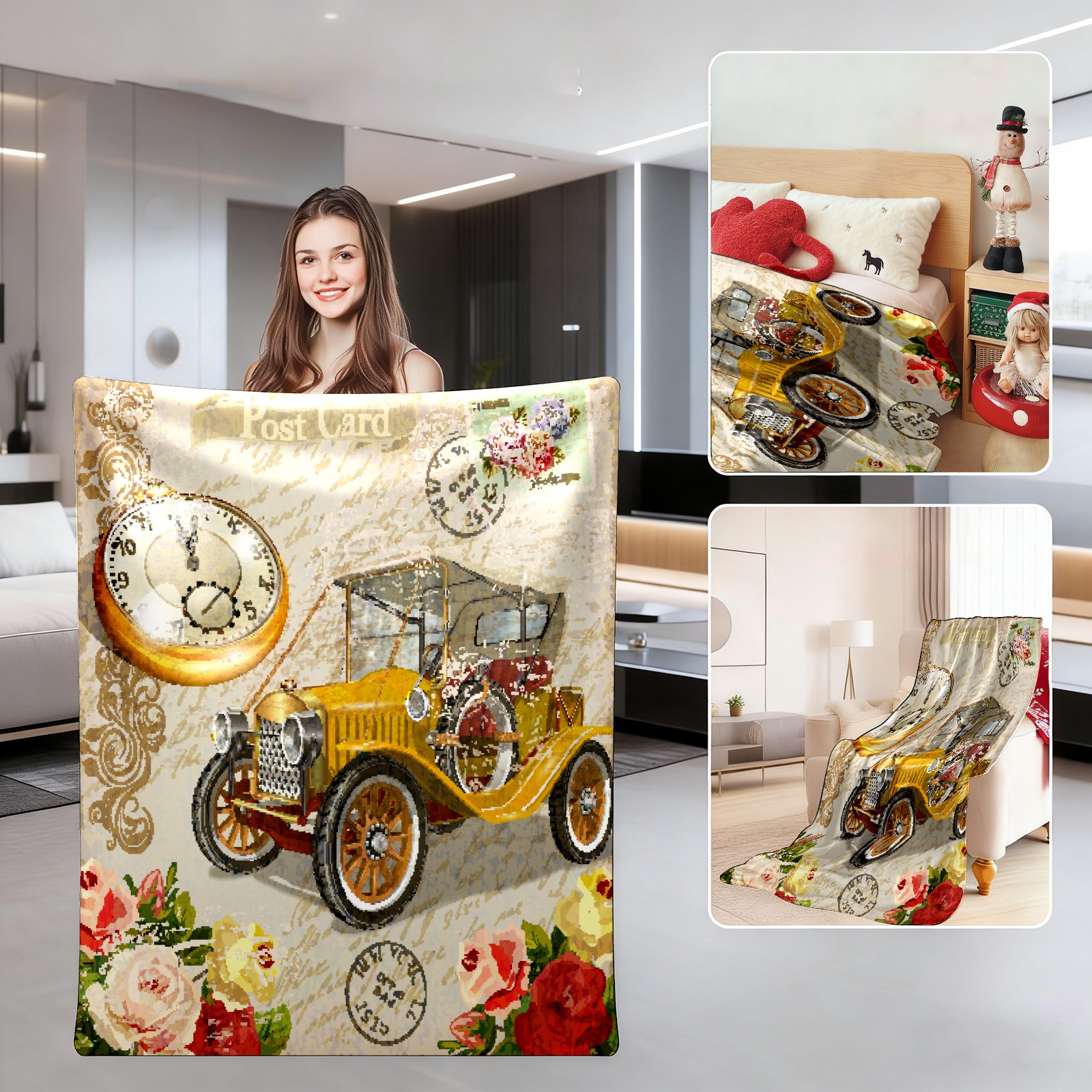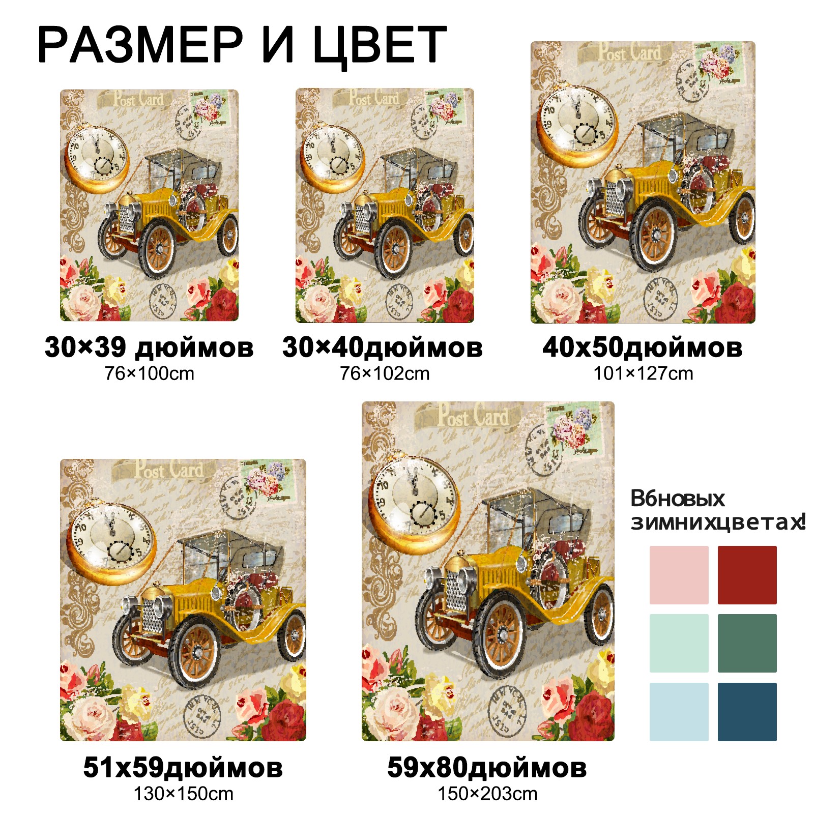 Vintage Car Rose Flower 76x102cm