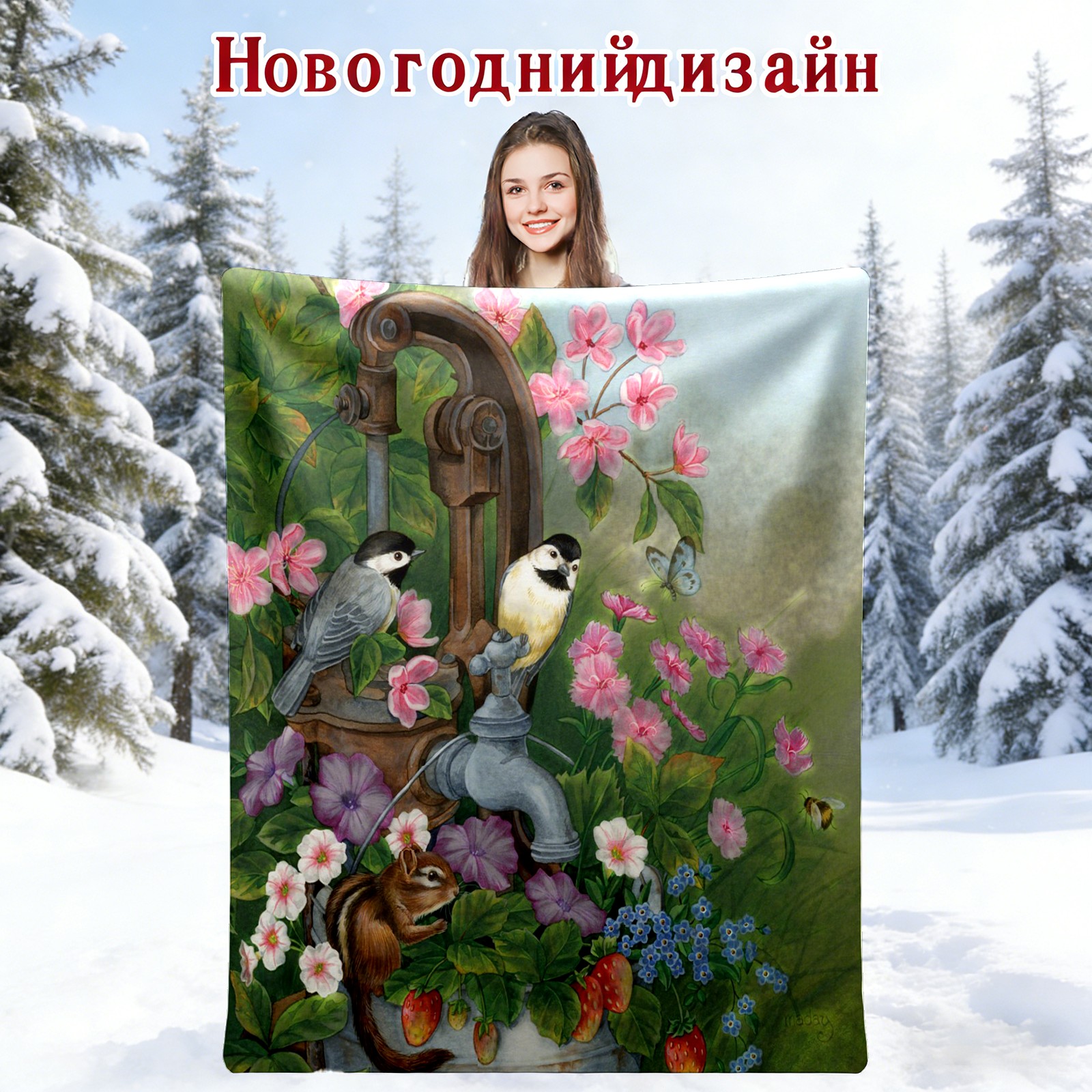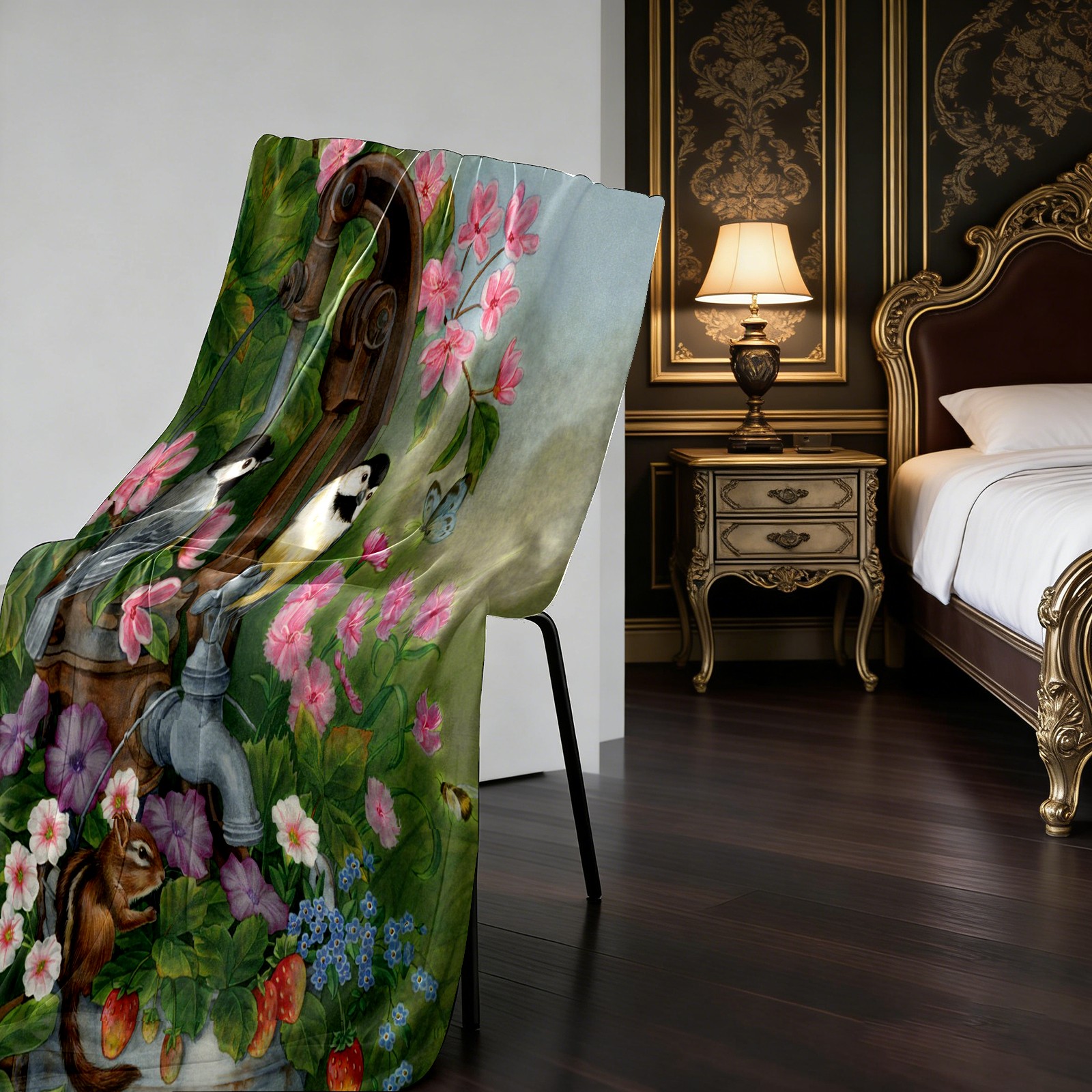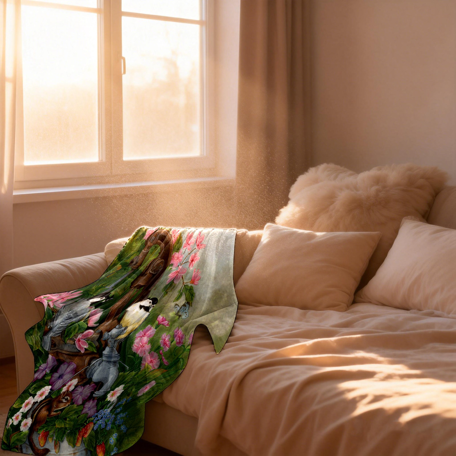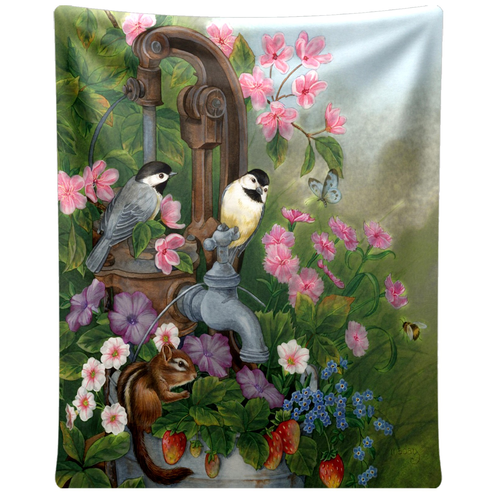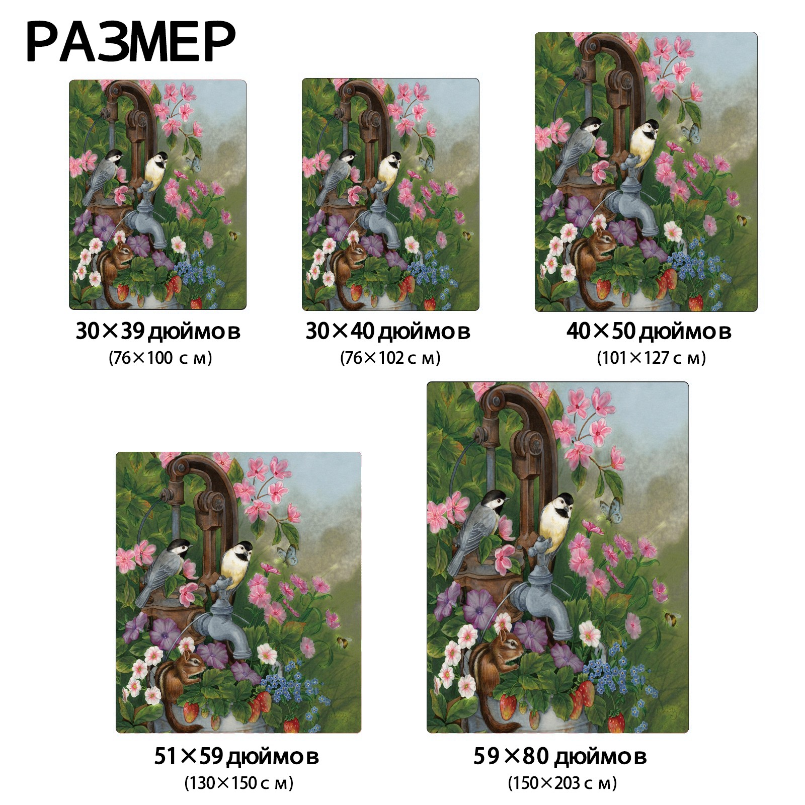 Birds Squirrel Flowers Leaves 76x102cm