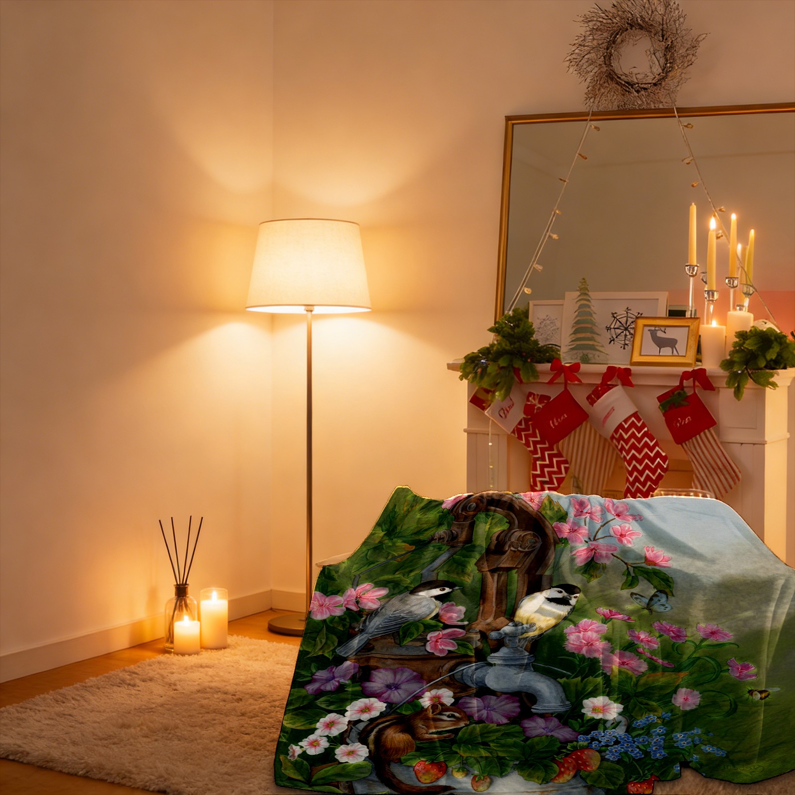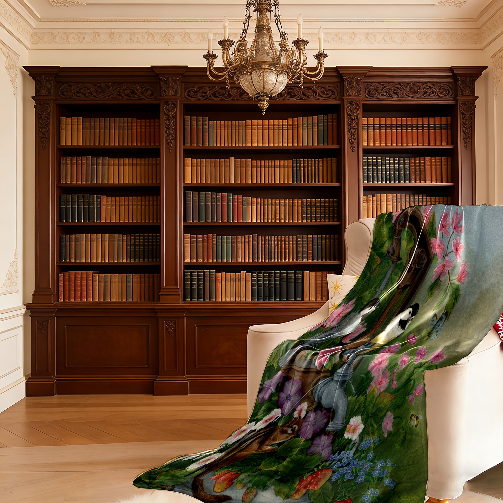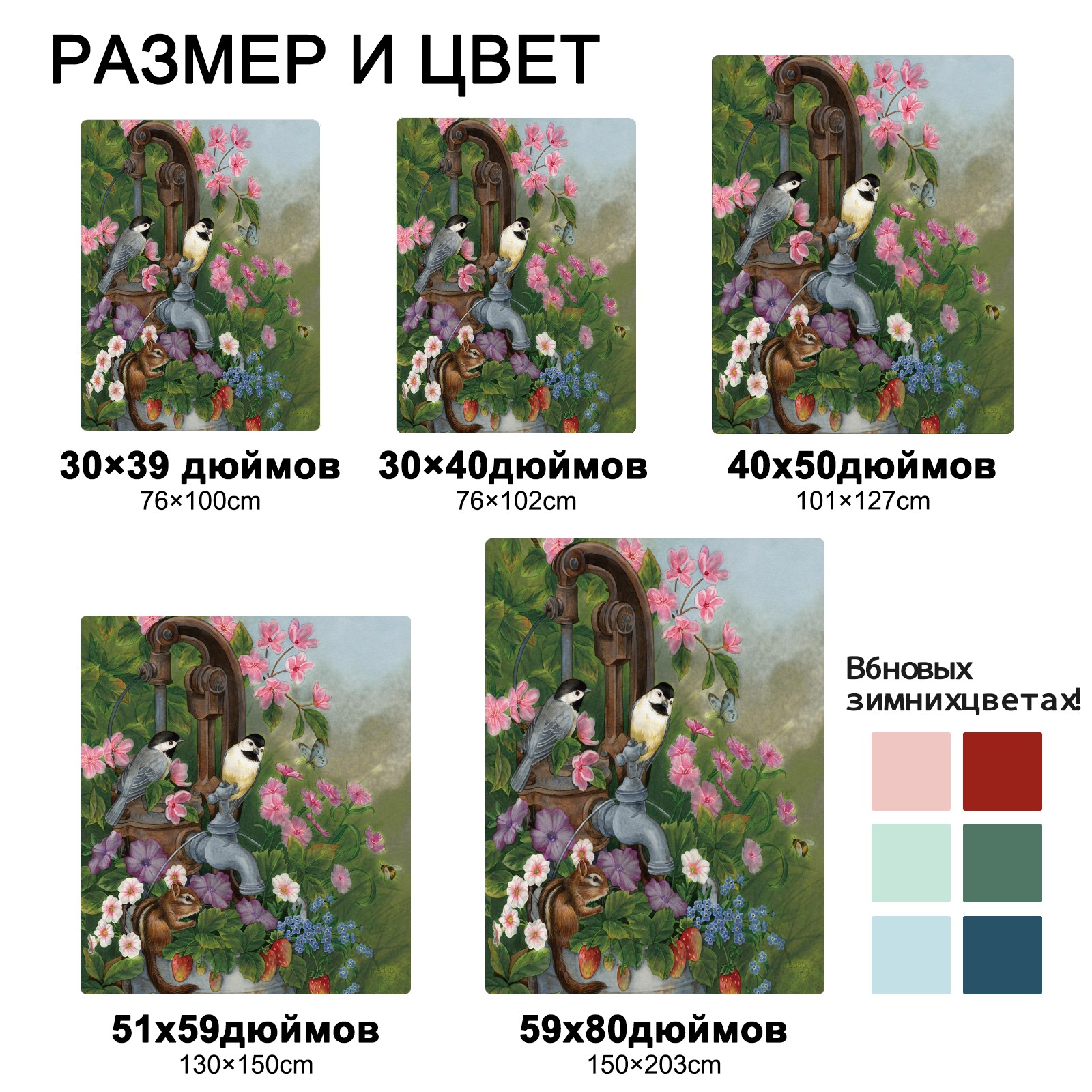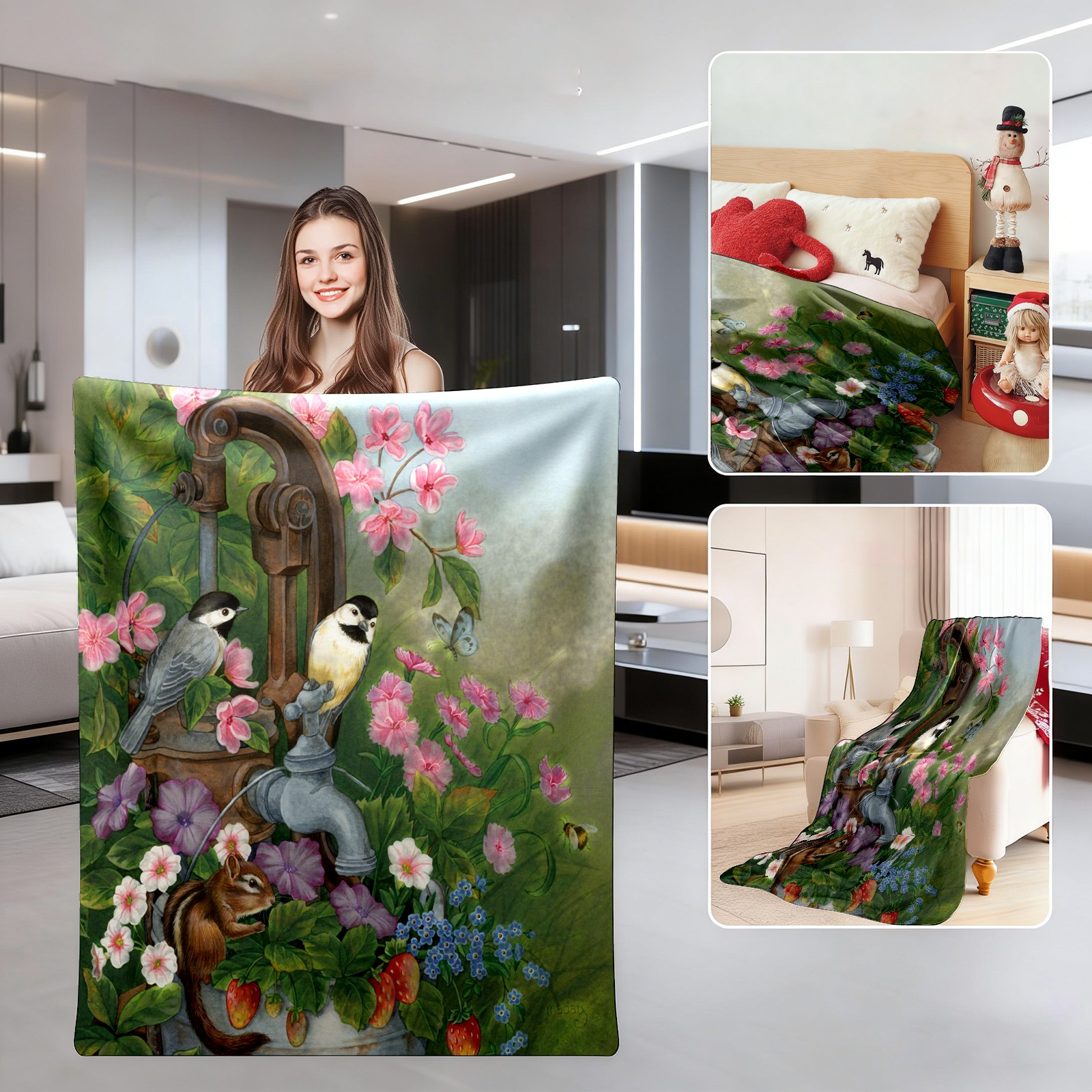 Birds Squirrel Flowers Leaves 76x102cm