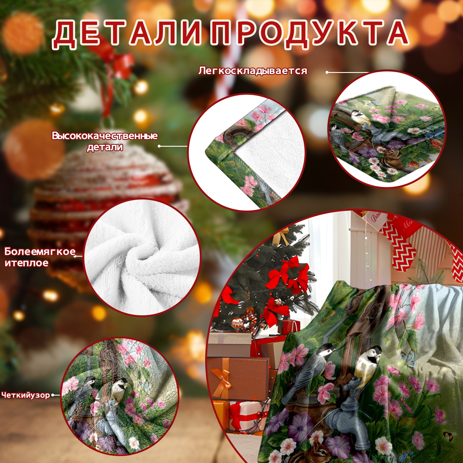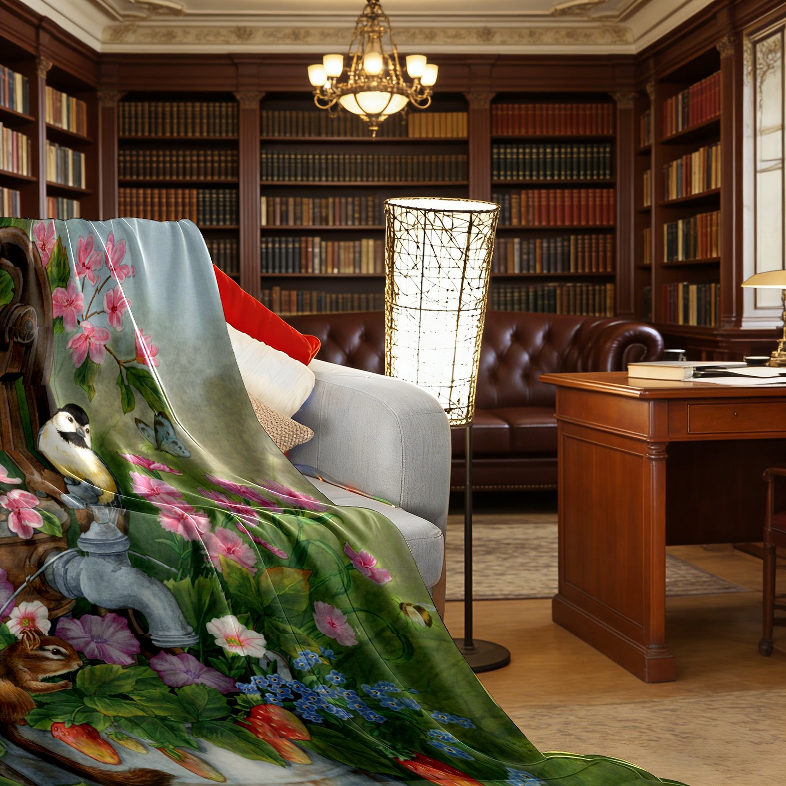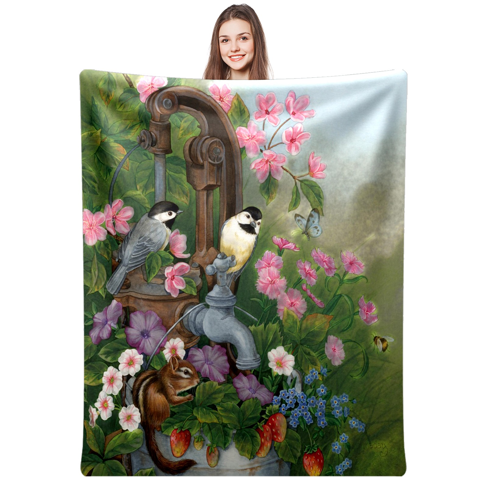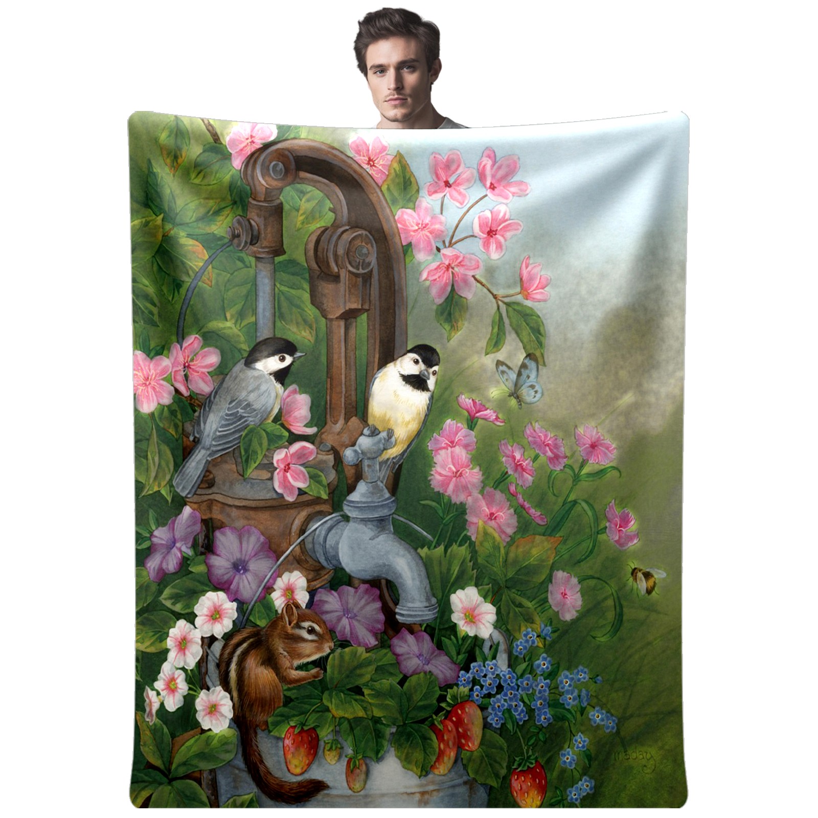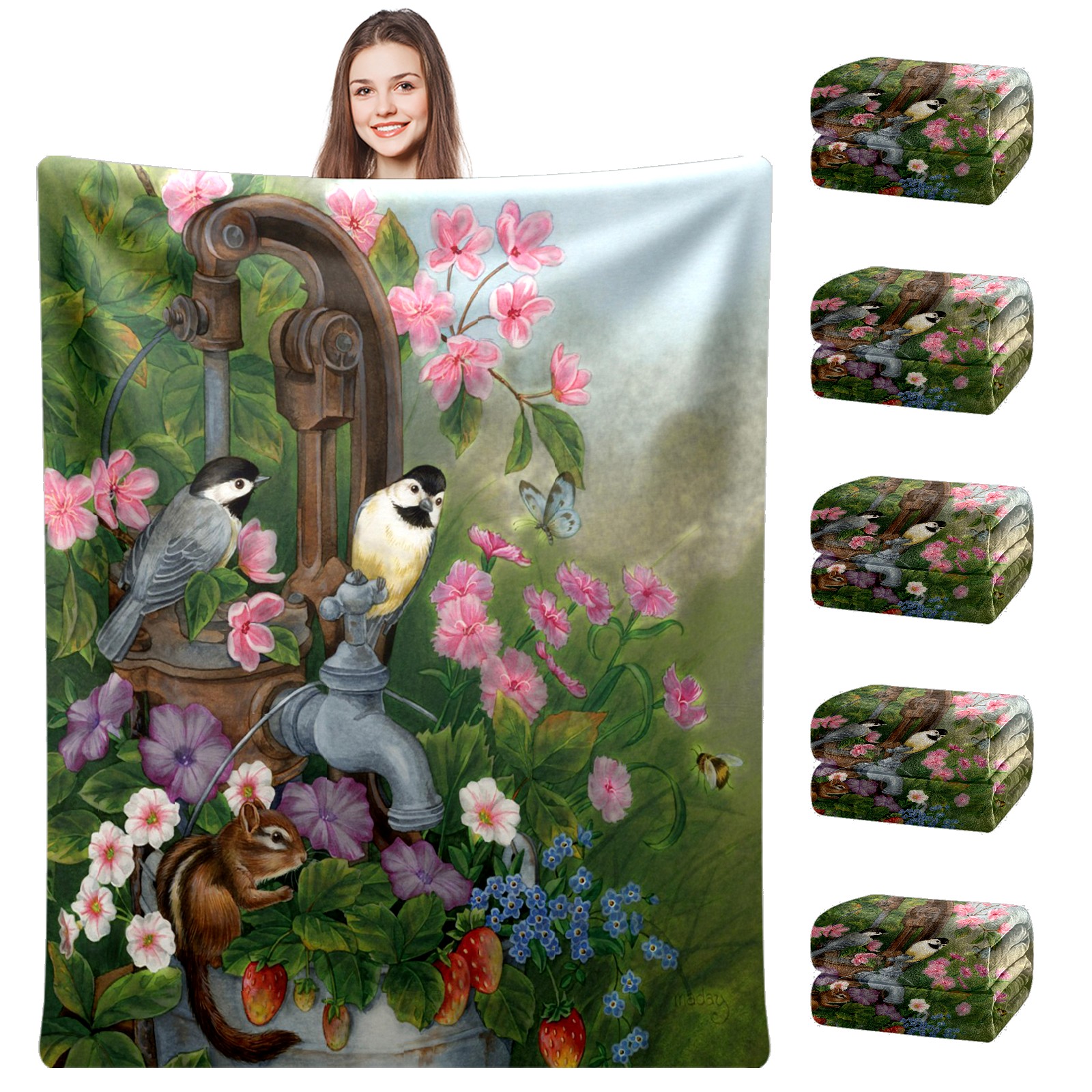 Birds Squirrel Flowers Leaves 76x102cm