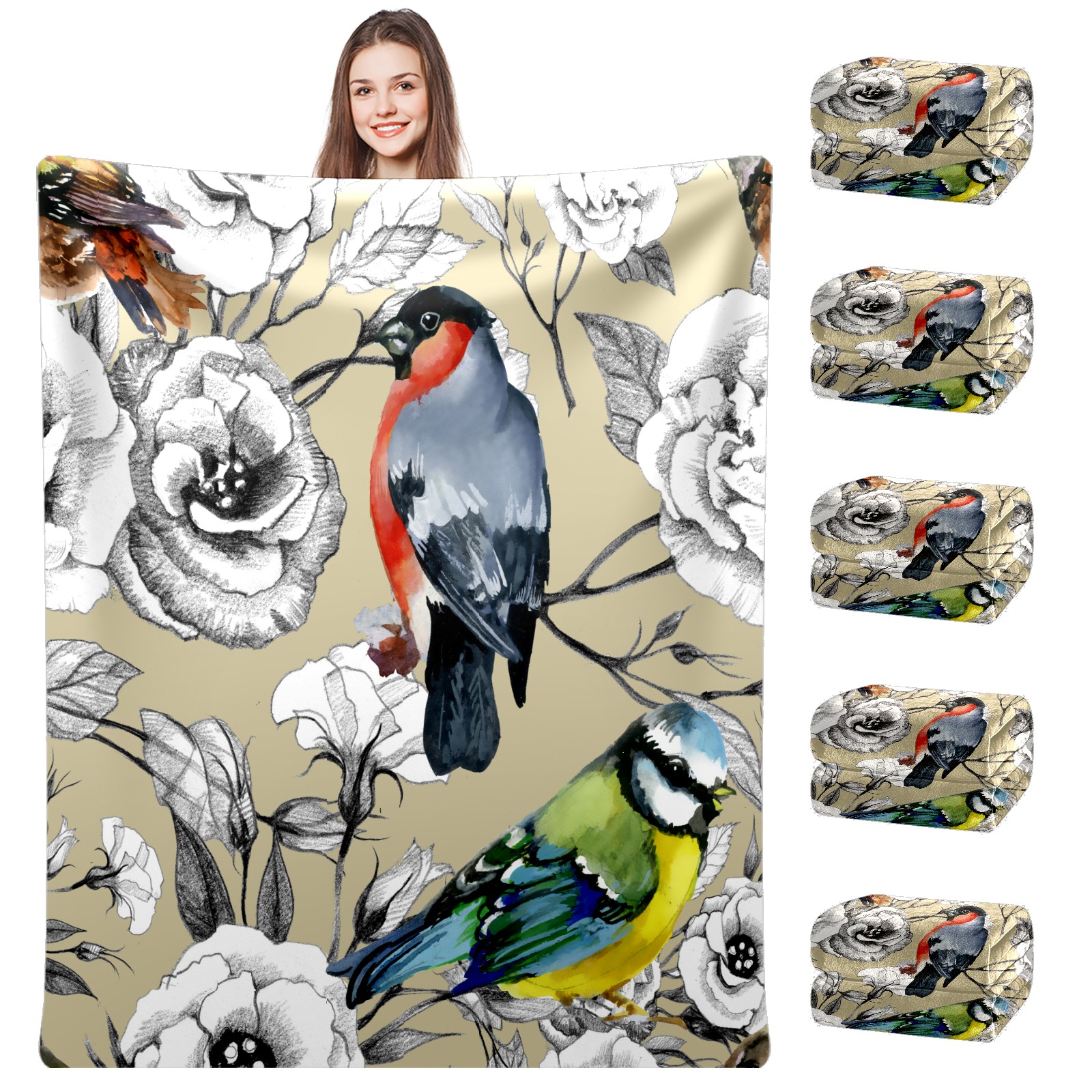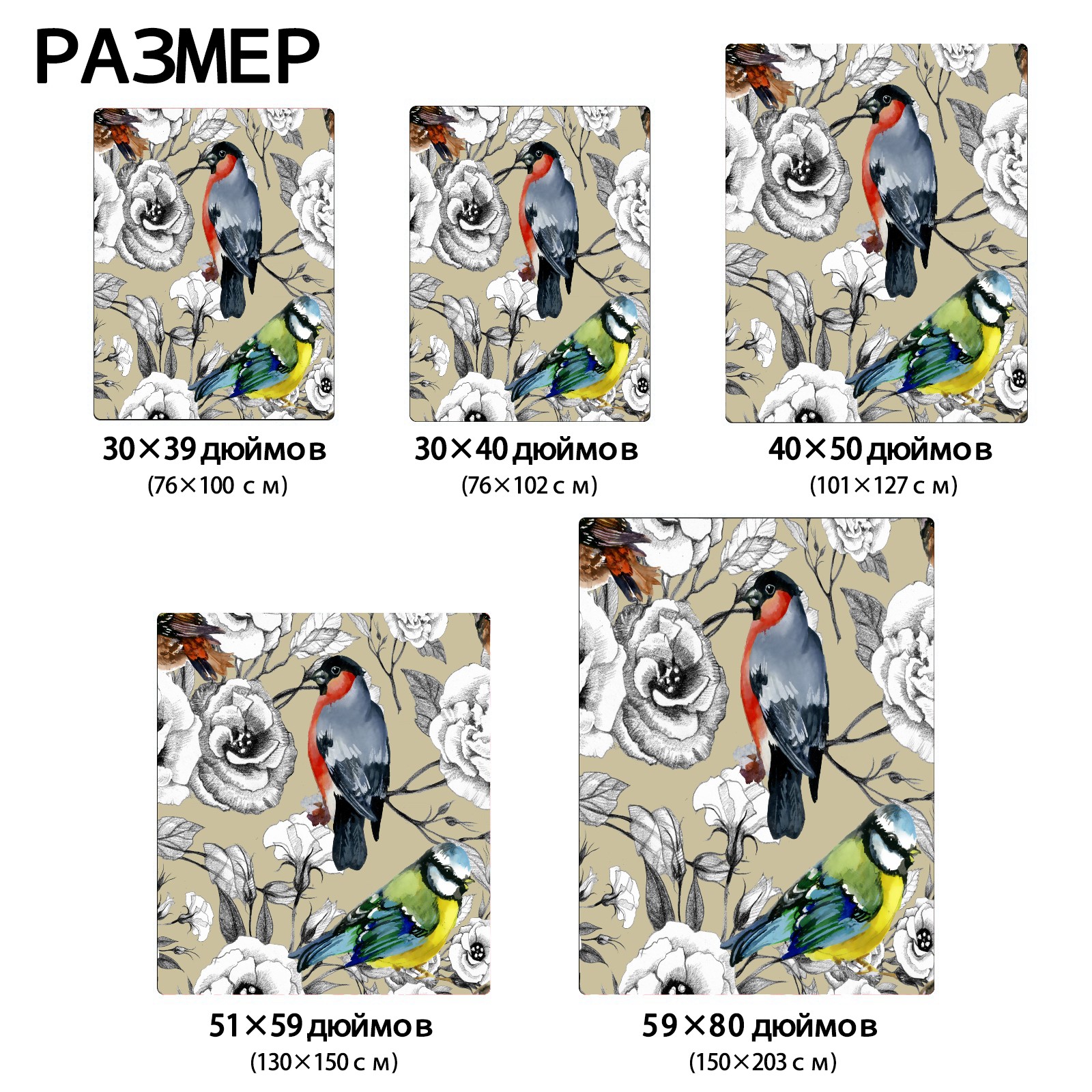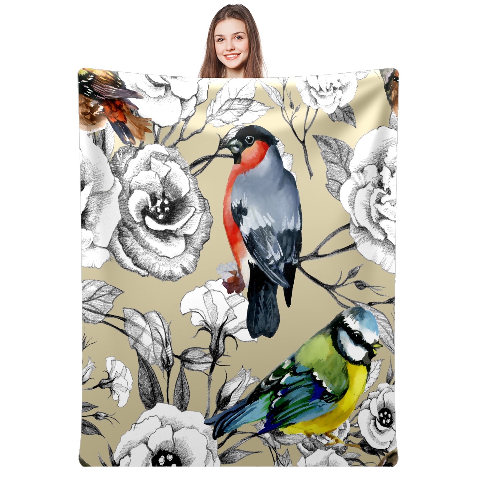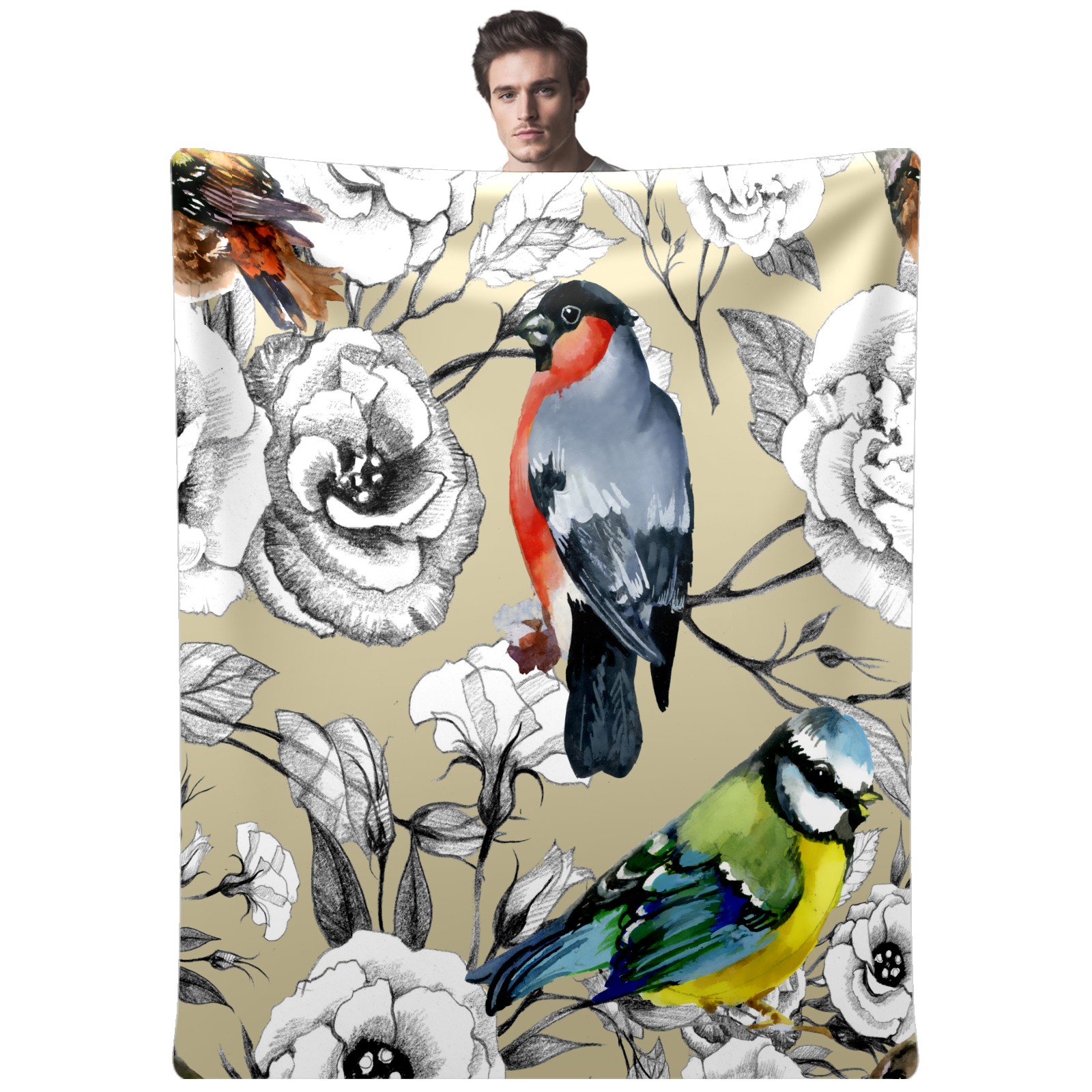 Bird parrot white flower 76x102cm