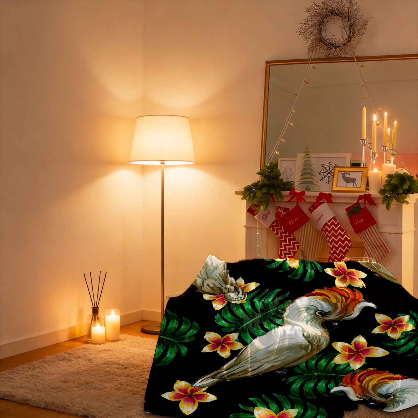 Bird flower leaves 76x102cm