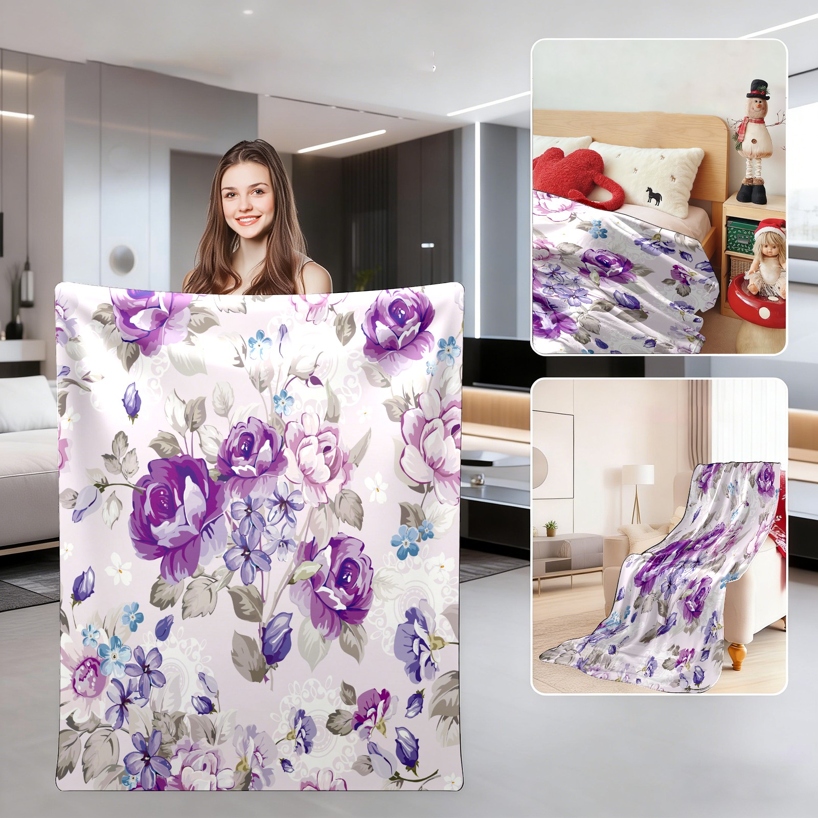Purple Flower Petal Rose 76x102cm