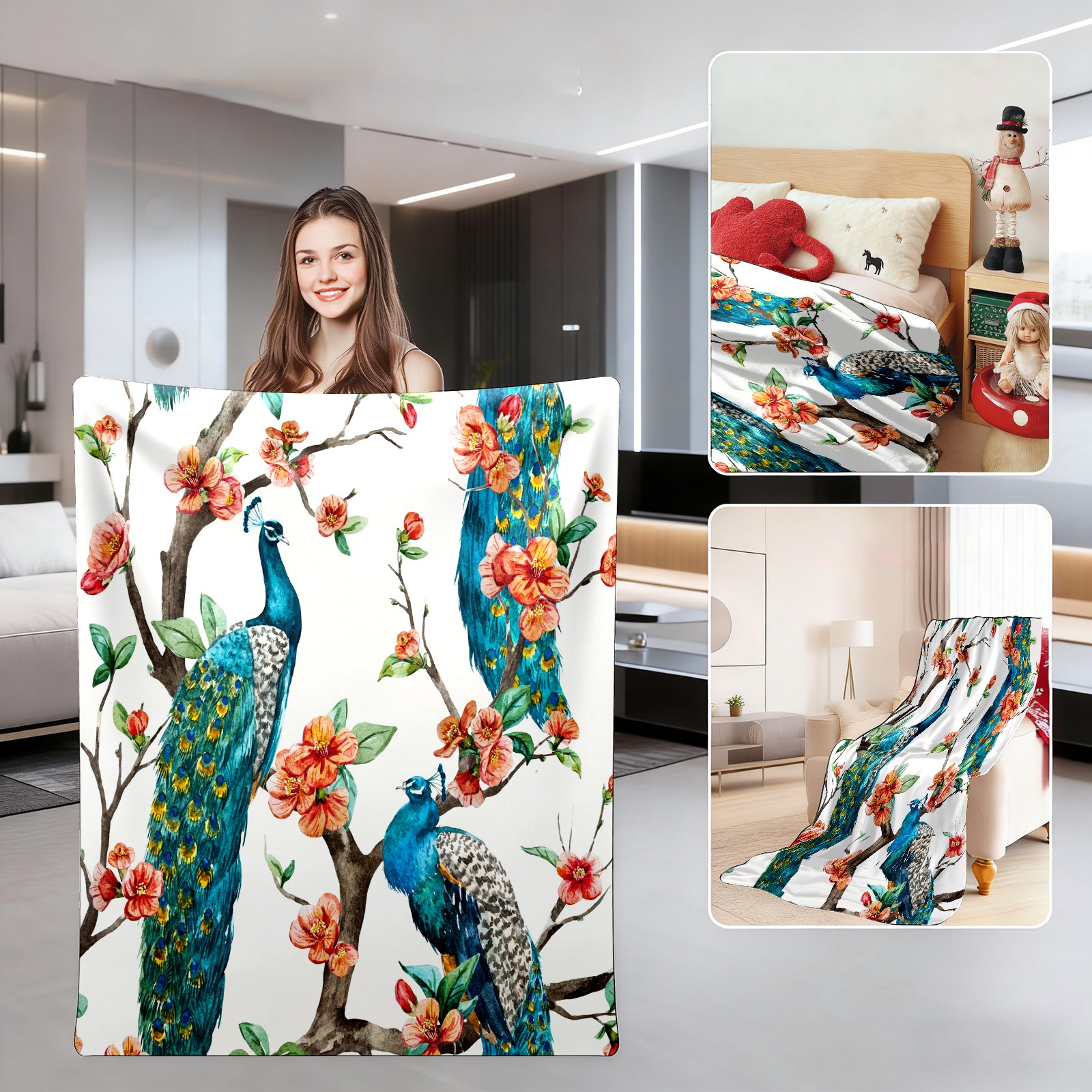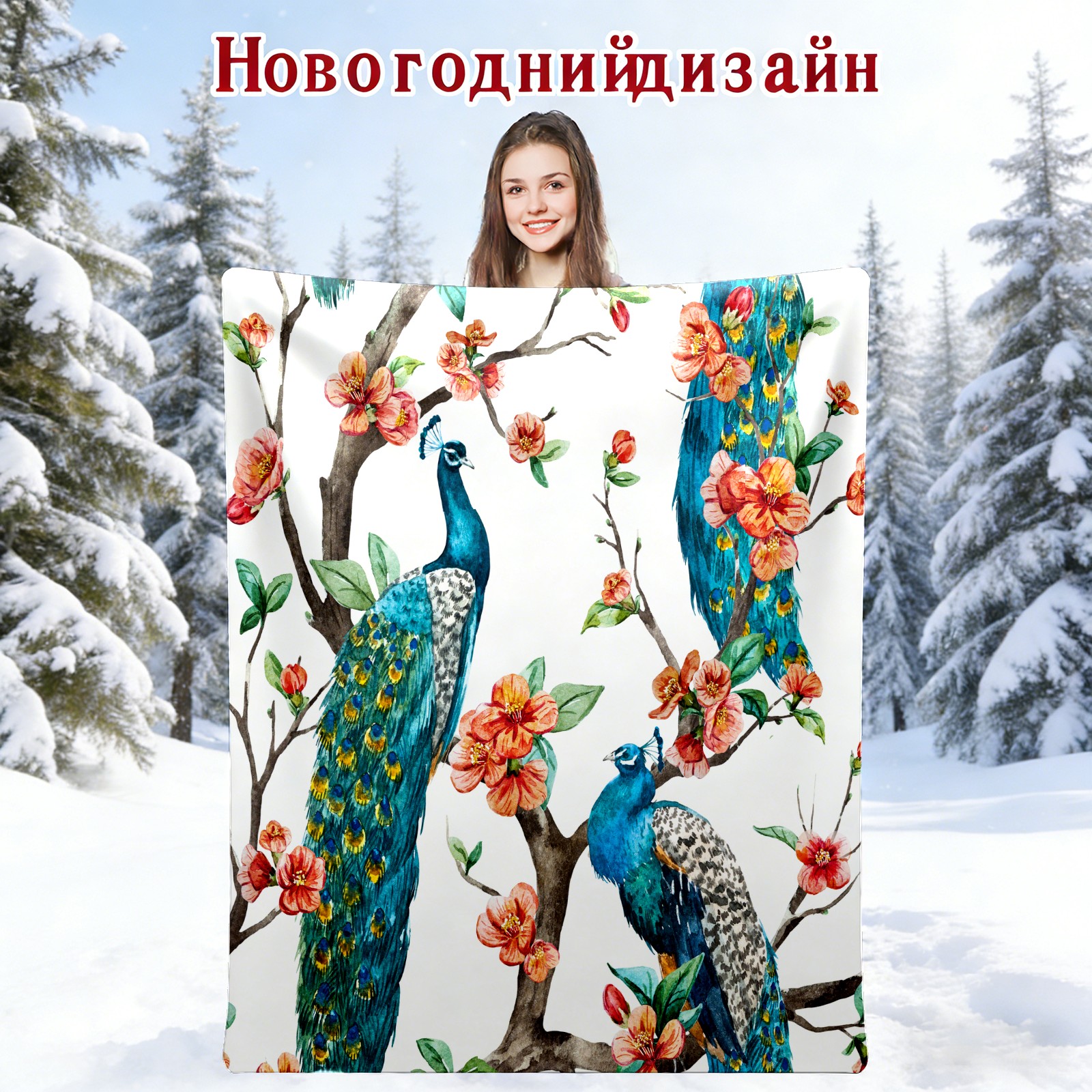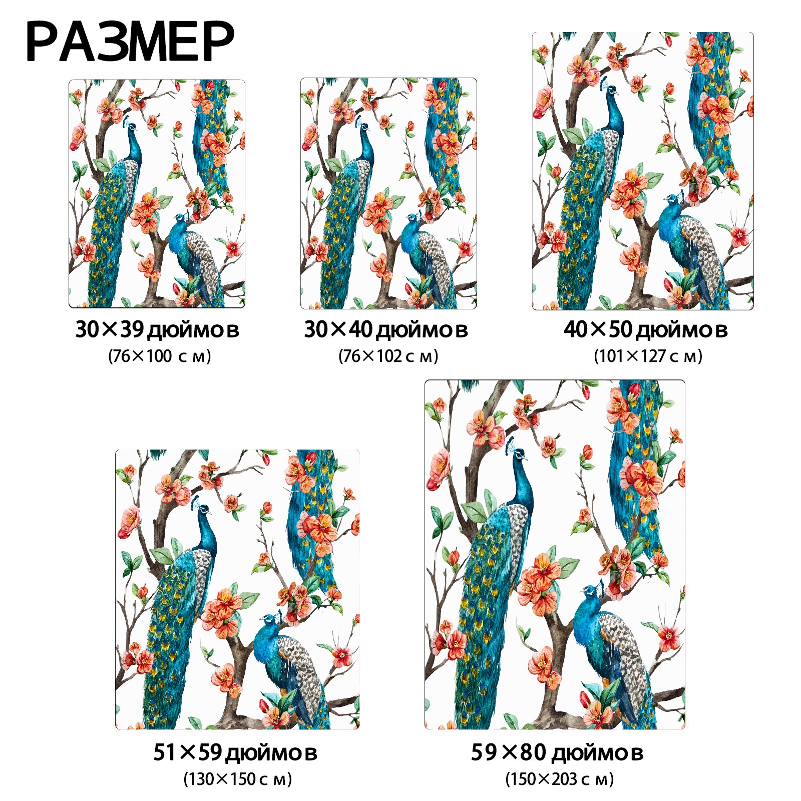 Flowers Blue Peacock Tree 76x102cm