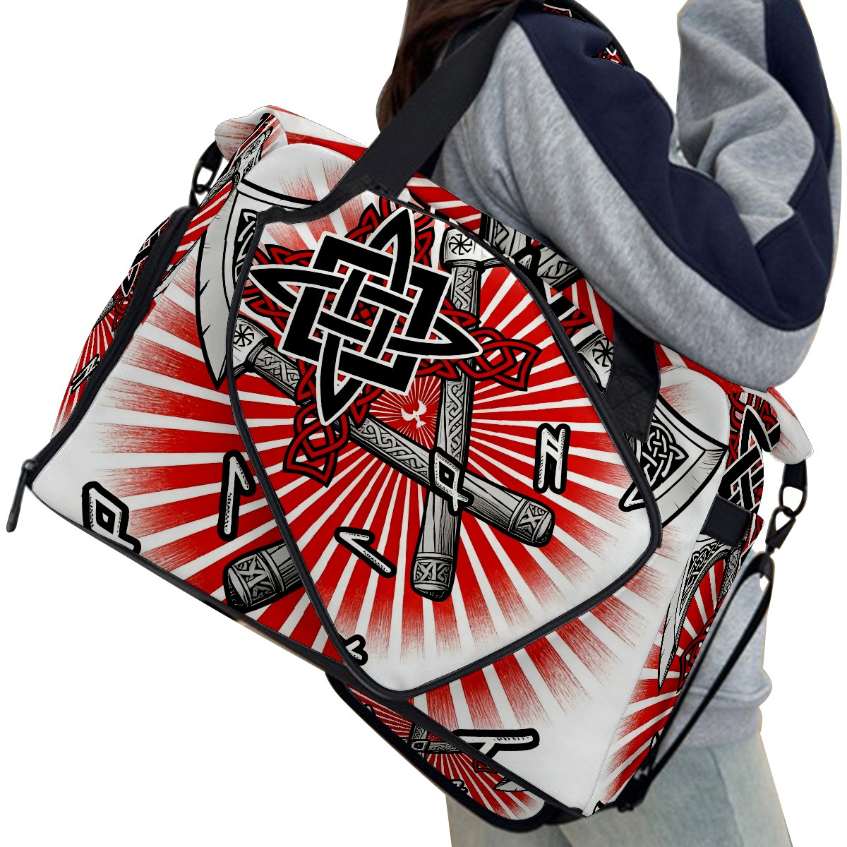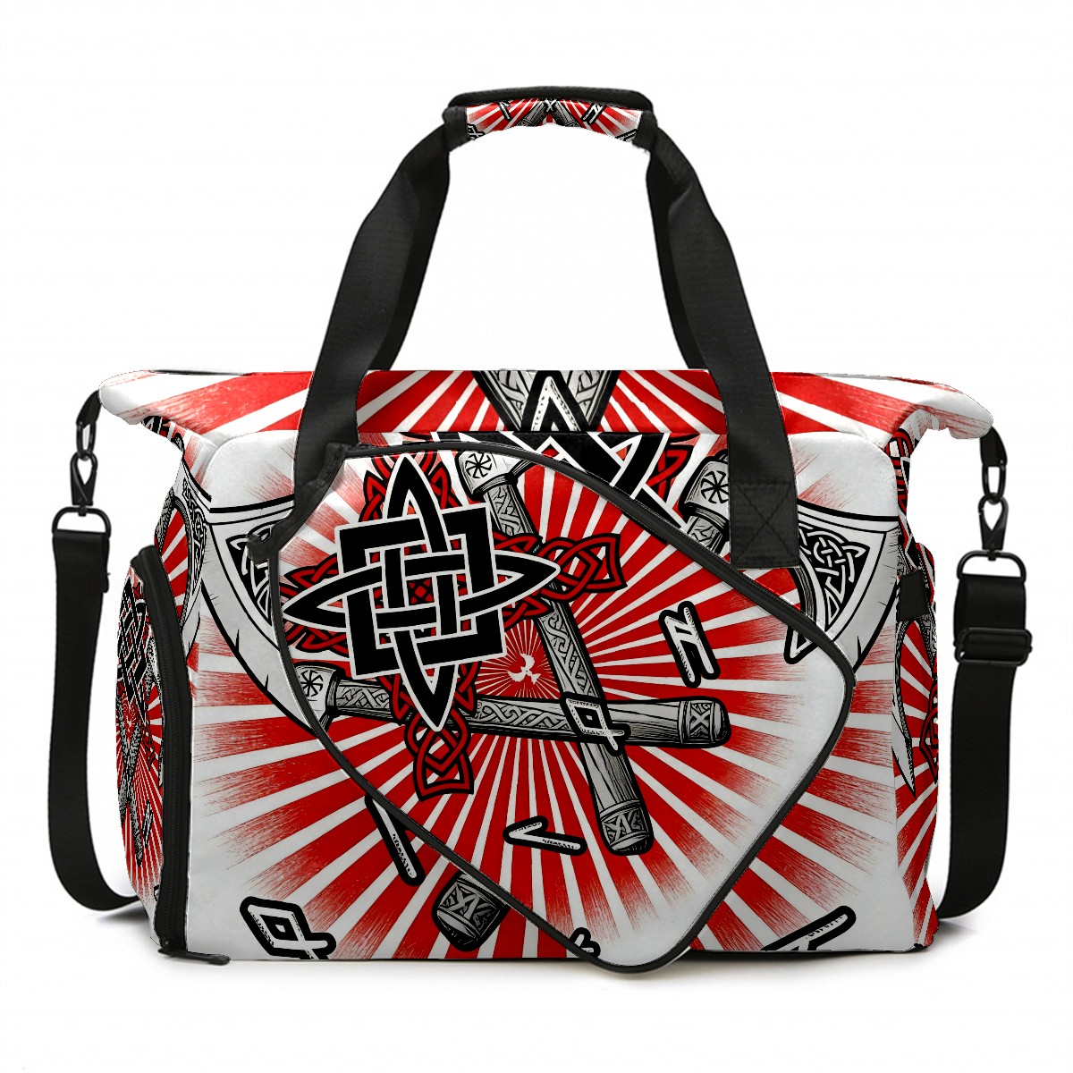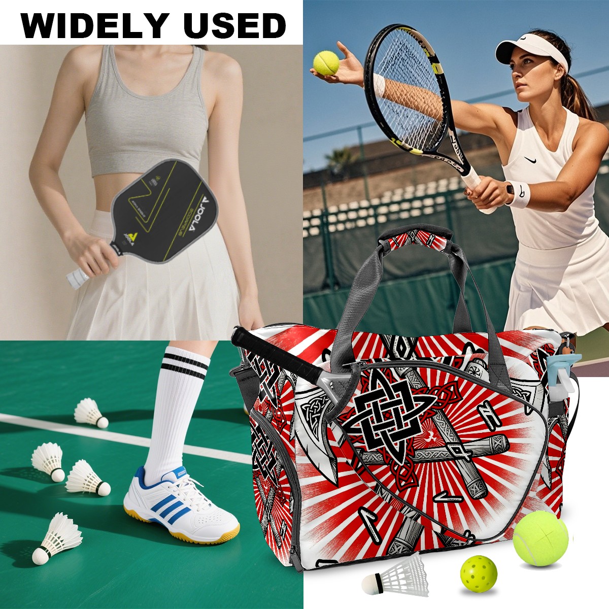 Pickleball Tote Bag Carryall for Paddles Balls and Accessories, Portable Lightweight Gear Bag for Players(Cool Axes Red)