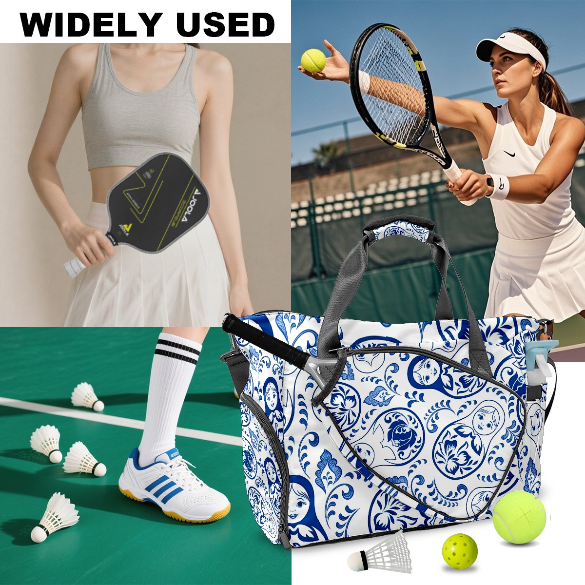 <p>Meet your ultimate court companion – the premium pickleball bag designed for players who demand durability and smart organization. Whether you're heading to a local tournament or a casual game with friends, our meticulously crafted bag keeps your gear secure, accessible, and tournament-ready.</p> <p><b>Built for the Active Lifestyle:</b></p> <p>From casual pickleball games to competitive leagues, this bag adapts to your needs. Store paddles, balls, towels, water bottles, and phones in intelligently placed pockets. The nylon fabric construction withstands court abrasions and daily use season after season.</p>