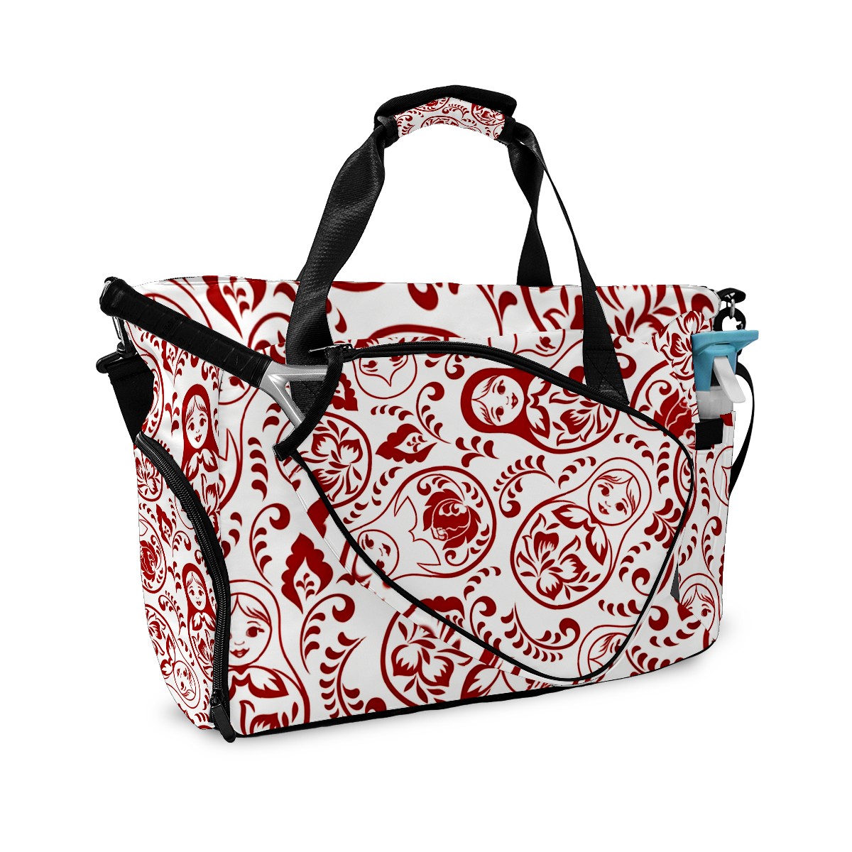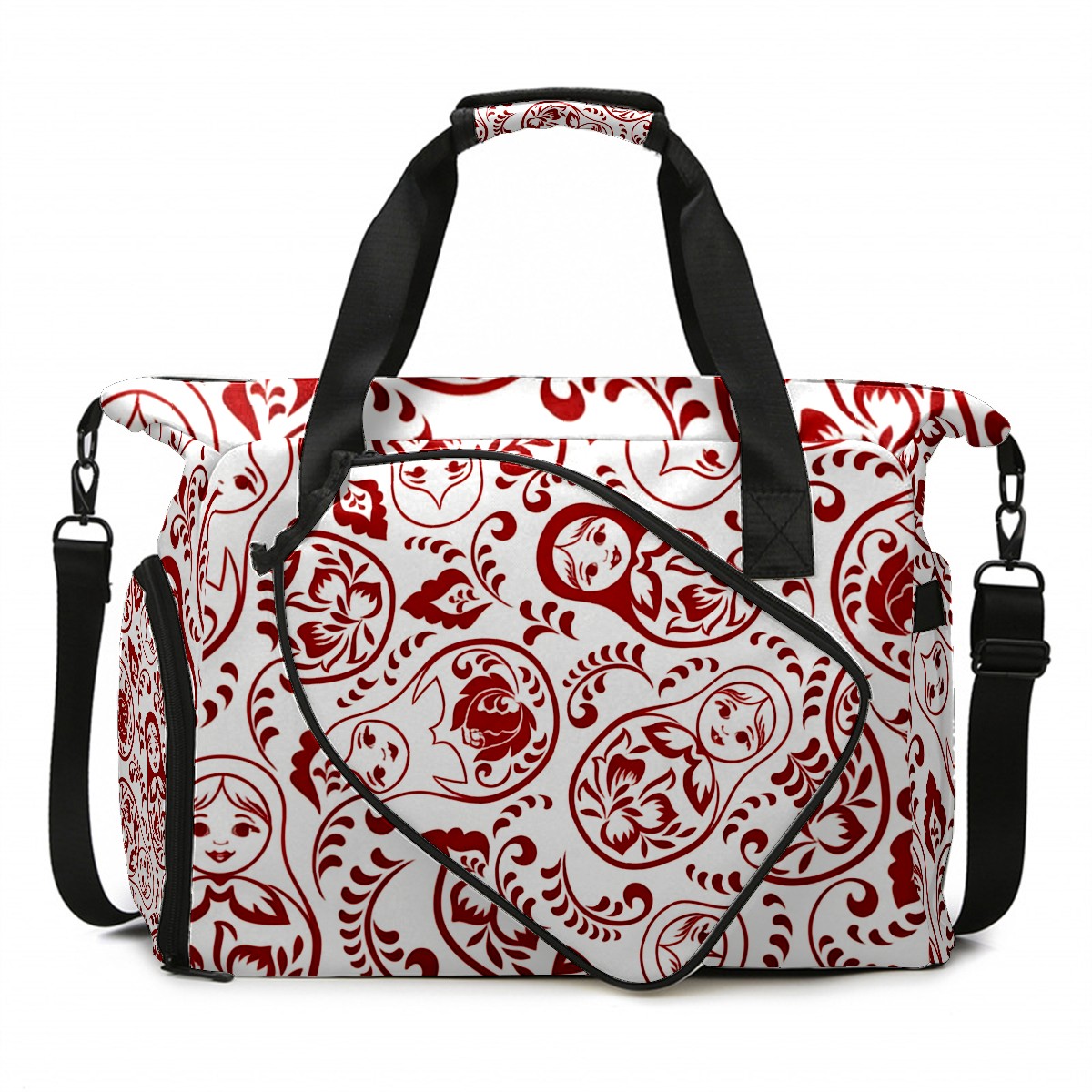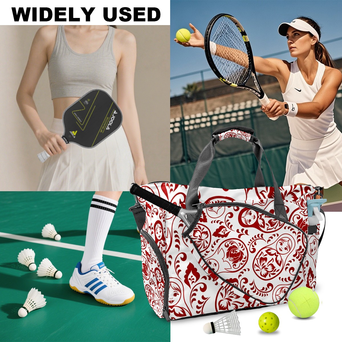 Pickleball Tote Bag Carryall for Paddles Balls and Accessories, Portable Lightweight Gear Bag for Players(Intricate Patterns Red)