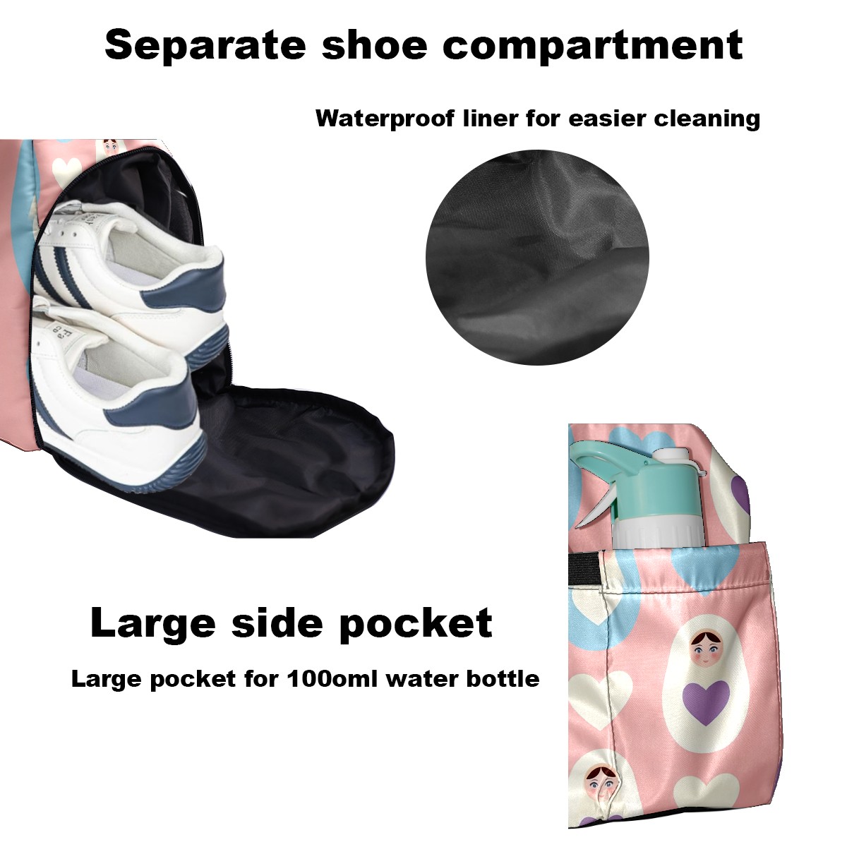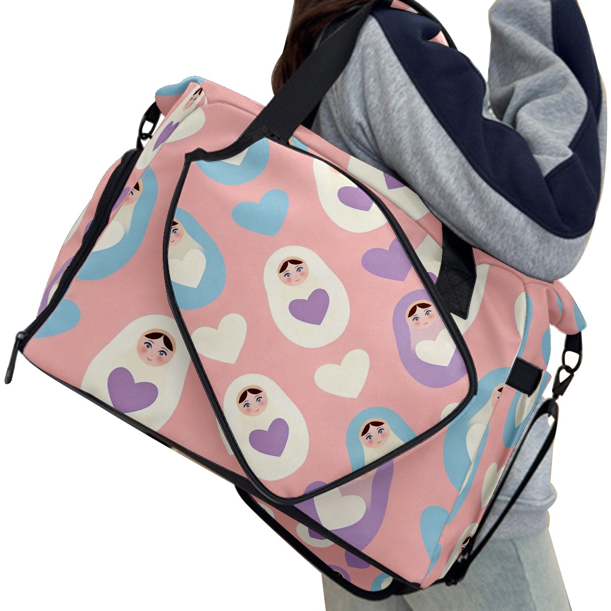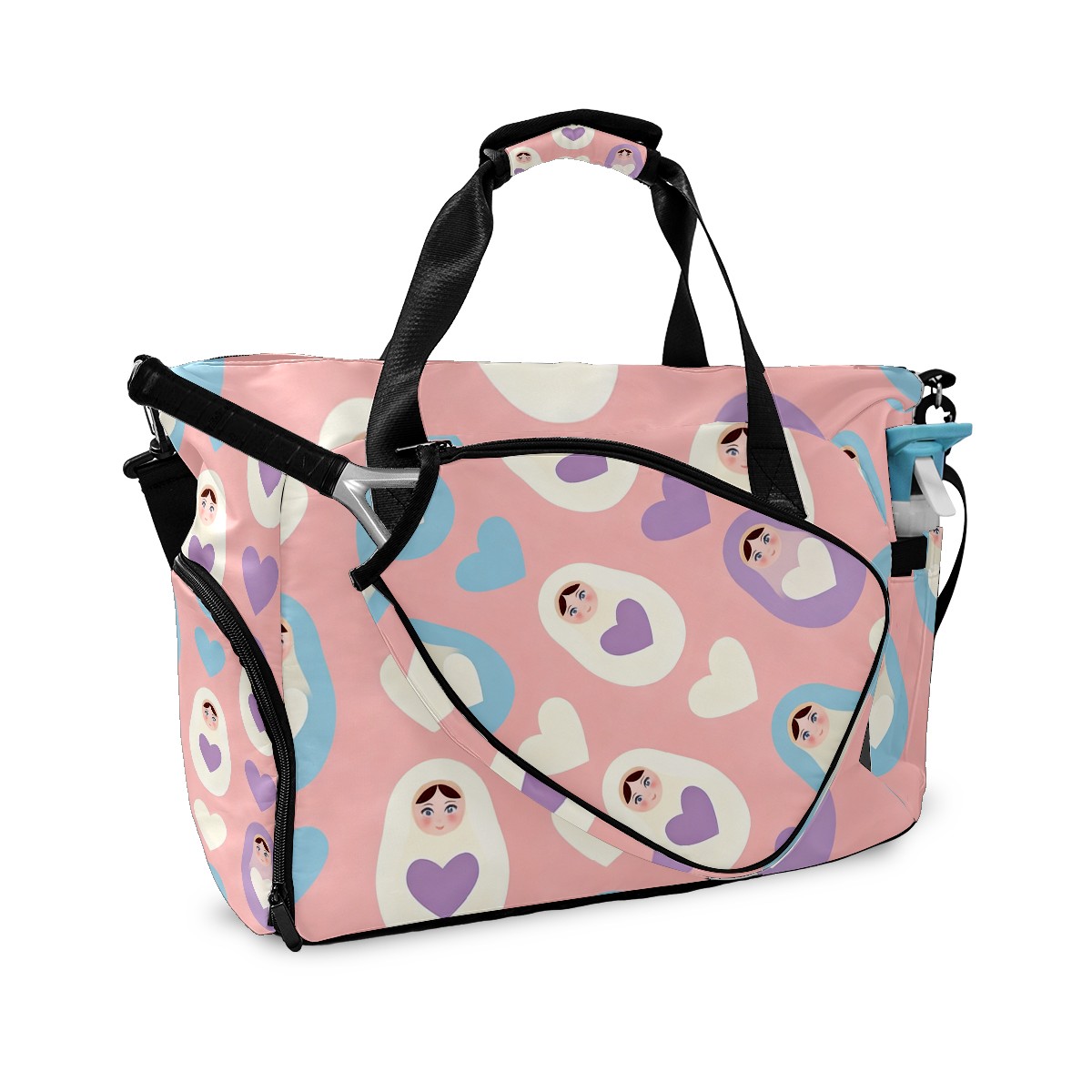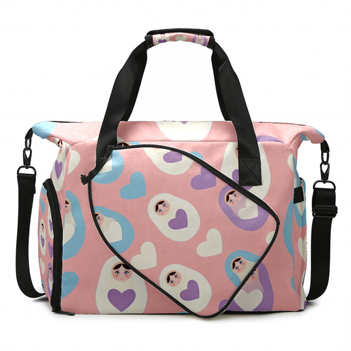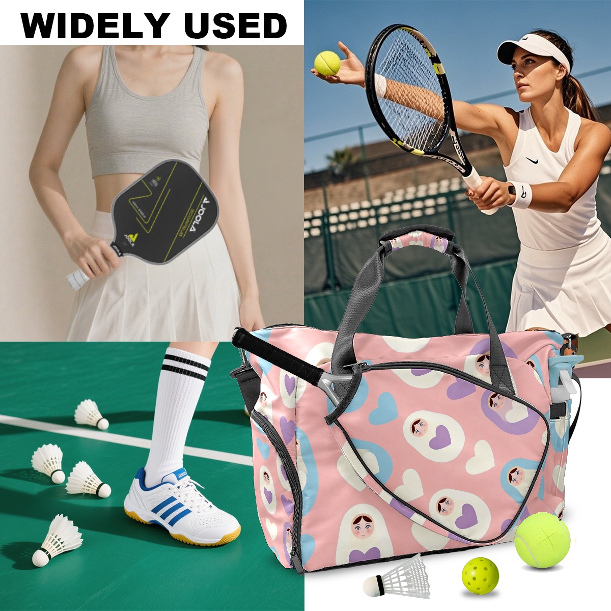 Pickleball Tote Bag Carryall for Paddles Balls and Accessories, Portable Lightweight Gear Bag for Players(Sweet Hearts Pink)