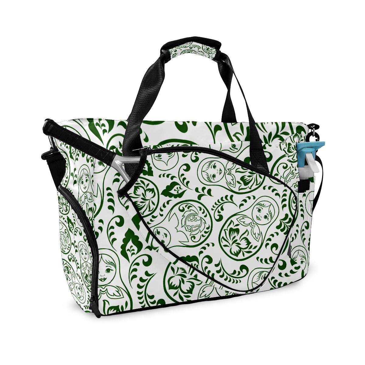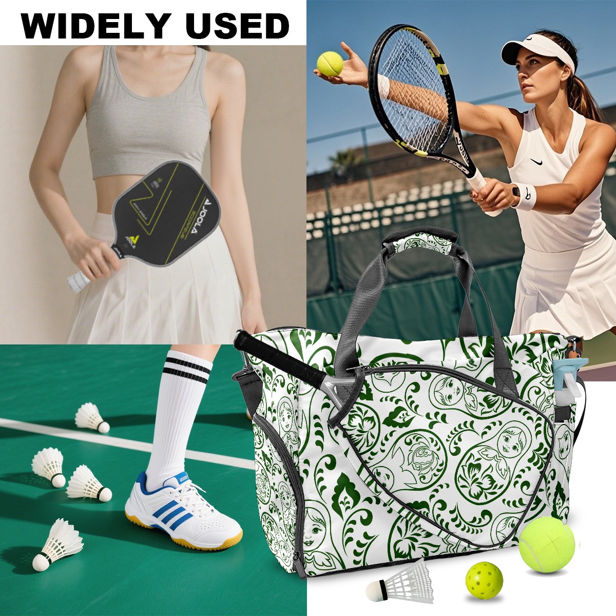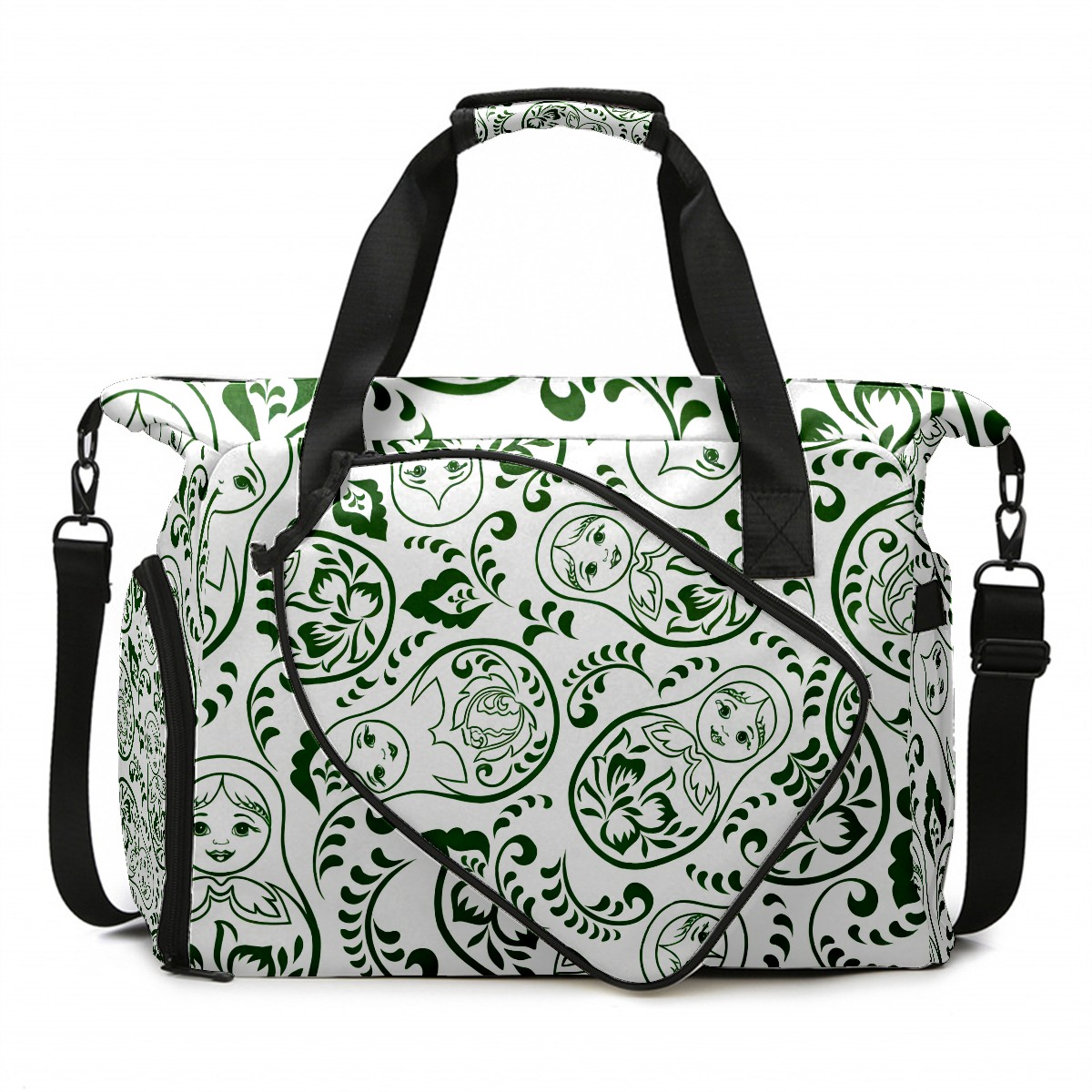 Pickleball Tote Bag Carryall for Paddles Balls and Accessories, Portable Lightweight Gear Bag for Players(Fresh Patterns Green)