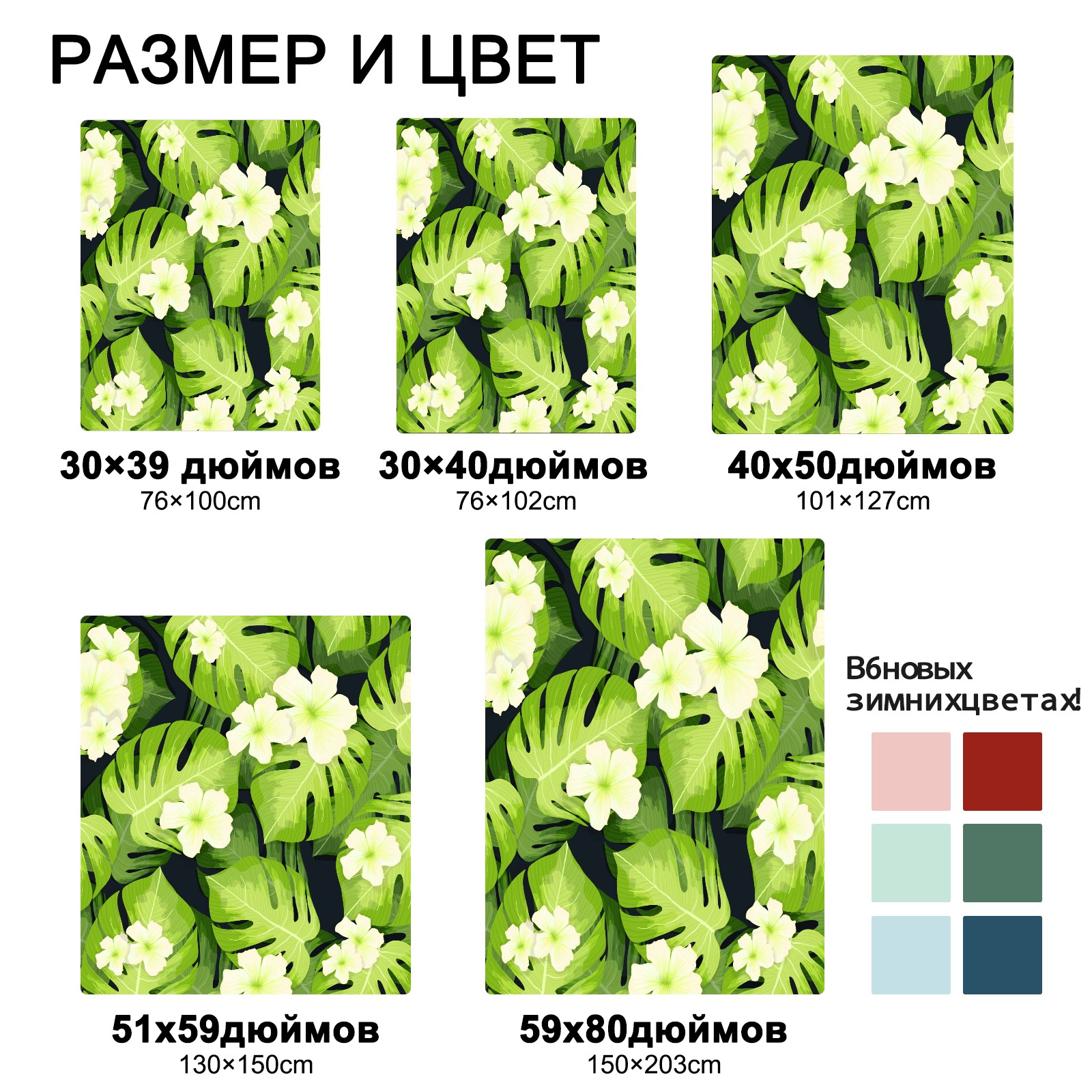 Palm Leaves Pattern Flowers 76x102cm
