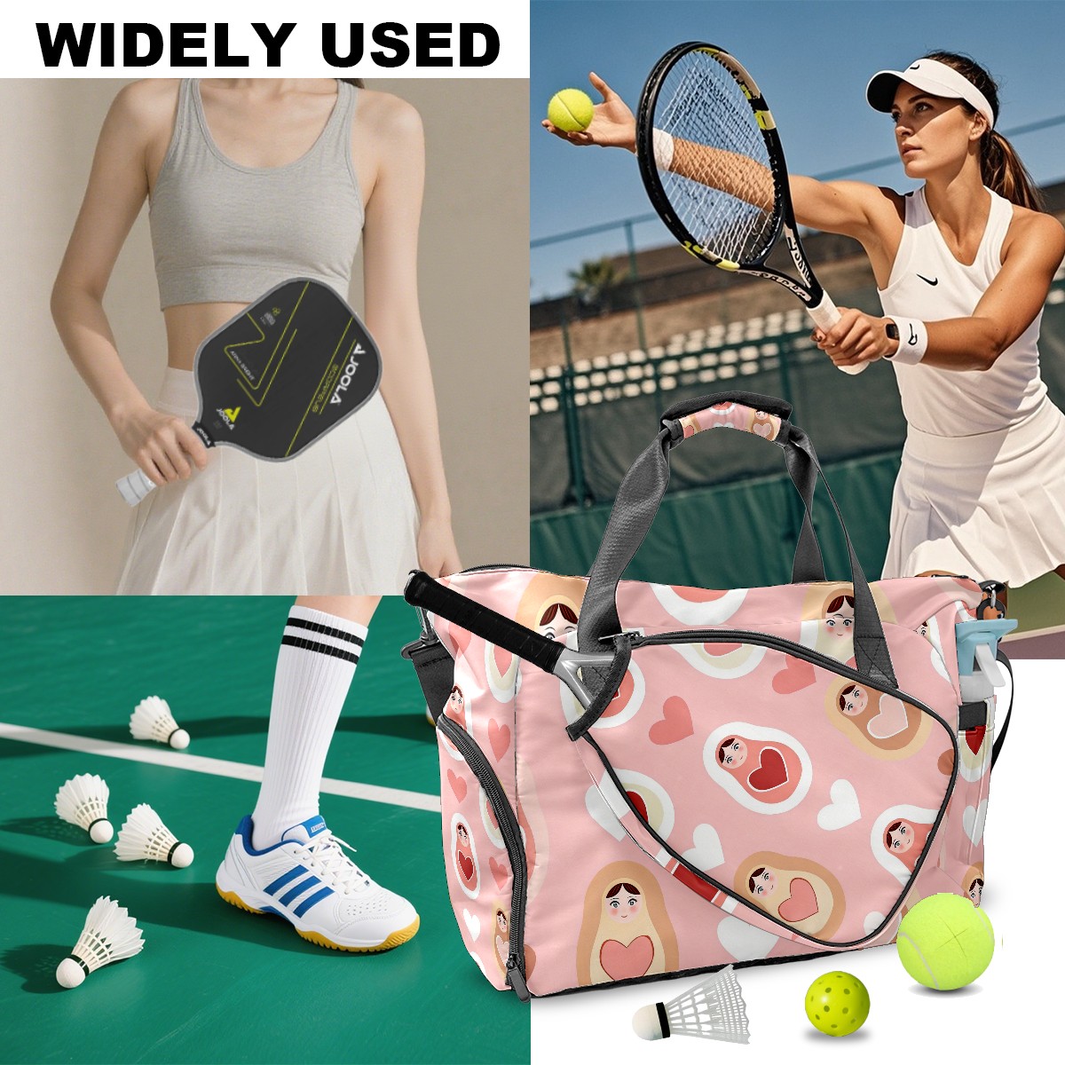 Pickleball Tote Bag Carryall for Paddles Balls and Accessories, Portable Lightweight Gear Bag for Players(Sweet Dolls Pink)