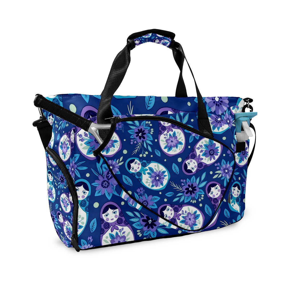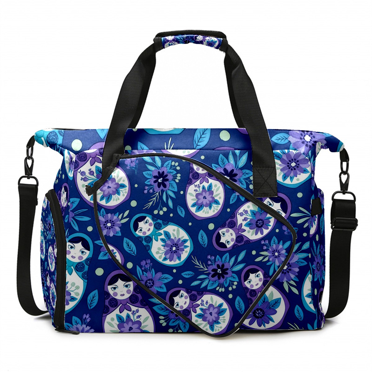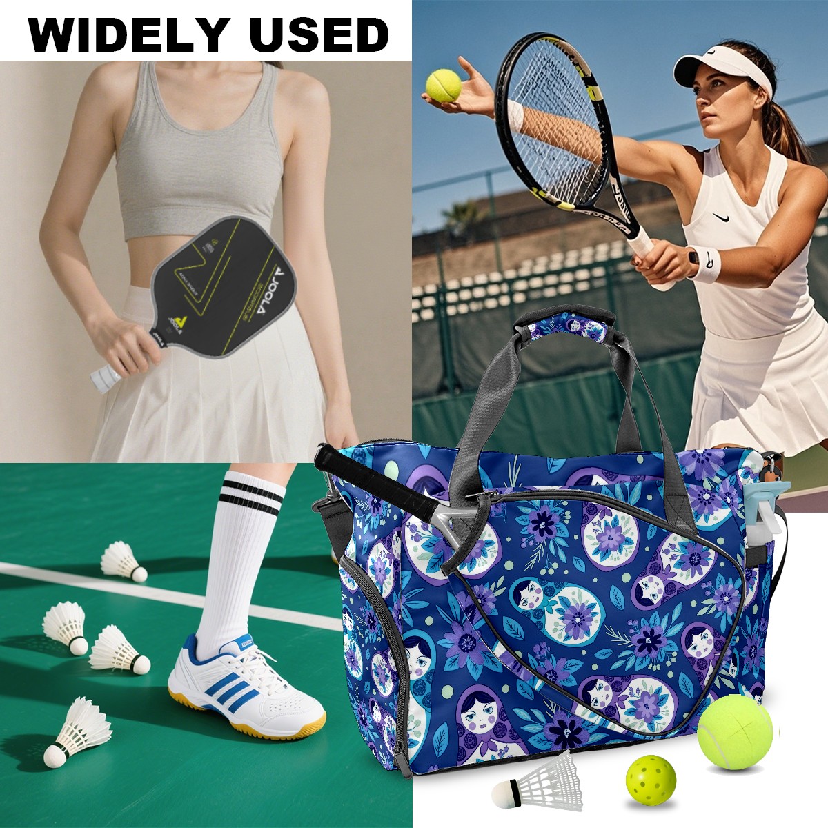 Pickleball Tote Bag Carryall for Paddles Balls and Accessories, Portable Lightweight Gear Bag for Players(Fresh Floral Blue)