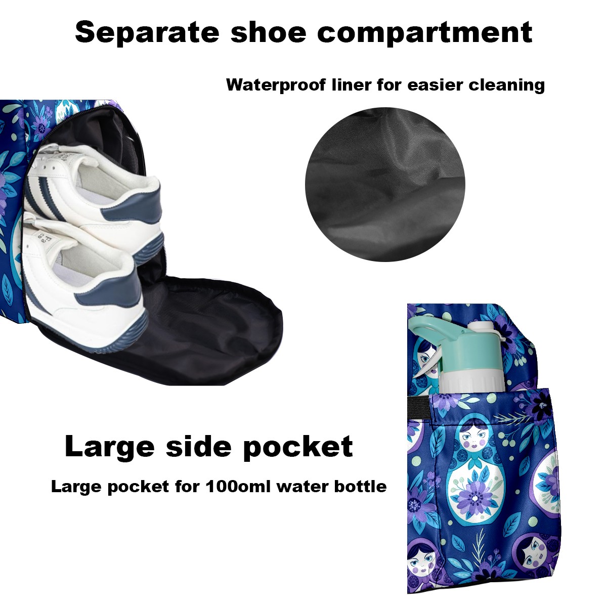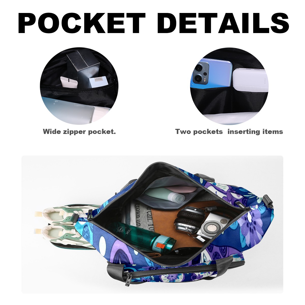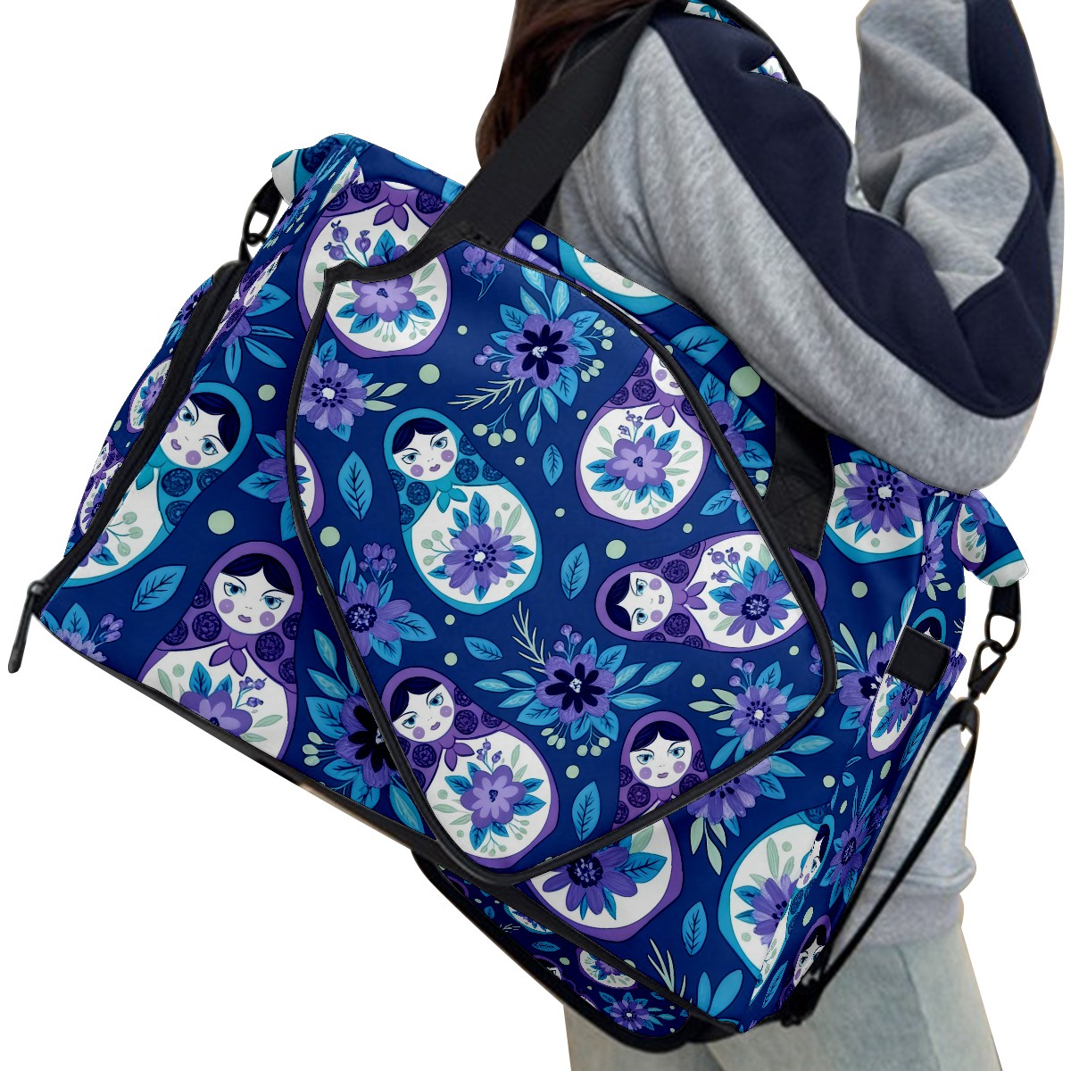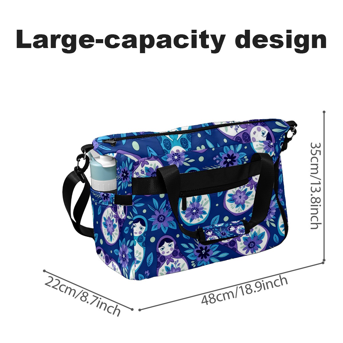 Pickleball Tote Bag Carryall for Paddles Balls and Accessories, Portable Lightweight Gear Bag for Players(Fresh Floral Blue)