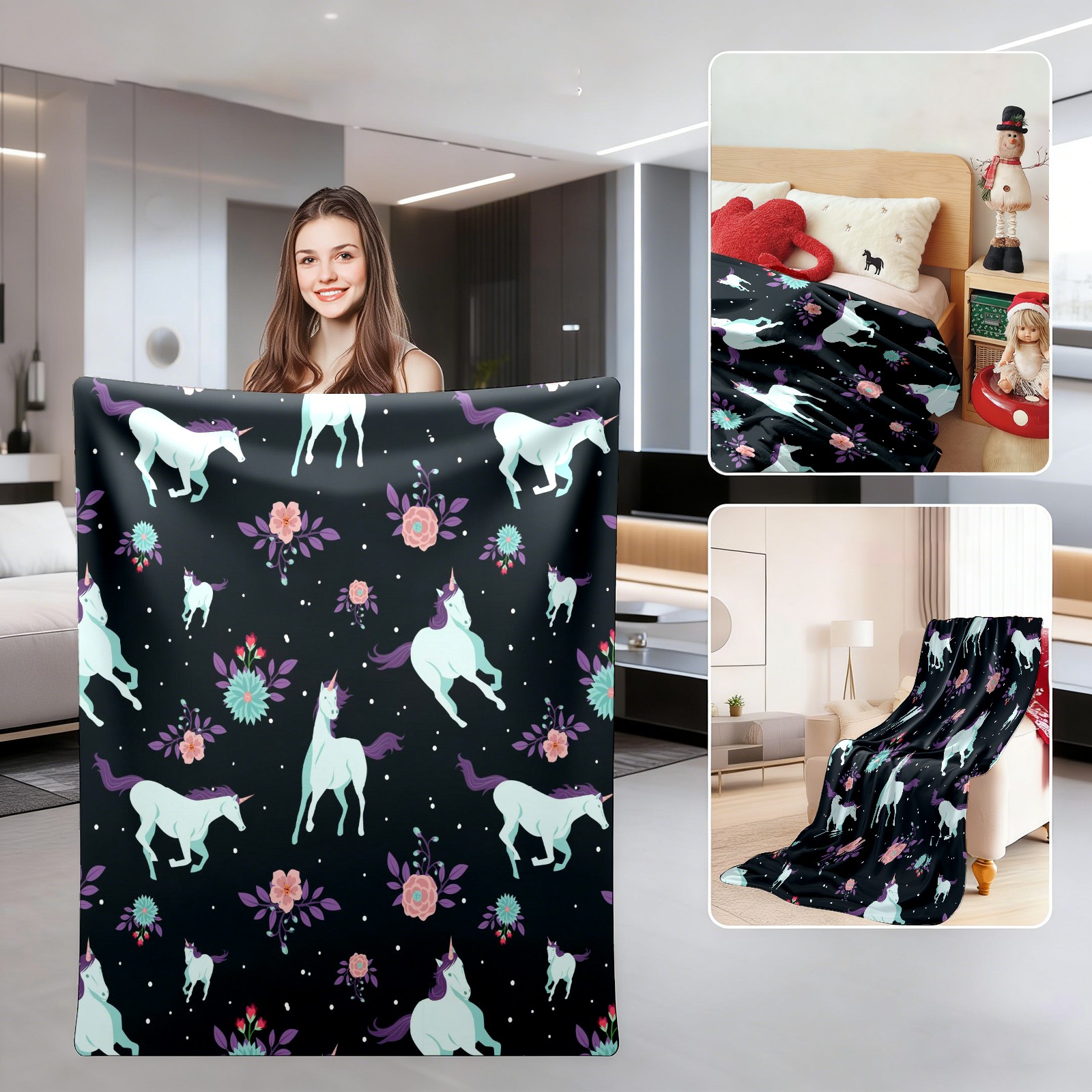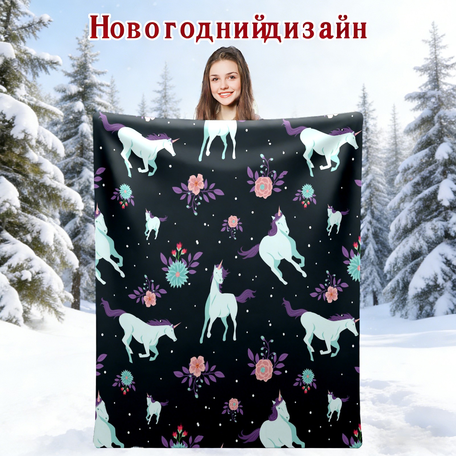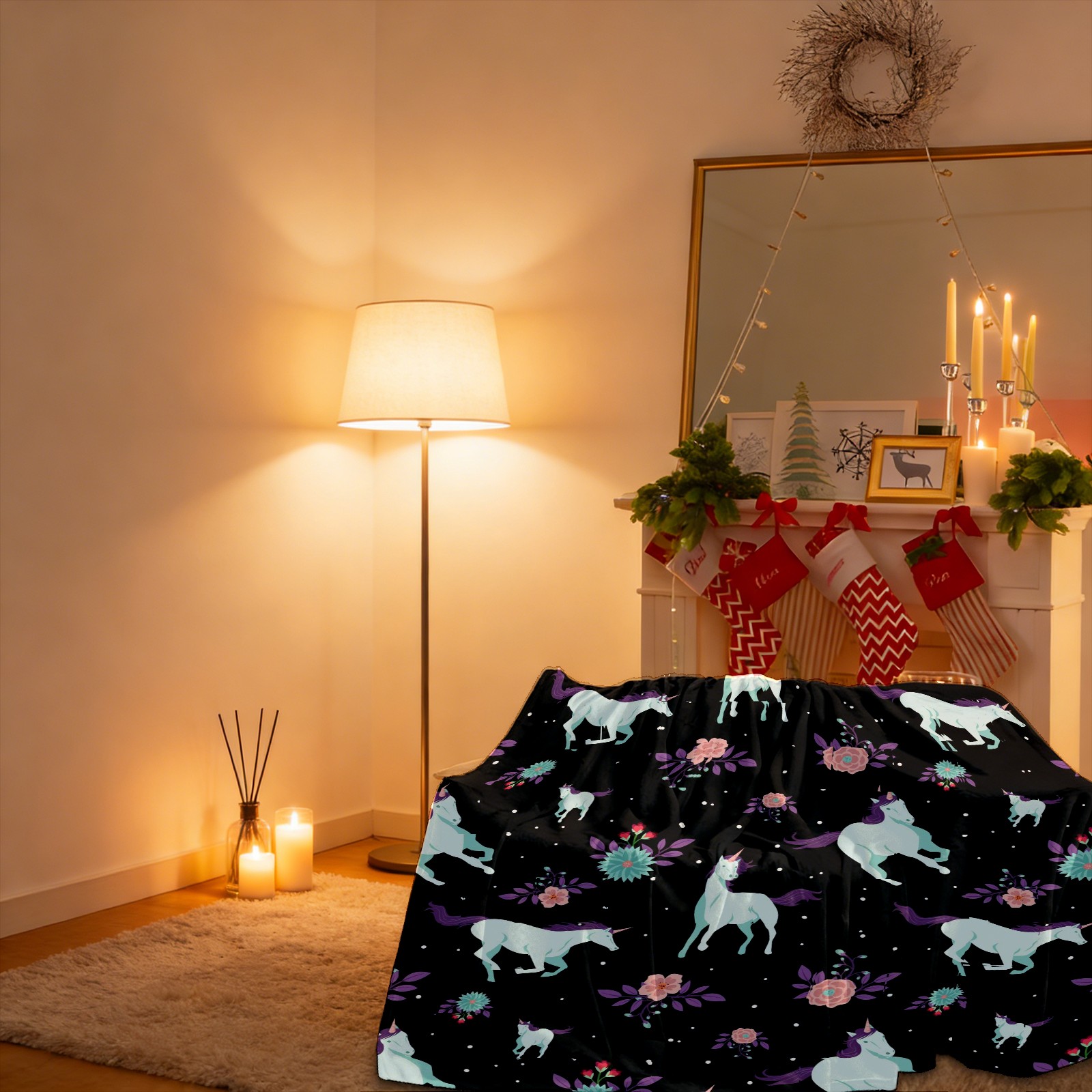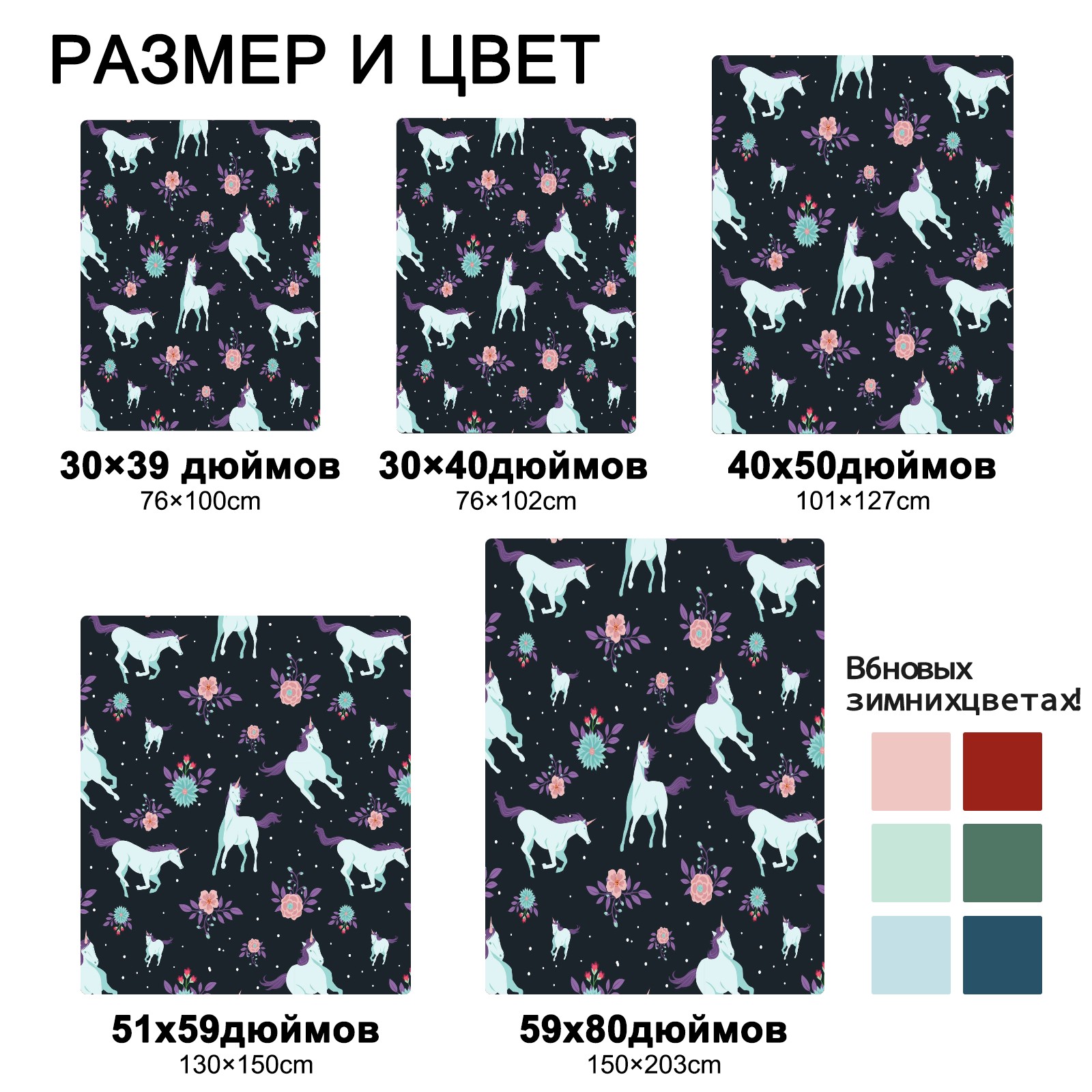 Unicorn Flower Pattern 76x102cm