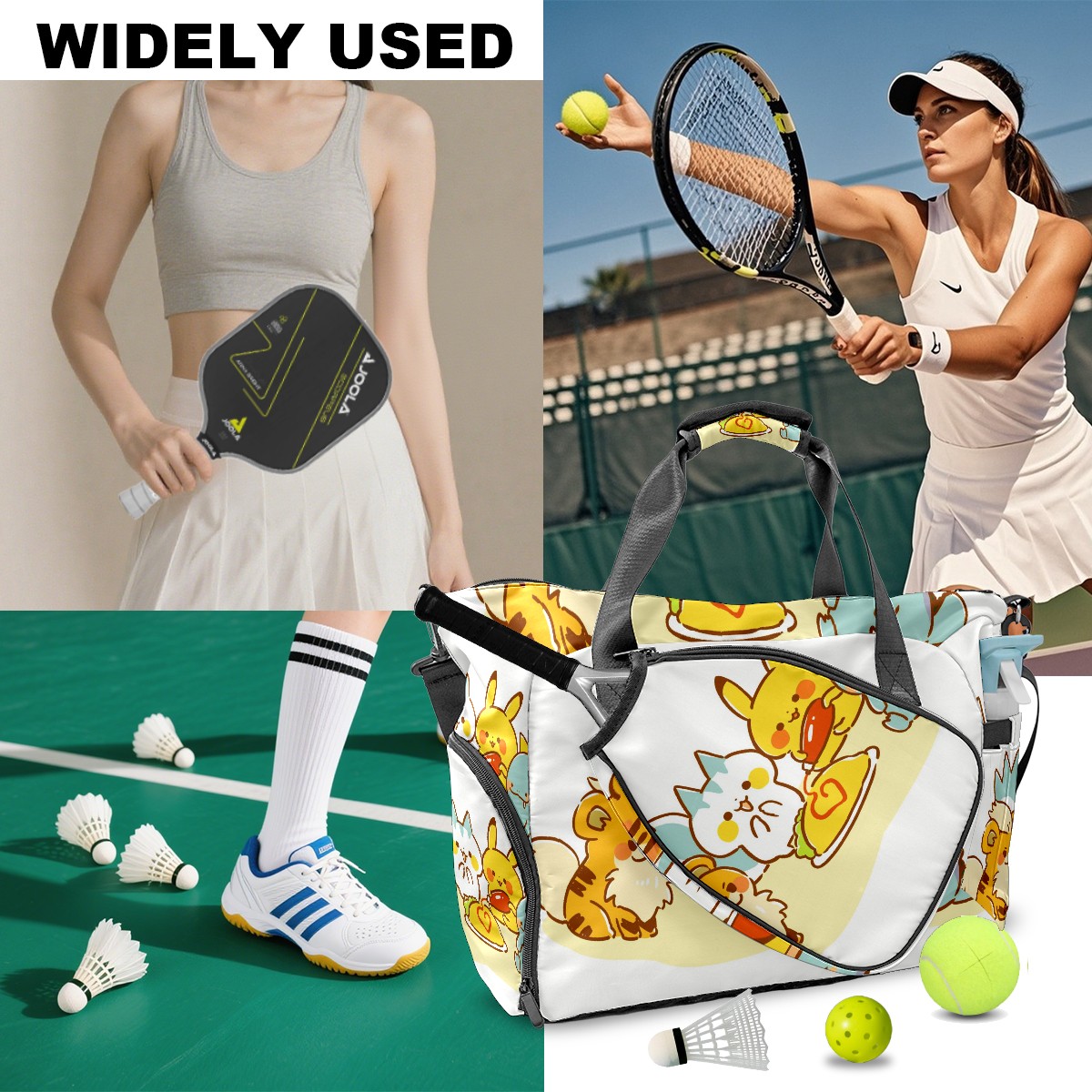 <p>Meet your ultimate court companion – the premium pickleball bag designed for players who demand durability and smart organization. Whether you're heading to a local tournament or a casual game with friends, our meticulously crafted bag keeps your gear secure, accessible, and tournament-ready.</p> <p><b>Built for the Active Lifestyle:</b></p> <p>From casual pickleball games to competitive leagues, this bag adapts to your needs. Store paddles, balls, towels, water bottles, and phones in intelligently placed pockets. The nylon fabric construction withstands court abrasions and daily use season after season.</p>