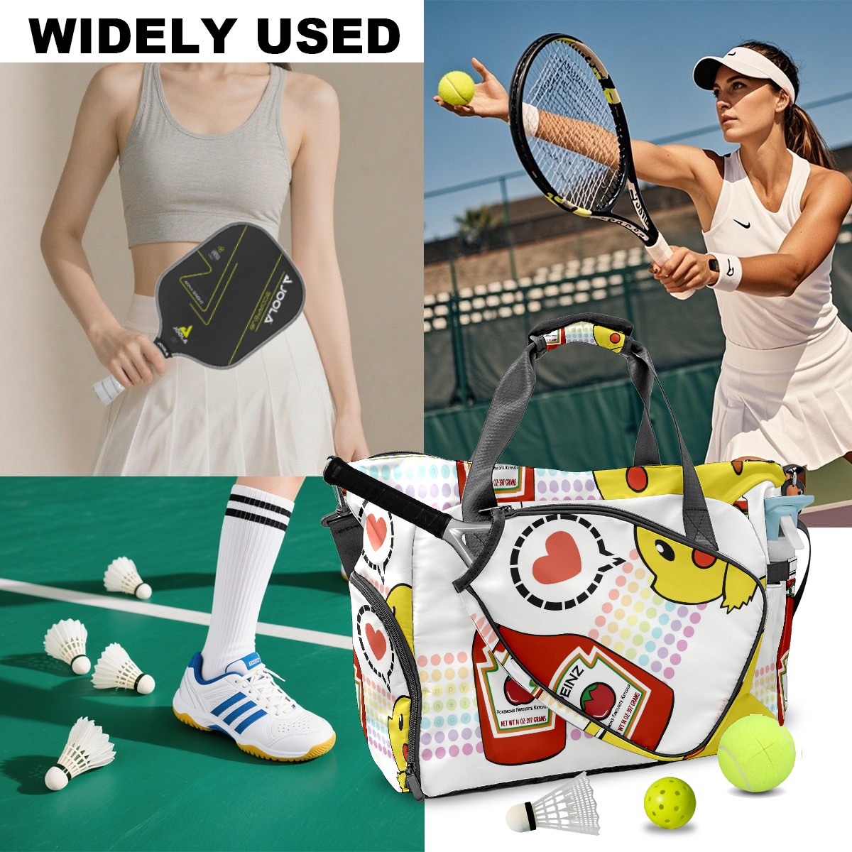 Pickleball Tote Bag Carryall for Paddles Balls and Accessories, Portable Lightweight Gear Bag for Players(横图B (372))