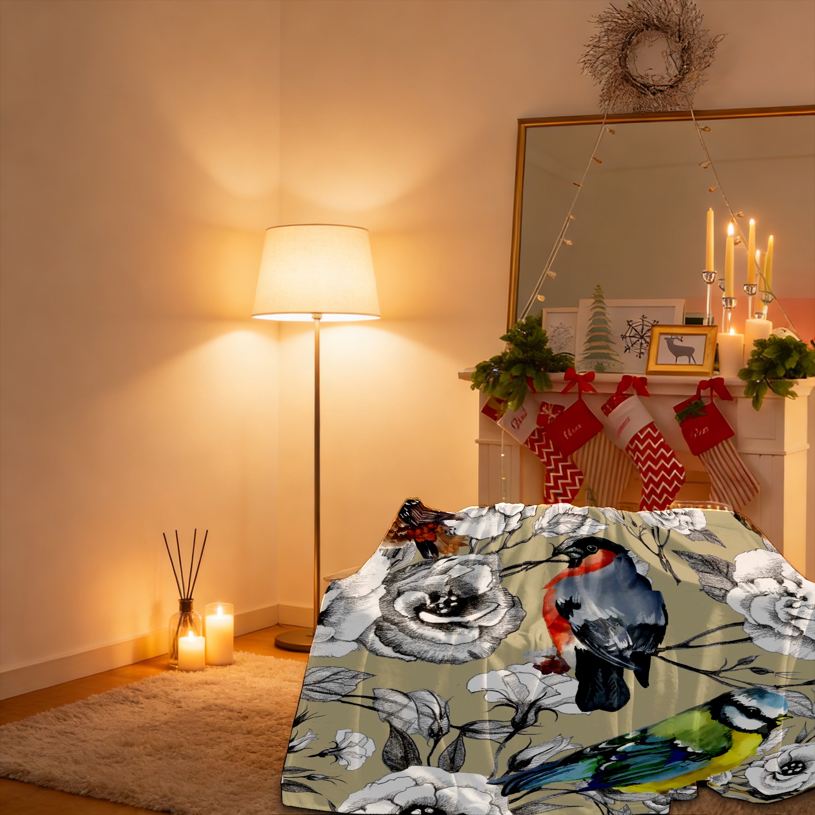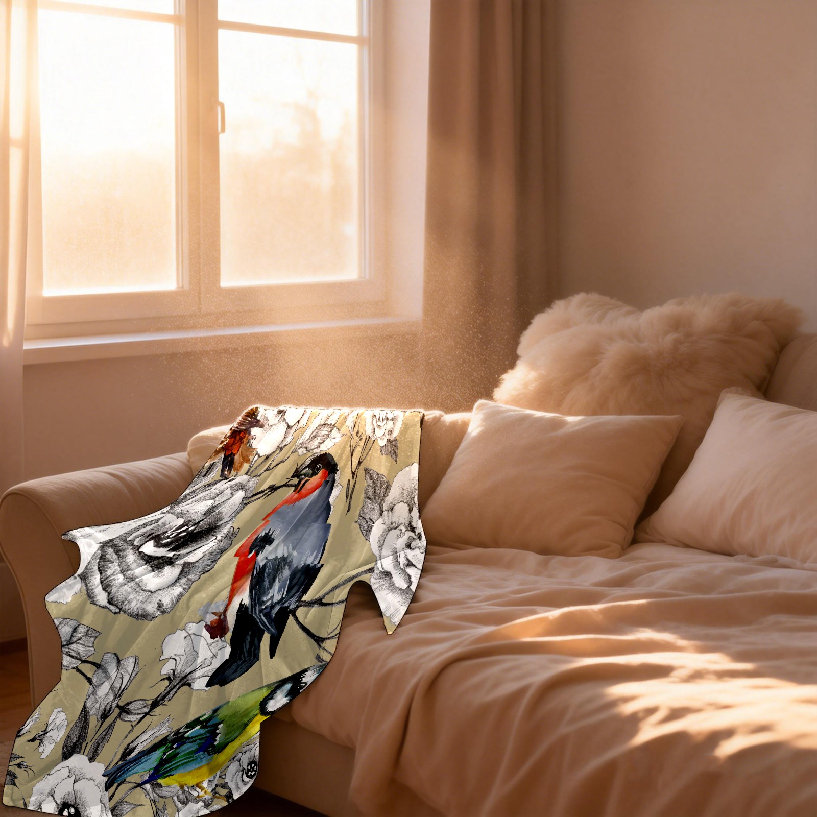 Couple Parrot And Flower 76x102cm