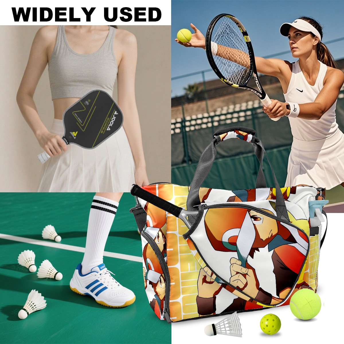 <p>Meet your ultimate court companion – the premium pickleball bag designed for players who demand durability and smart organization. Whether you're heading to a local tournament or a casual game with friends, our meticulously crafted bag keeps your gear secure, accessible, and tournament-ready.</p> <p><b>Built for the Active Lifestyle:</b></p> <p>From casual pickleball games to competitive leagues, this bag adapts to your needs. Store paddles, balls, towels, water bottles, and phones in intelligently placed pockets. The nylon fabric construction withstands court abrasions and daily use season after season.</p>
