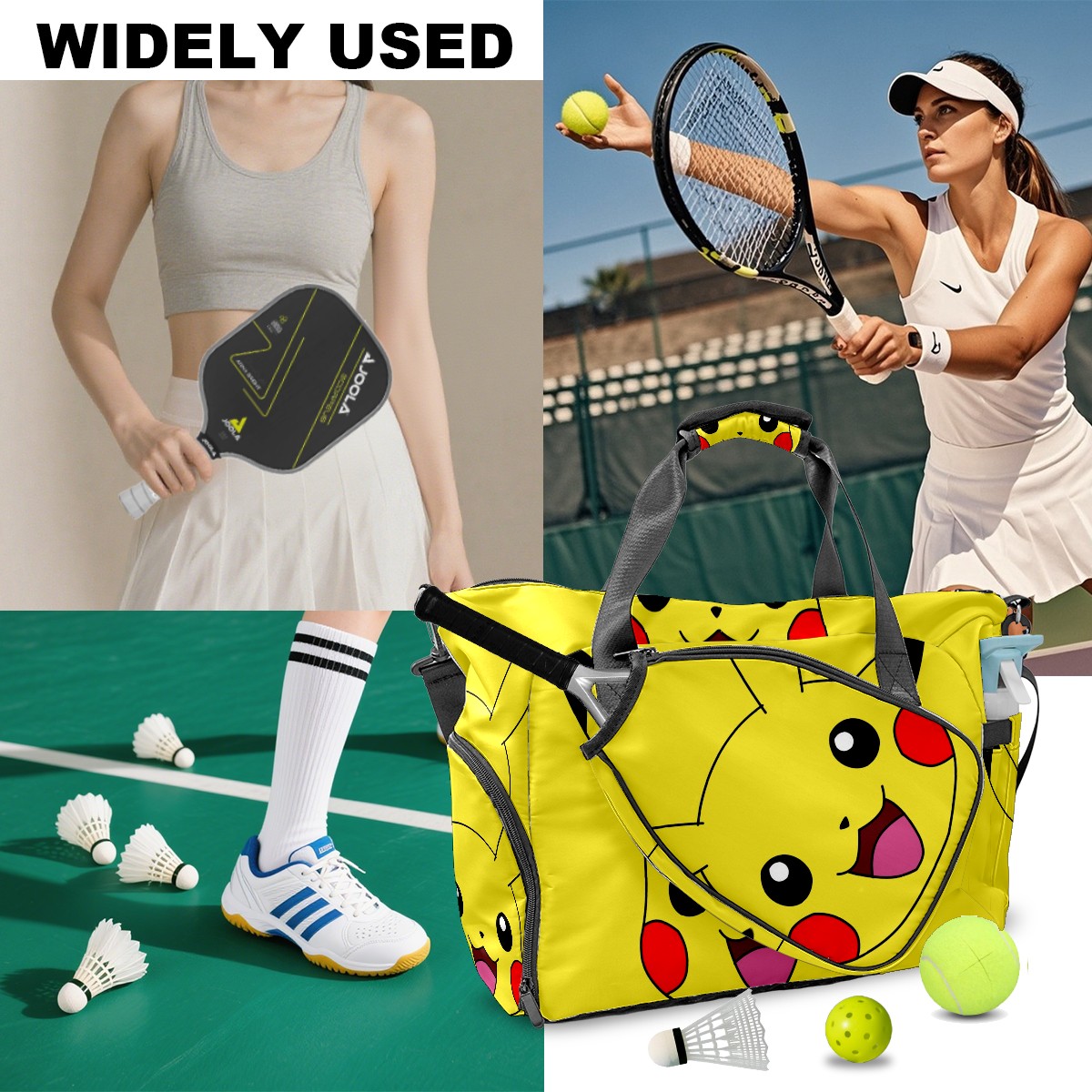 • <p>Meet your ultimate court companion – the premium pickleball bag designed for players who demand durability and smart organization. Whether you're heading to a local tournament or a casual game with friends, our meticulously crafted bag keeps your gear secure, accessible, and tournament-ready.</p> <p><b>Built for the Active Lifestyle:</b></p> <p>From casual pickleball games to competitive leagues, this bag adapts to your needs. Store paddles, balls, towels, water bottles, and phones in intelligently placed pockets. The nylon fabric construction withstands court abrasions and daily use season after season.</p>