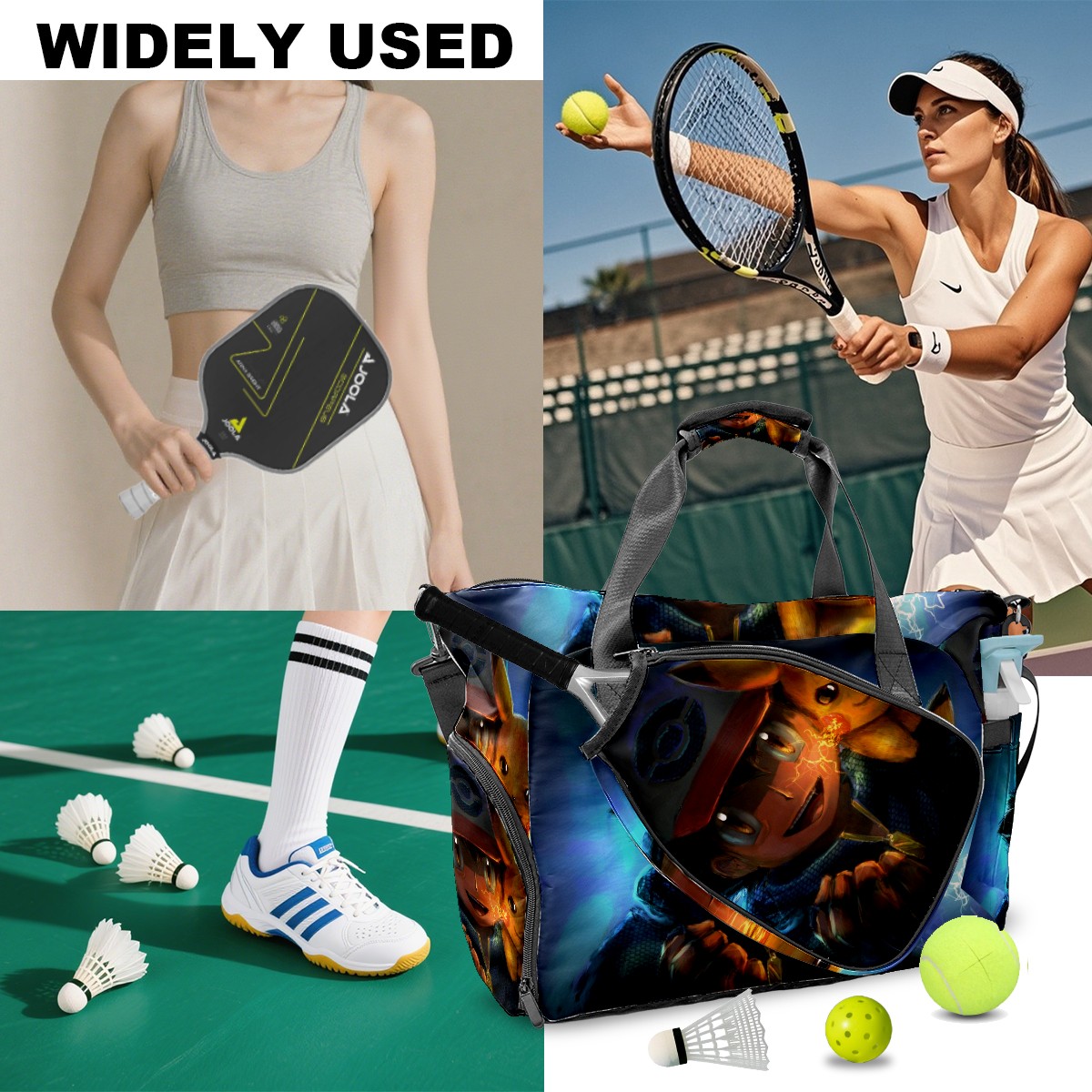 Pickleball Tote Bag Carryall for Paddles Balls and Accessories, Portable Lightweight Gear Bag for Players(横图B (185))