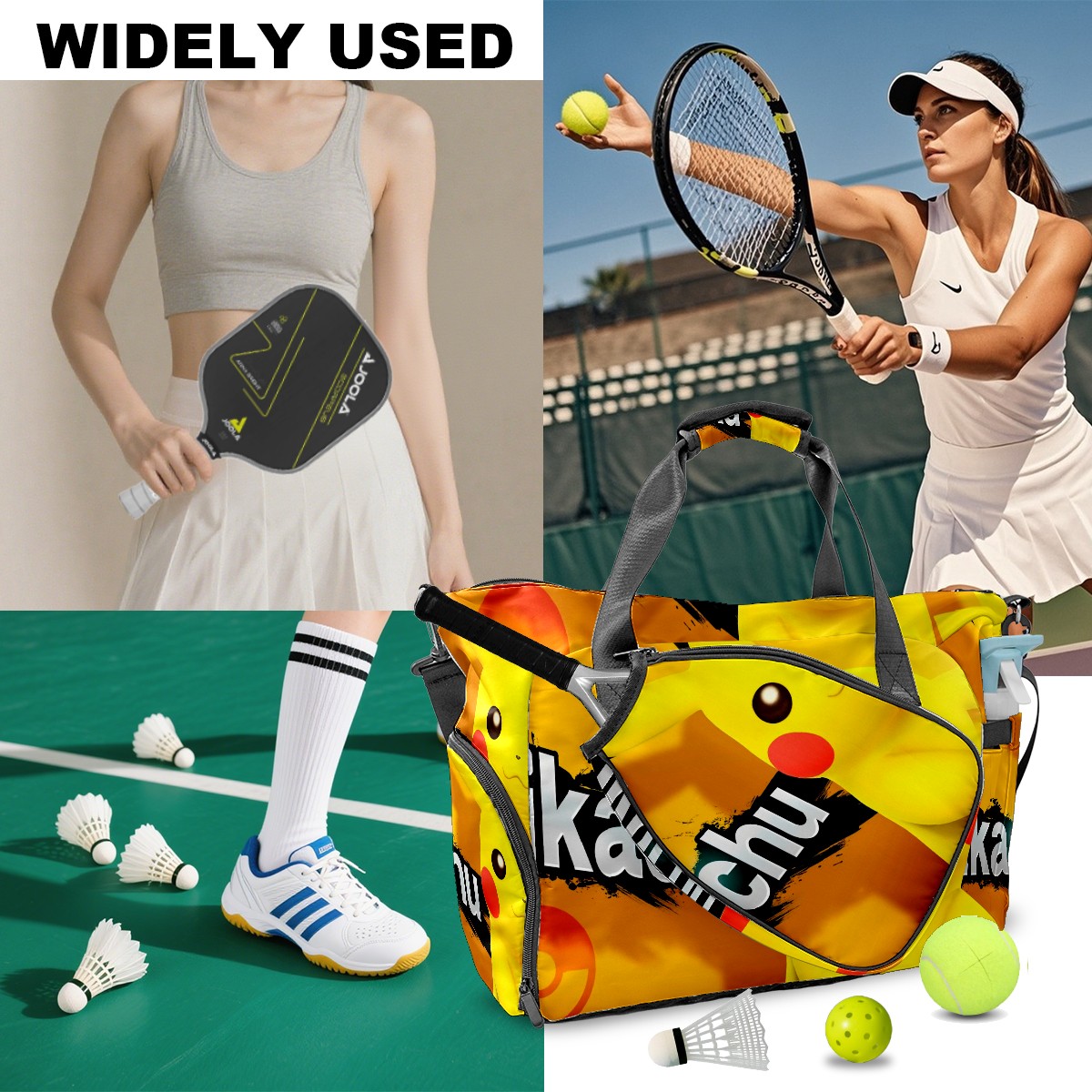 <p>Meet your ultimate court companion – the premium pickleball bag designed for players who demand durability and smart organization. Whether you're heading to a local tournament or a casual game with friends, our meticulously crafted bag keeps your gear secure, accessible, and tournament-ready.</p> <p><b>Built for the Active Lifestyle:</b></p> <p>From casual pickleball games to competitive leagues, this bag adapts to your needs. Store paddles, balls, towels, water bottles, and phones in intelligently placed pockets. The nylon fabric construction withstands court abrasions and daily use season after season.</p>