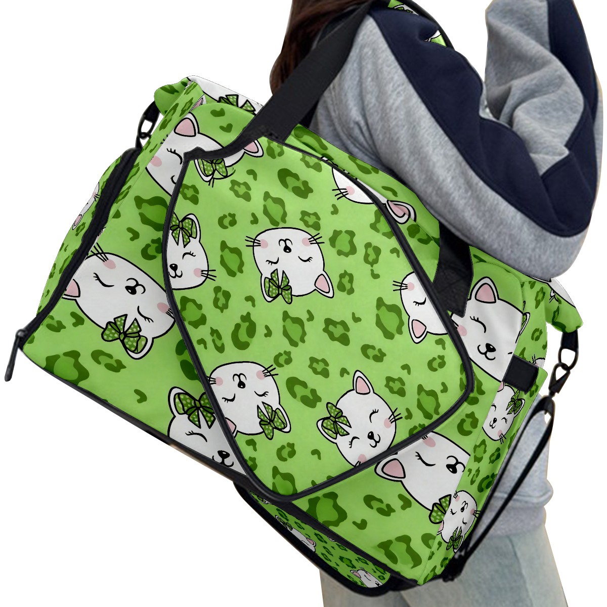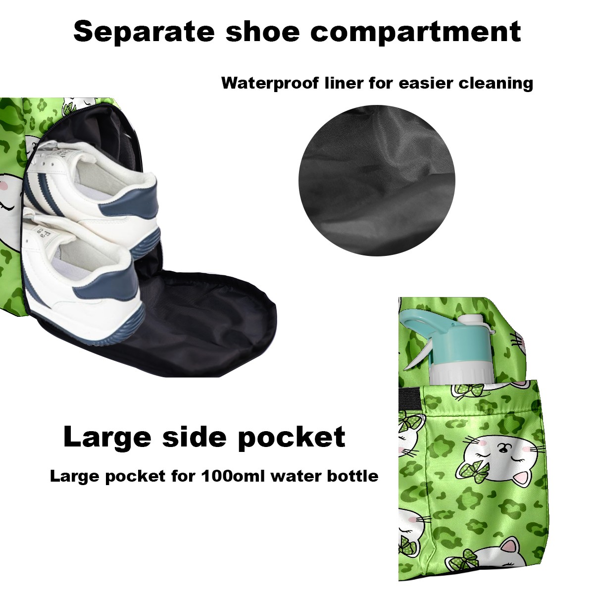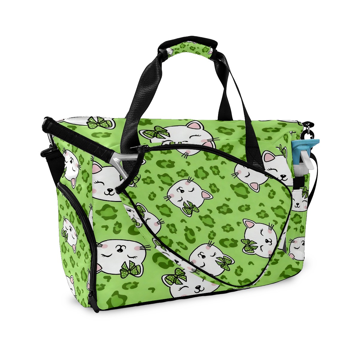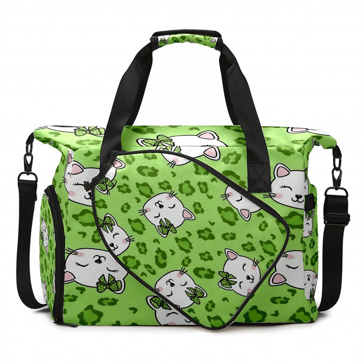 Pickleball Tote Bag Carryall for Paddles Balls and Accessories, Portable Lightweight Gear Bag for Players(Cat Green)