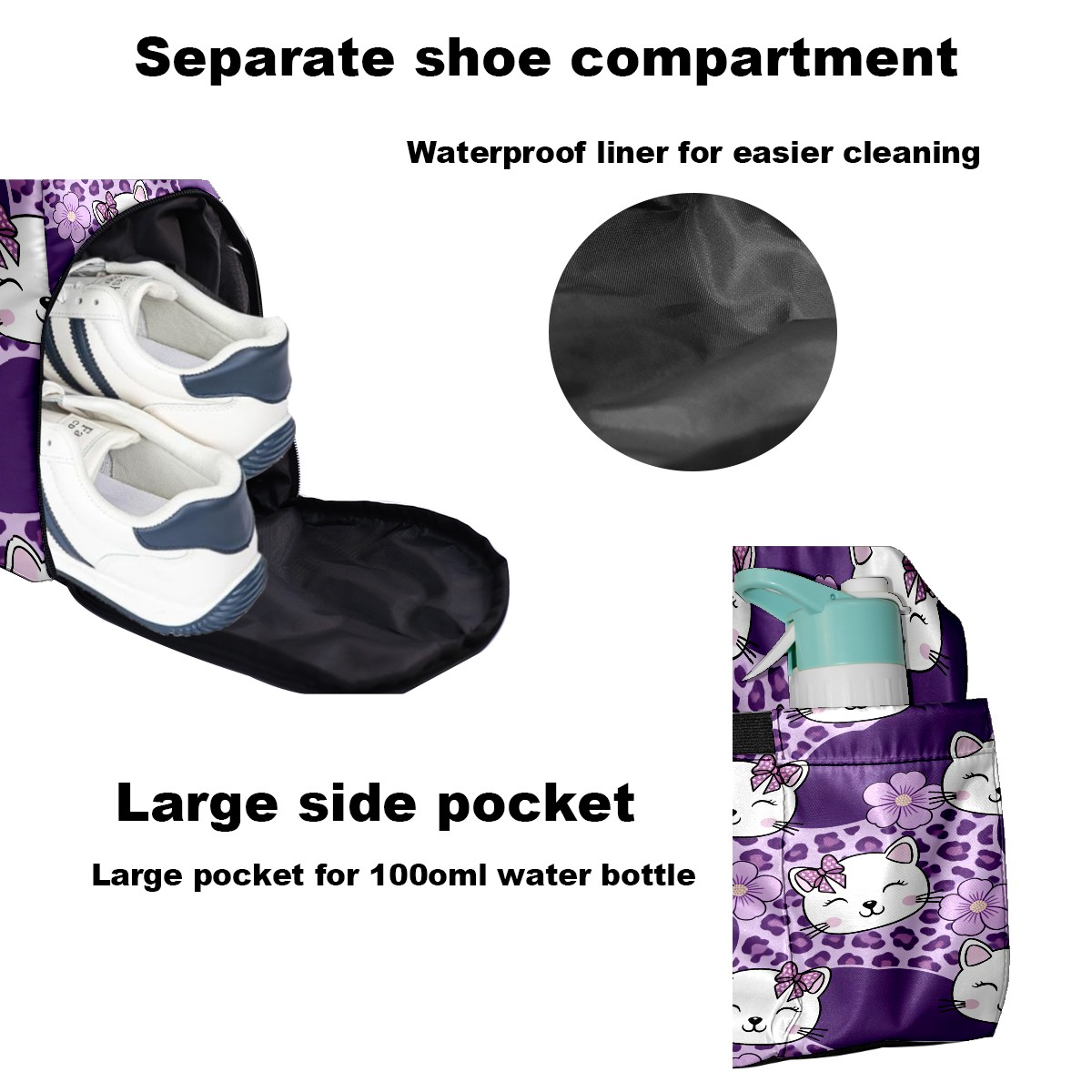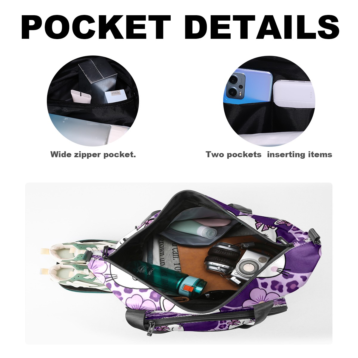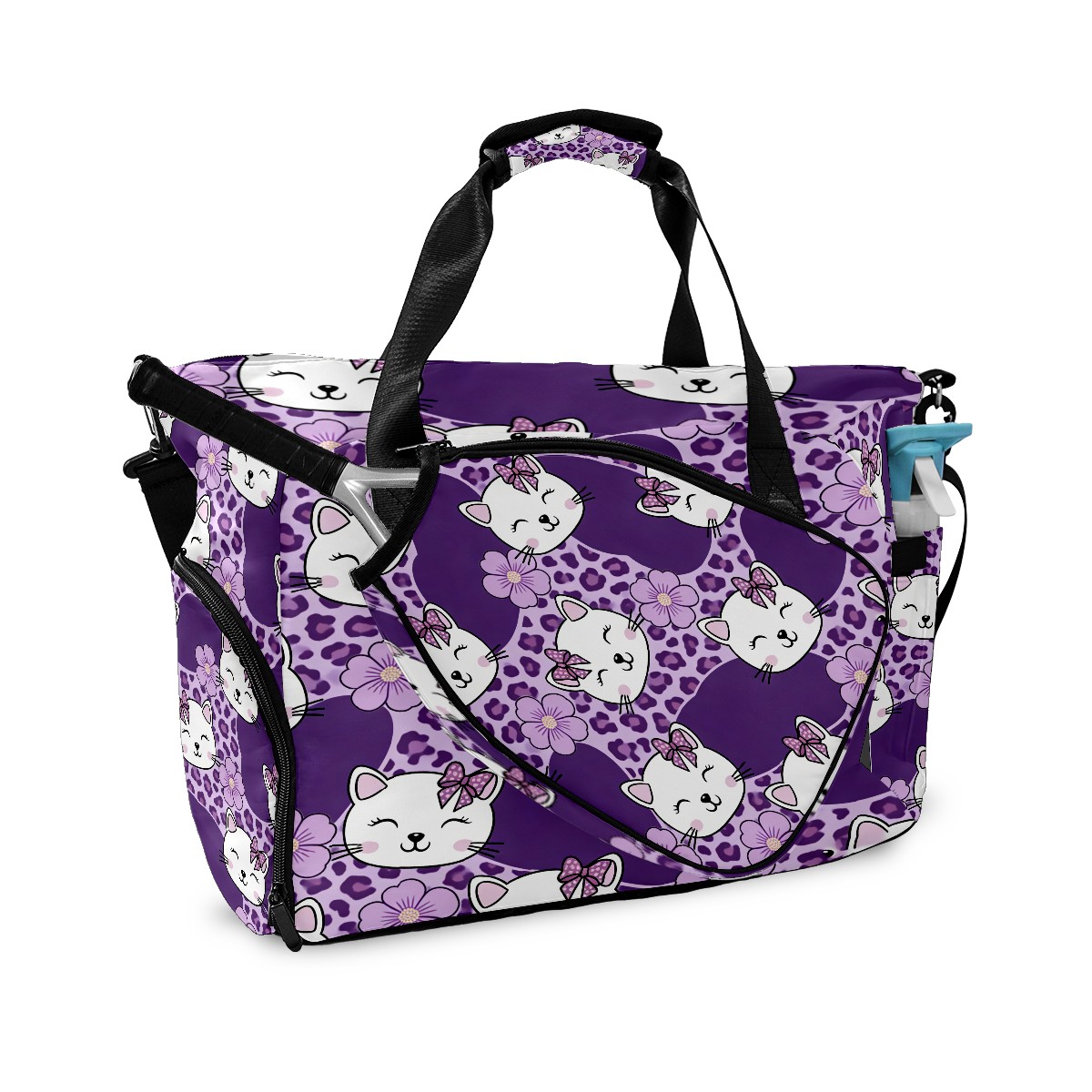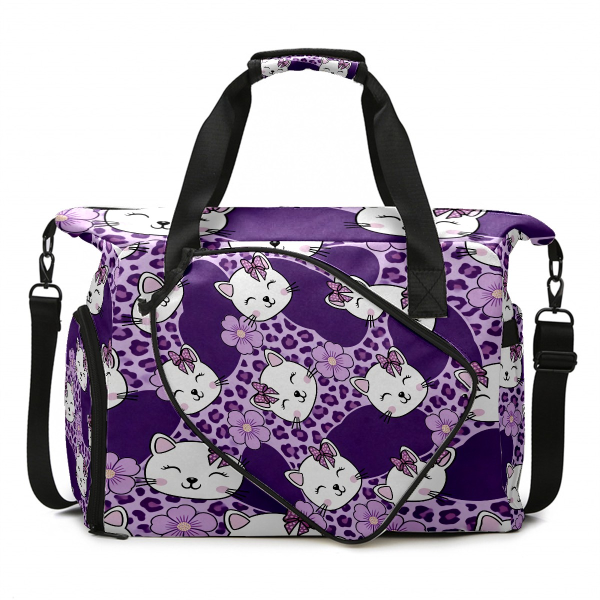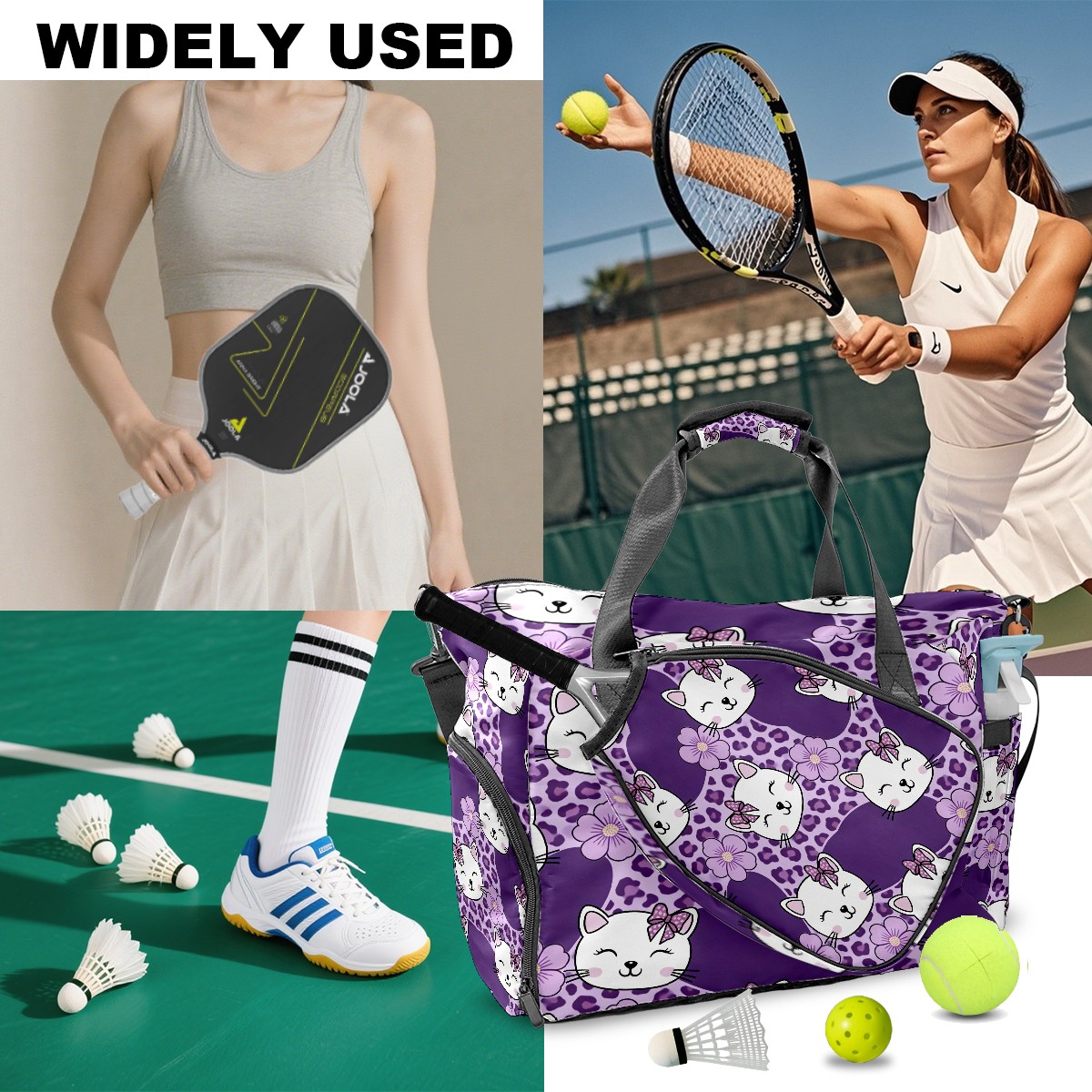 Pickleball Tote Bag Carryall for Paddles Balls and Accessories, Portable Lightweight Gear Bag for Players(Cat Purple)