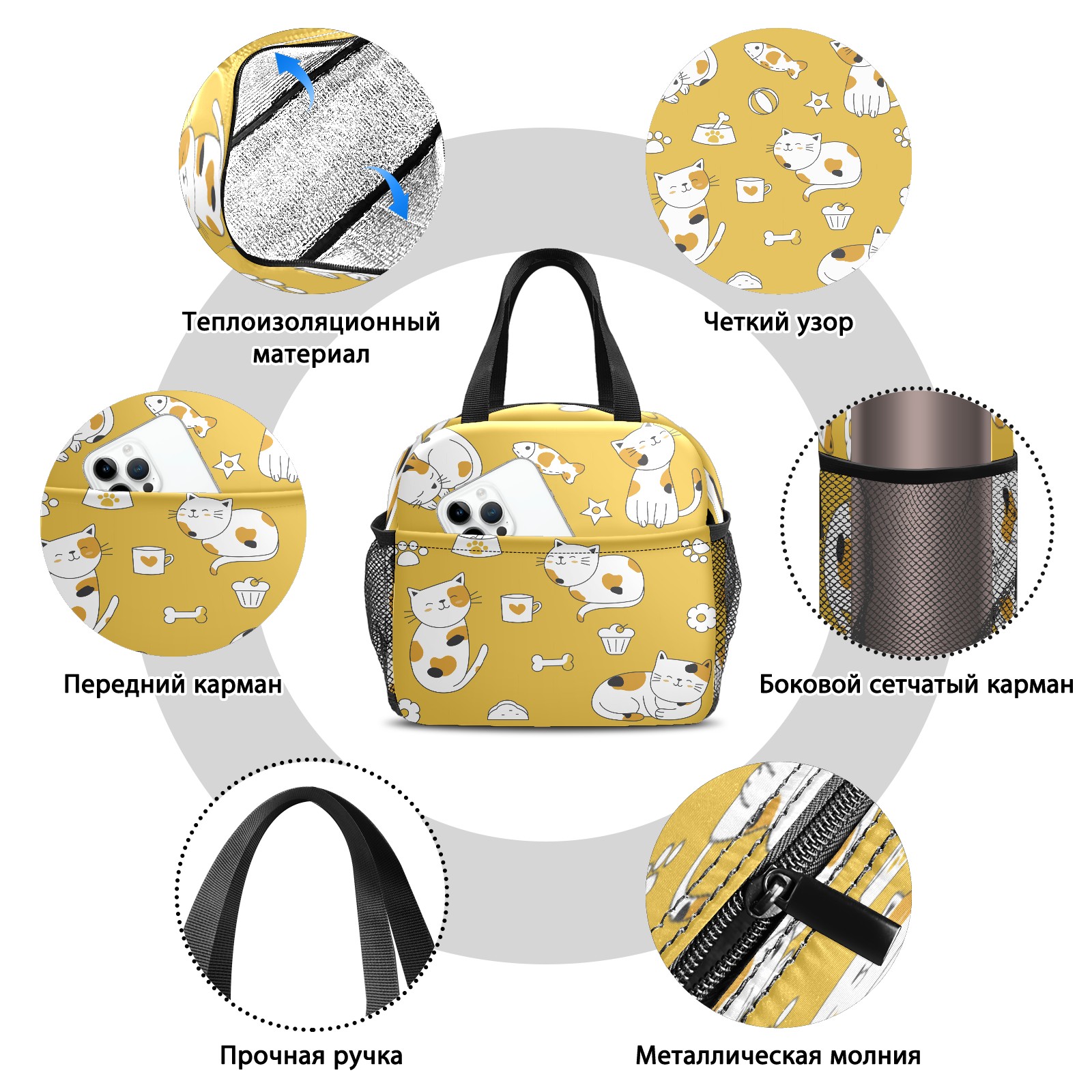 Lunch Bag,Lunch Box for Women Men,Cute Multicolored Cat Reusable Insulated Lunch Tote,Small Leakproof Cute Lunch Cooler with High Capacity for Work,Picnic,Camping