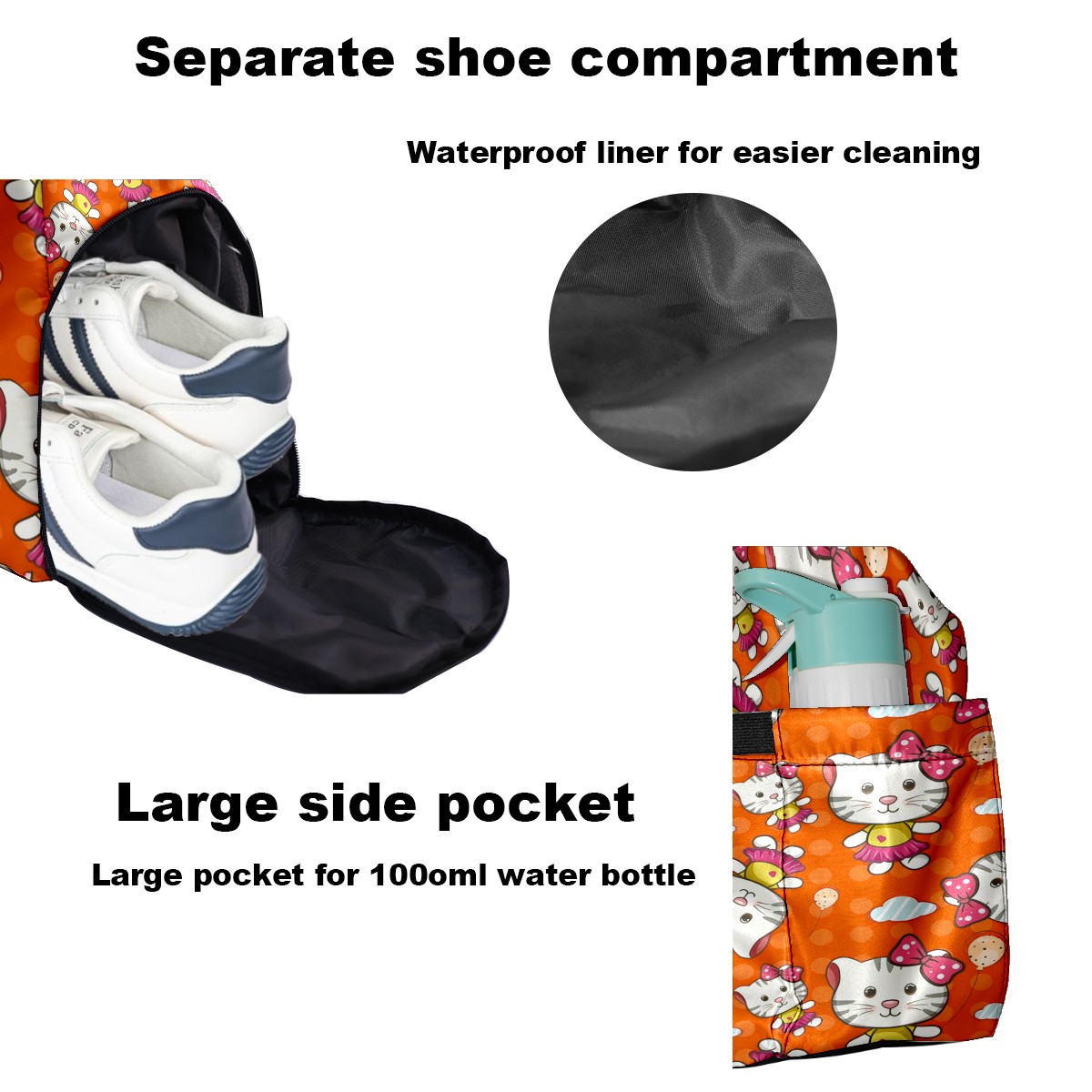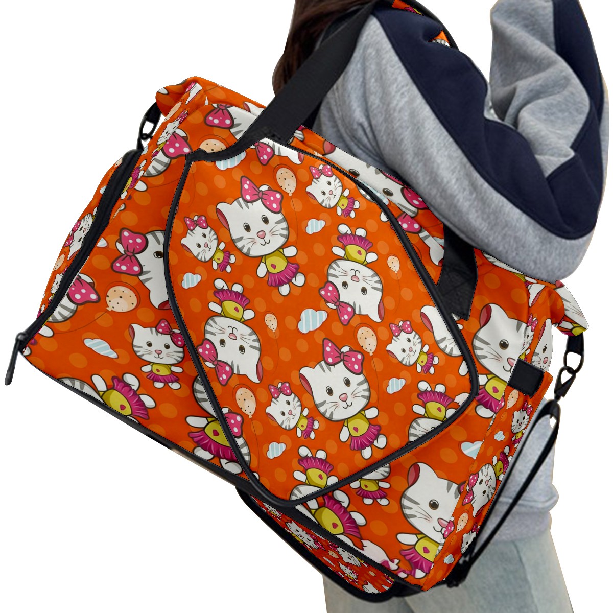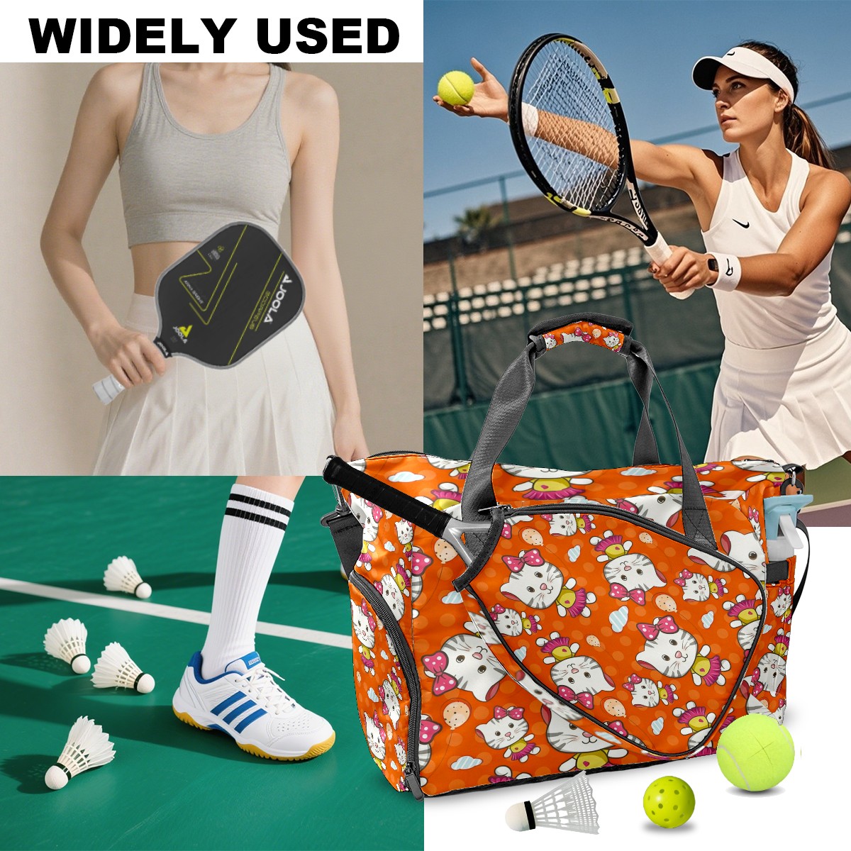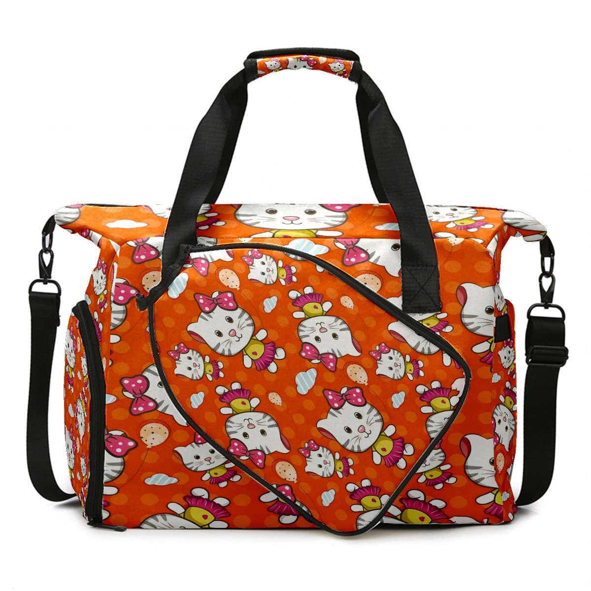 Pickleball Tote Bag Carryall for Paddles Balls and Accessories, Portable Lightweight Gear Bag for Players(Cat Orange)