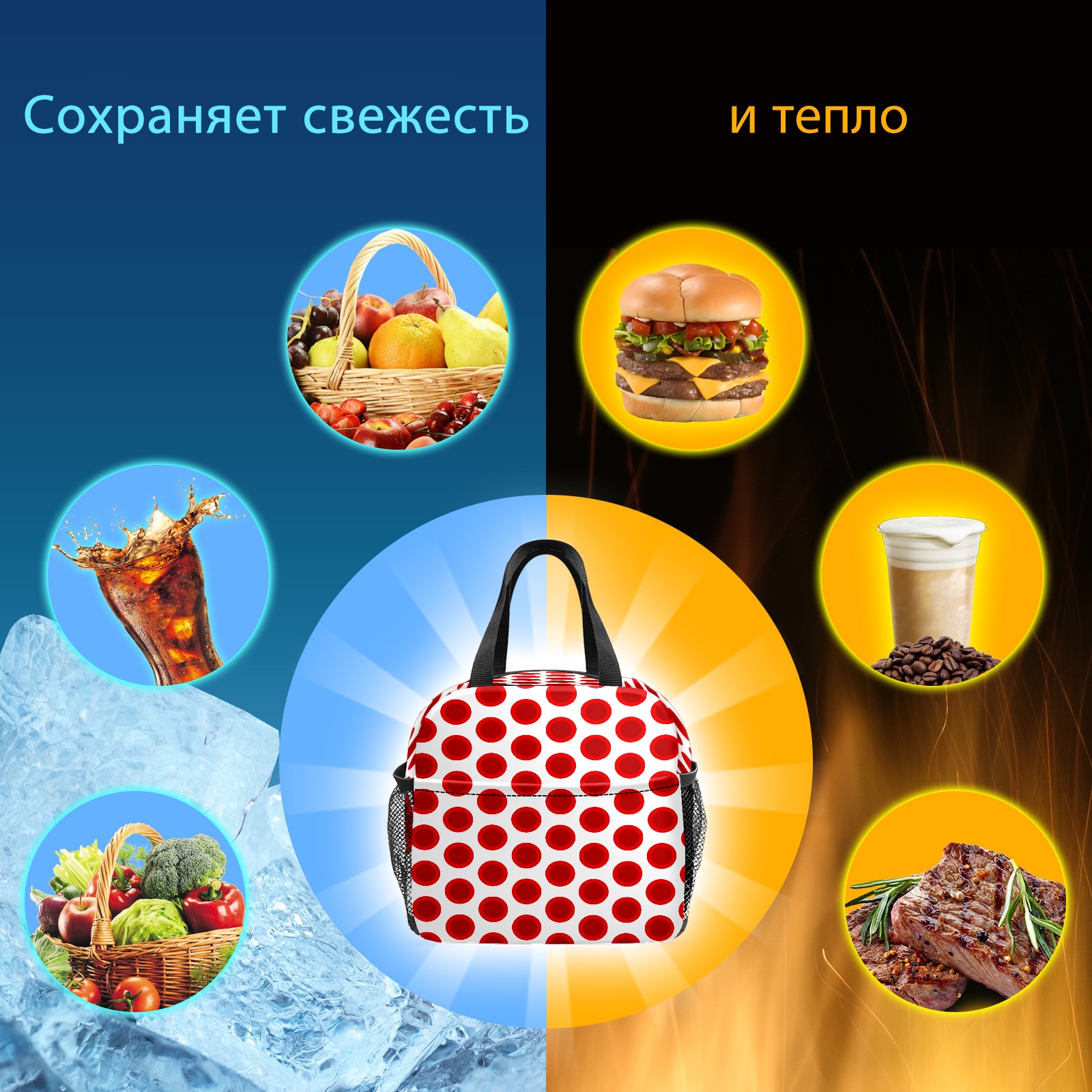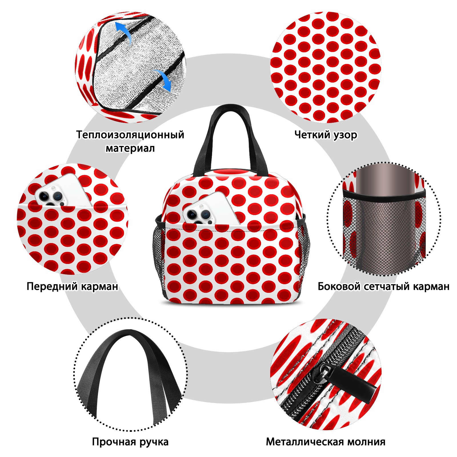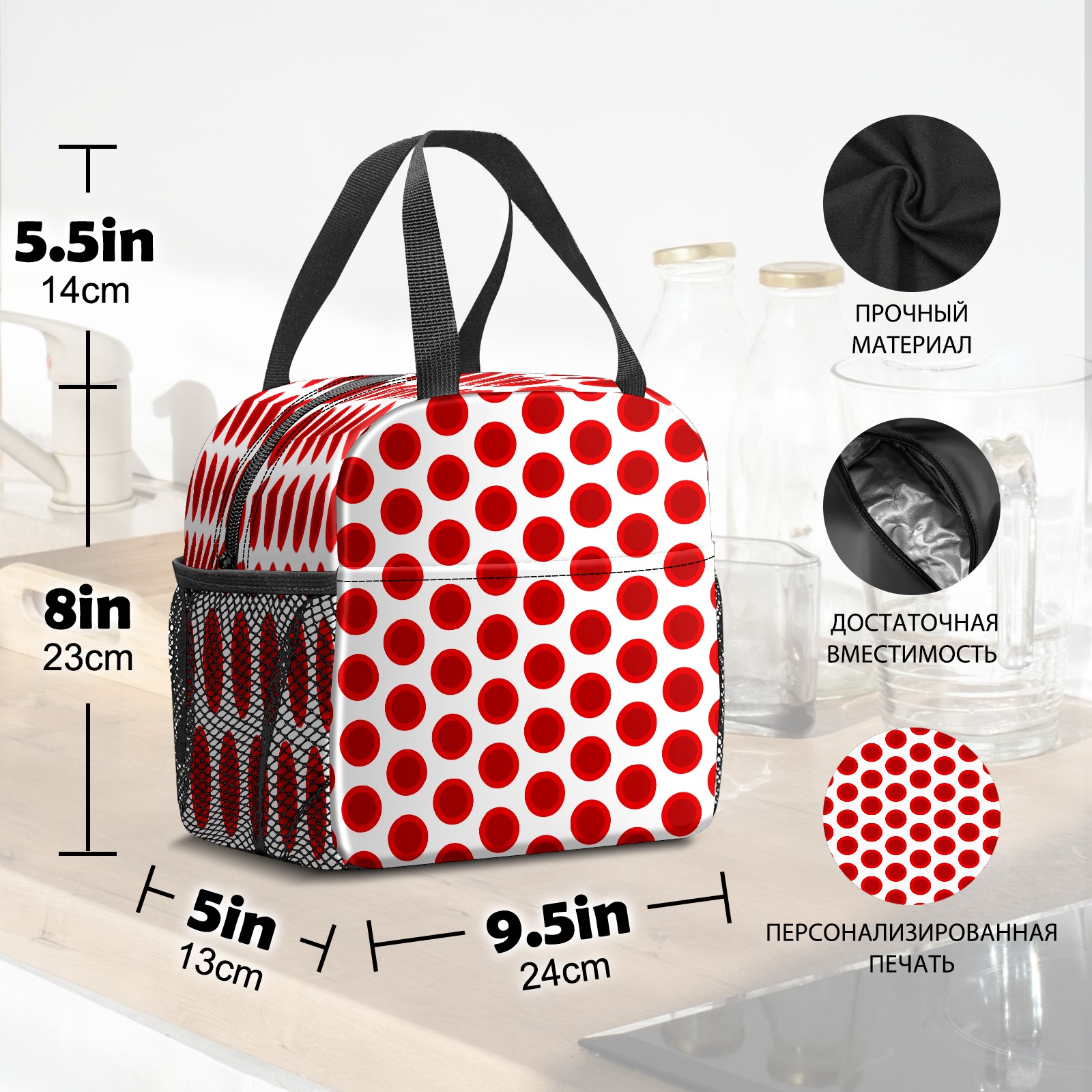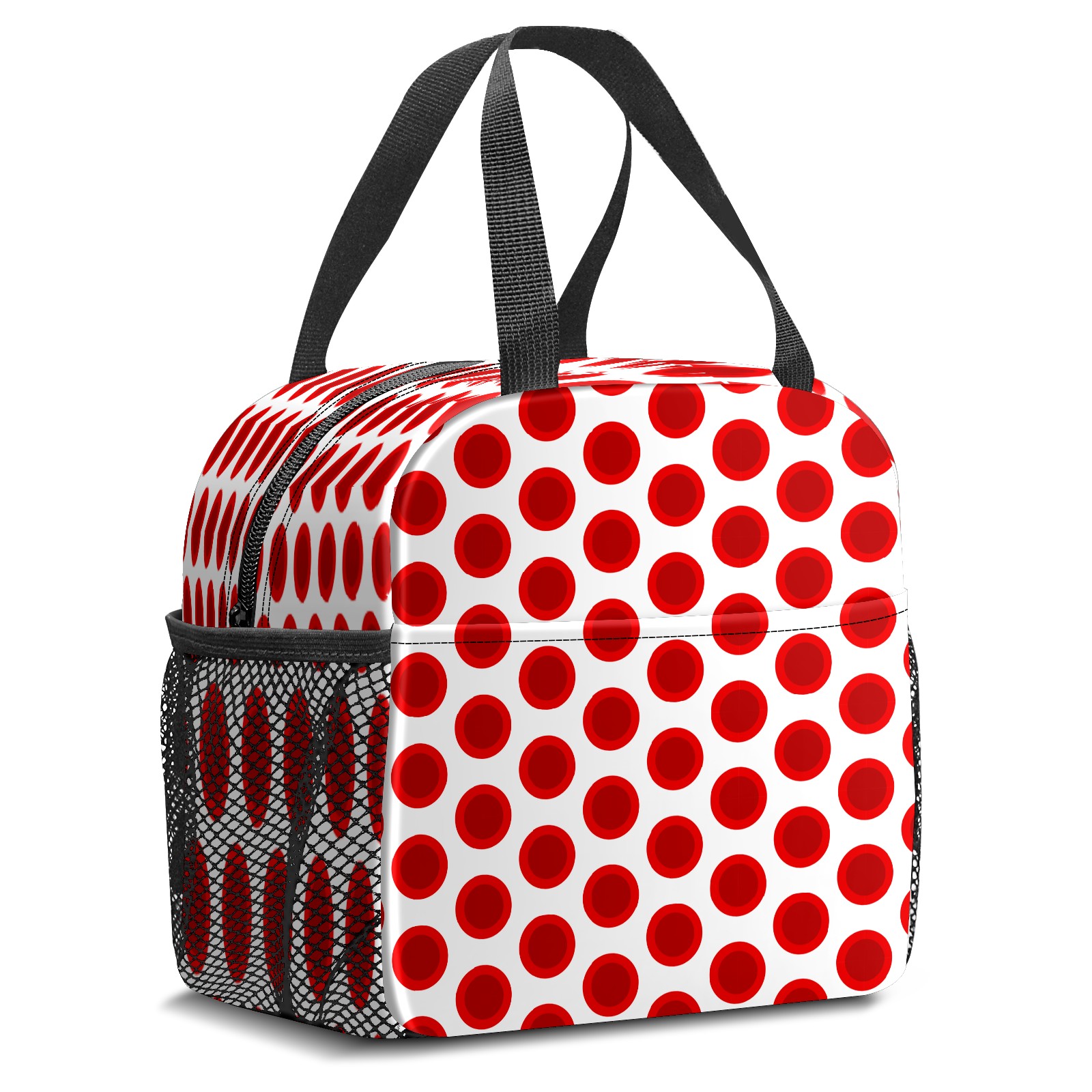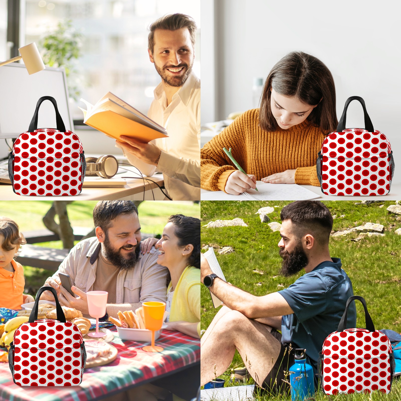 Lunch Bag,Lunch Box for Women Men,Red Dots Pattern White Background Reusable Insulated Lunch Tote,Small Leakproof Cute Lunch Cooler with High Capacity for Work,Picnic,Camping