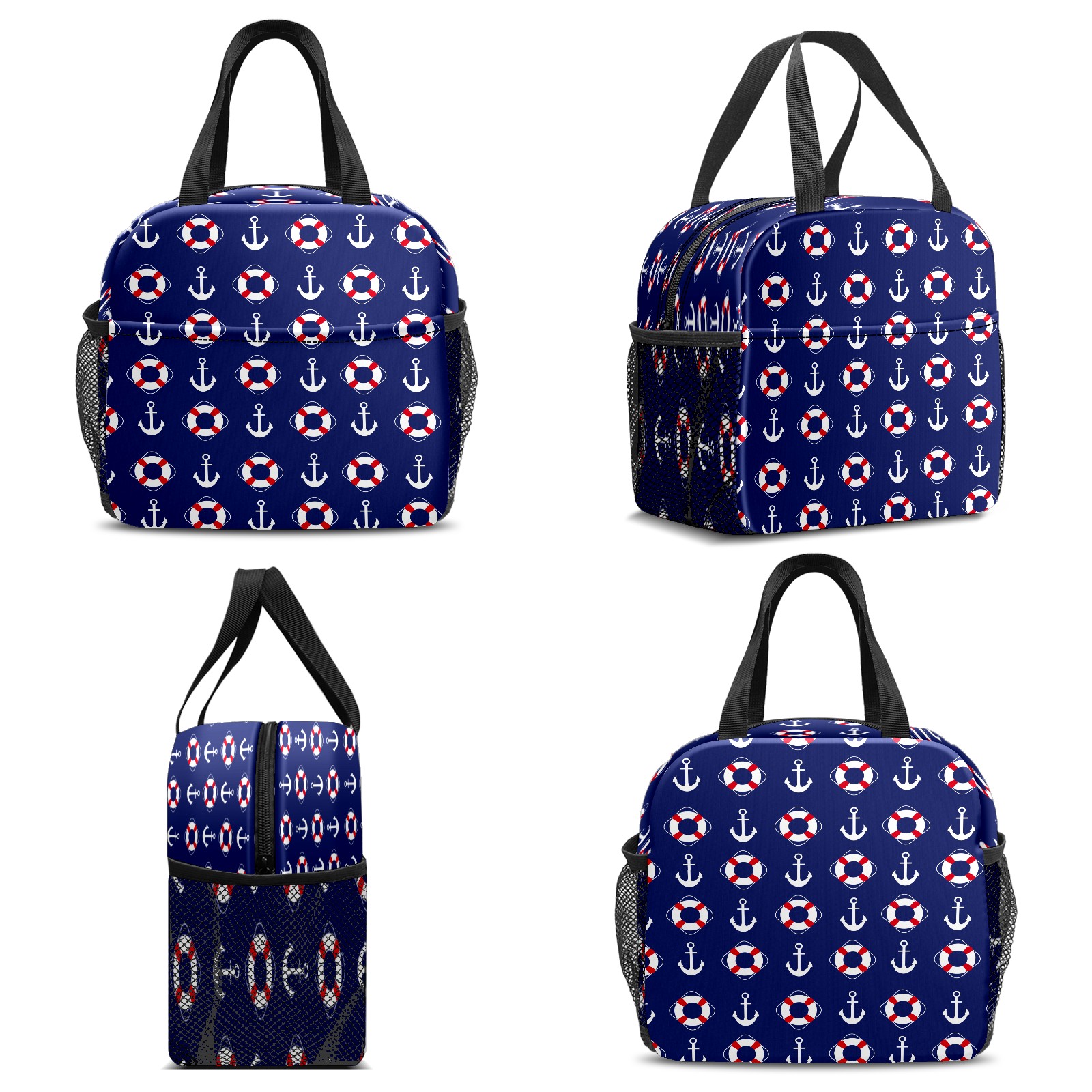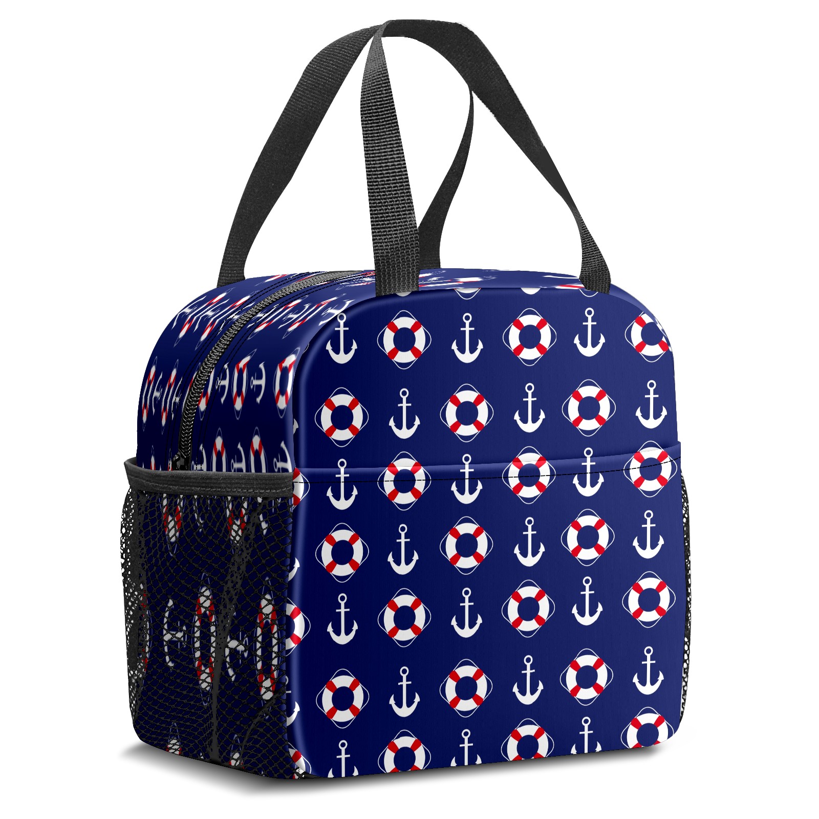 Lunch Bag,Lunch Box for Women Men,Nautical Achor Lifebelt Pattern Navy Blue Reusable Insulated Lunch Tote,Small Leakproof Cute Lunch Cooler with High Capacity for Work,Picnic,Camping