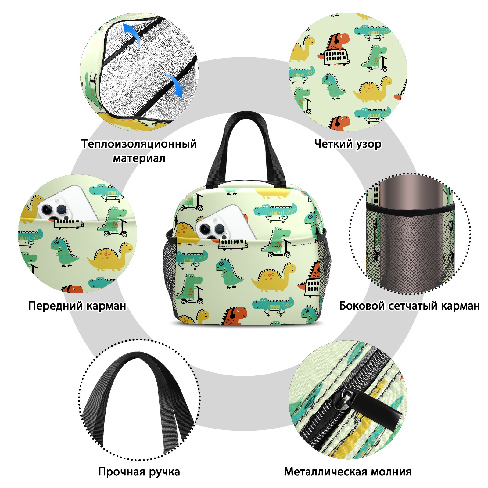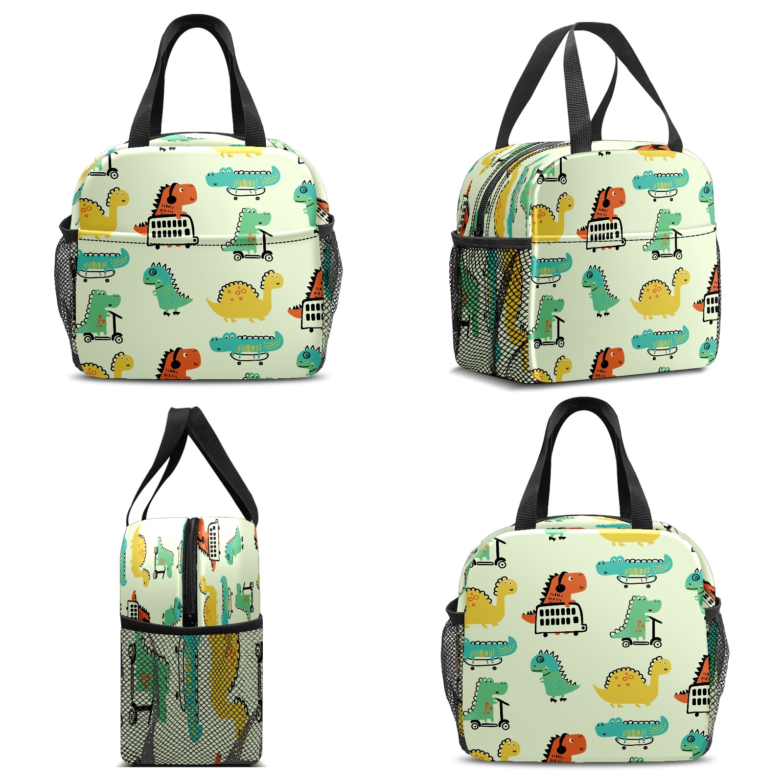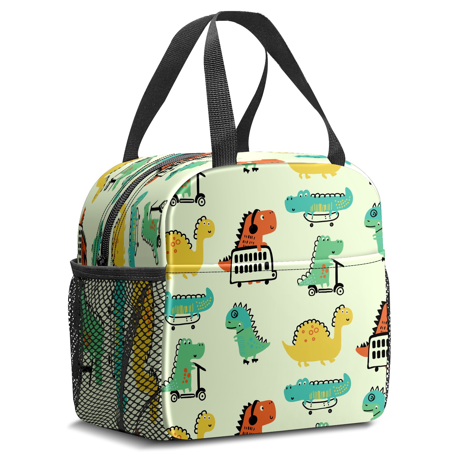 Lunch Bag,Lunch Box for Women Men,Hand Drawn Dinosaurs Playing Music Skating Reusable Insulated Lunch Tote,Small Leakproof Cute Lunch Cooler with High Capacity for Work,Picnic,Camping