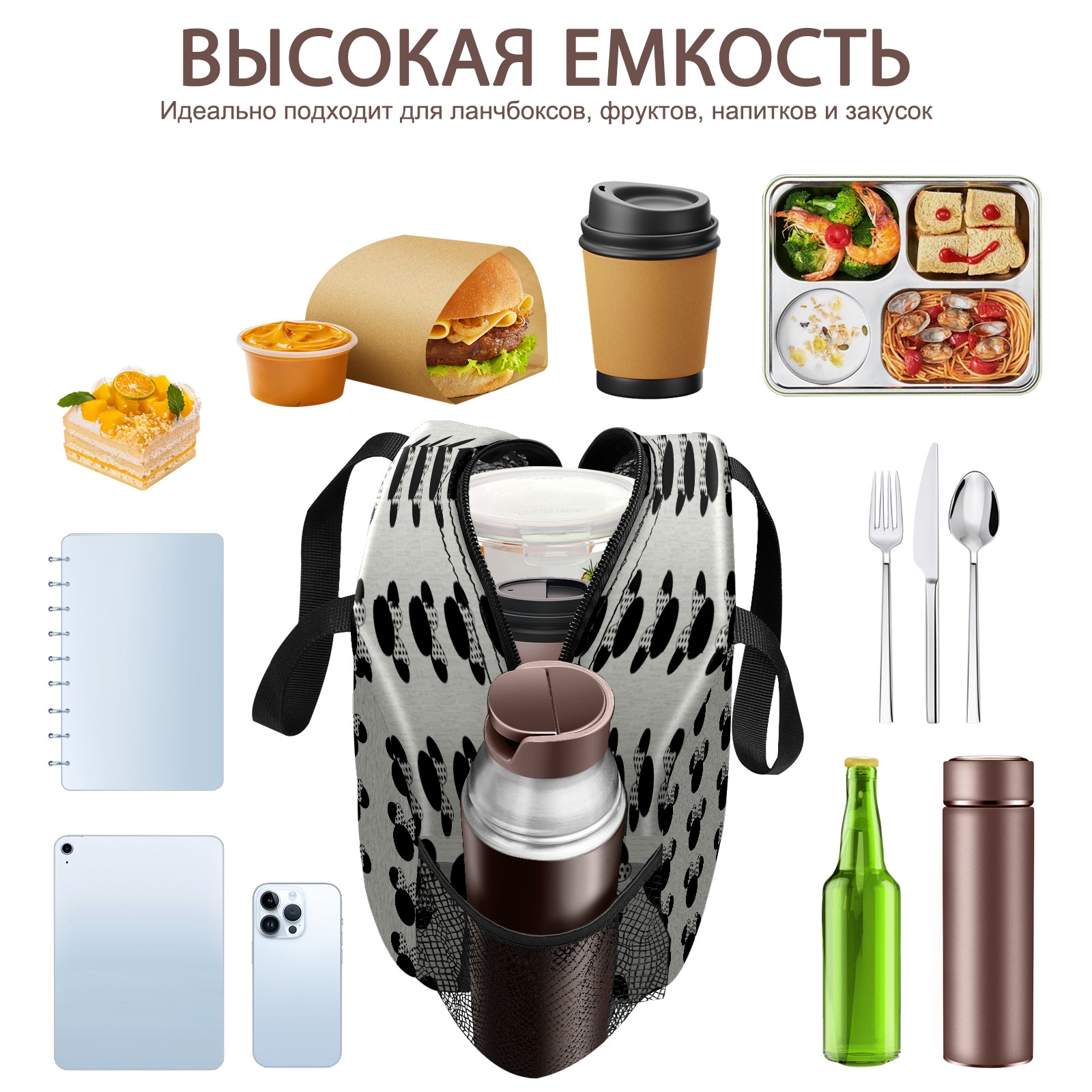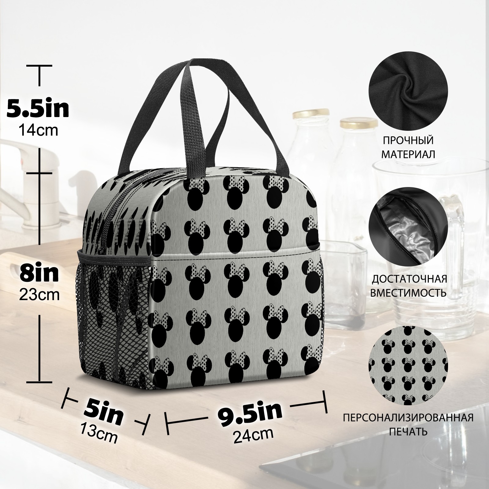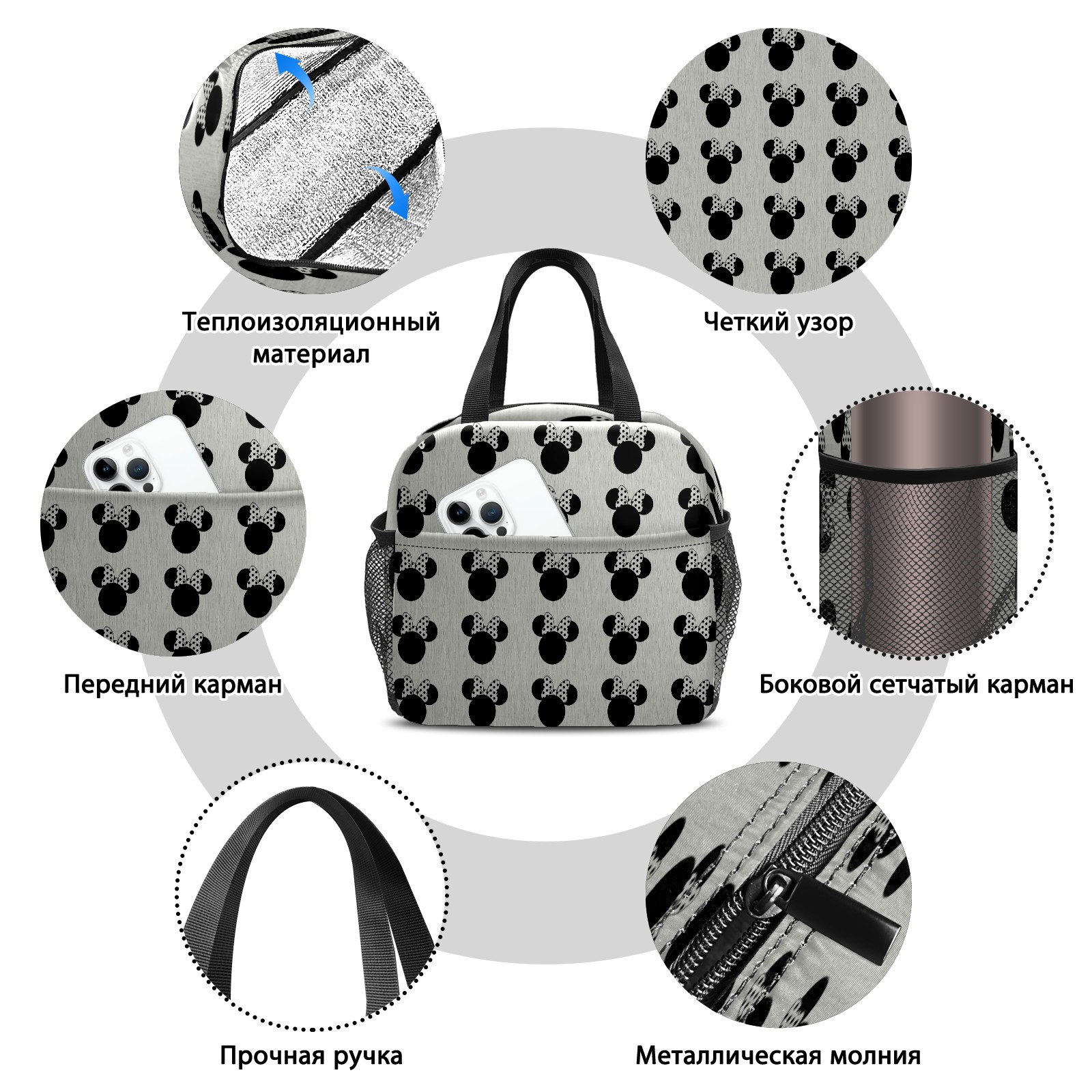 Lunch Bag,Lunch Box for Women Men,Black Mouse Pattern Reusable Insulated Lunch Tote,Small Leakproof Cute Lunch Cooler with High Capacity for Work,Picnic,Camping