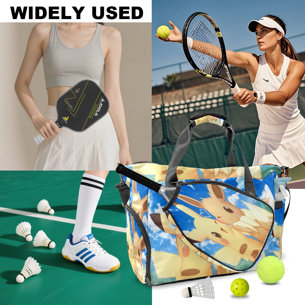 • <p>Meet your ultimate court companion – the premium pickleball bag designed for players who demand durability and smart organization. Whether you're heading to a local tournament or a casual game with friends, our meticulously crafted bag keeps your gear secure, accessible, and tournament-ready.</p> <p><b>Built for the Active Lifestyle:</b></p> <p>From casual pickleball games to competitive leagues, this bag adapts to your needs. Store paddles, balls, towels, water bottles, and phones in intelligently placed pockets. The nylon fabric construction withstands court abrasions and daily use season after season.</p>