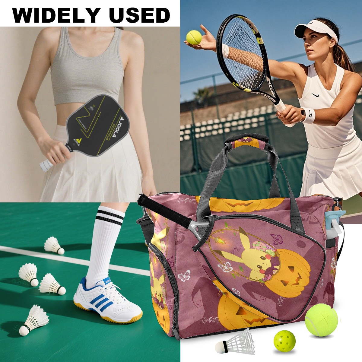 Pickleball Tote Bag Carryall for Paddles Balls and Accessories, Portable Lightweight Gear Bag for Players(横图A (283))