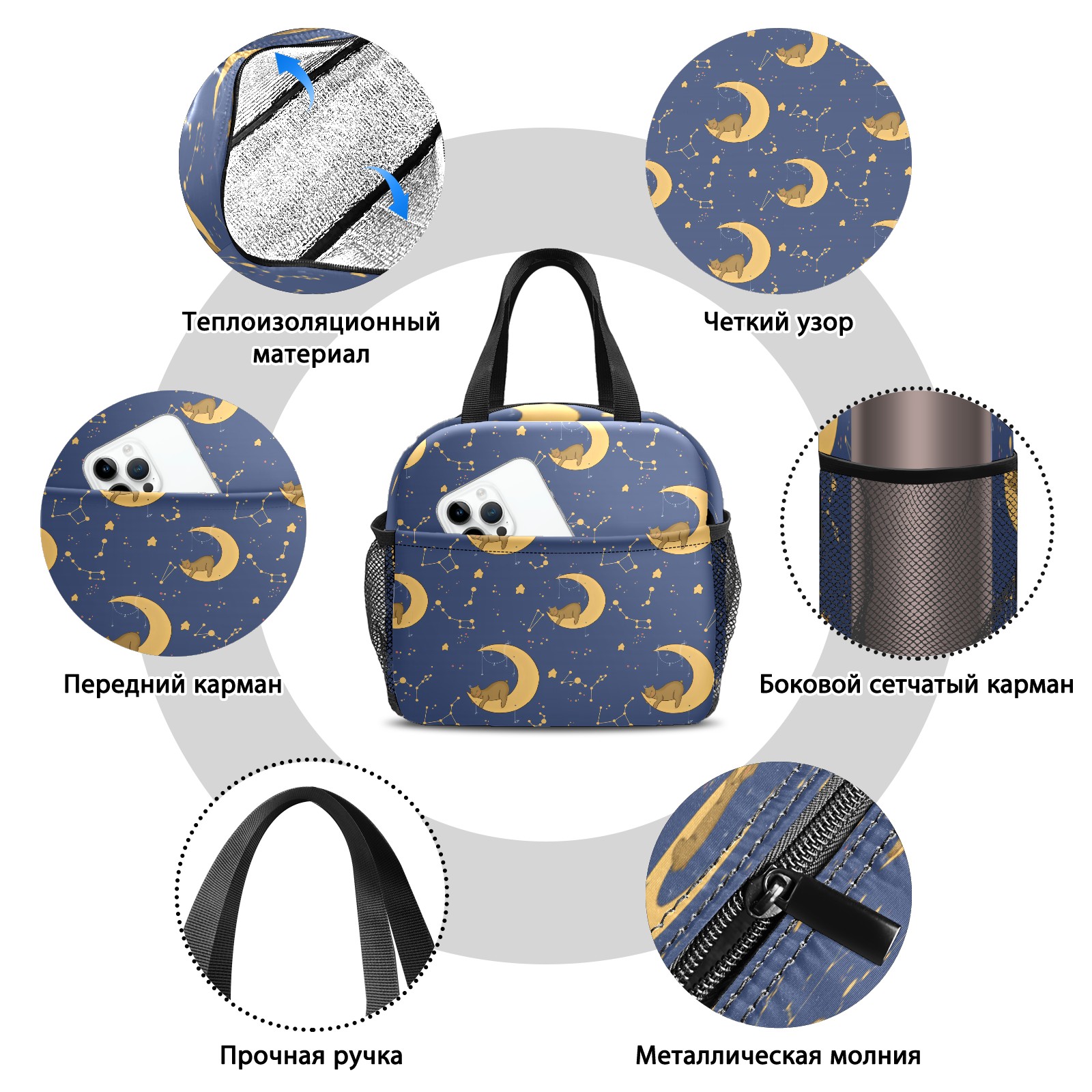 Lunch Bag,Lunch Box for Women Men,Bears Moon Stars Galaxy Pattern Reusable Insulated Lunch Tote,Small Leakproof Cute Lunch Cooler with High Capacity for Work,Picnic,Camping