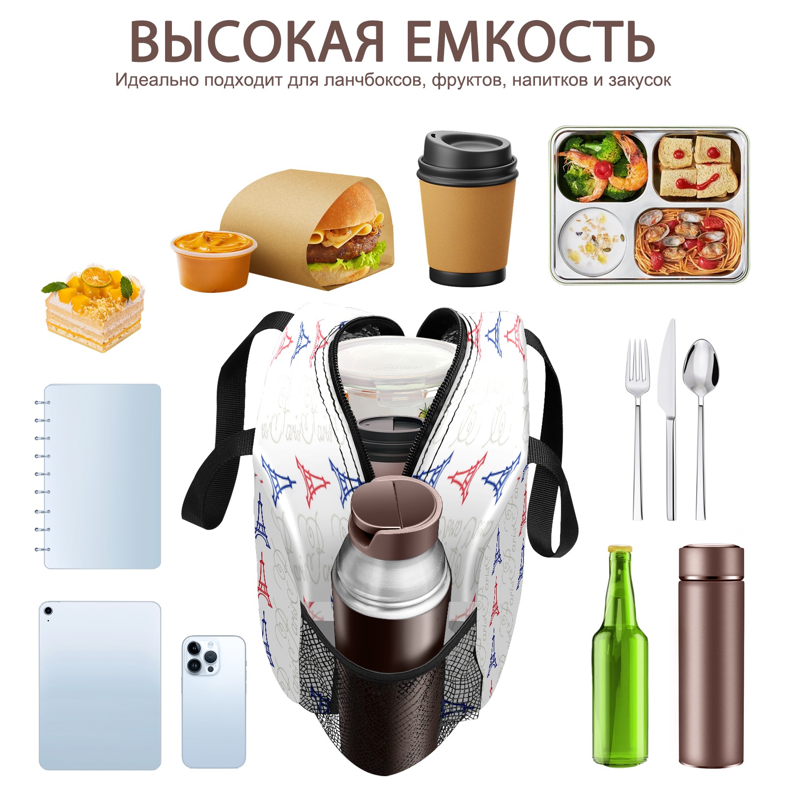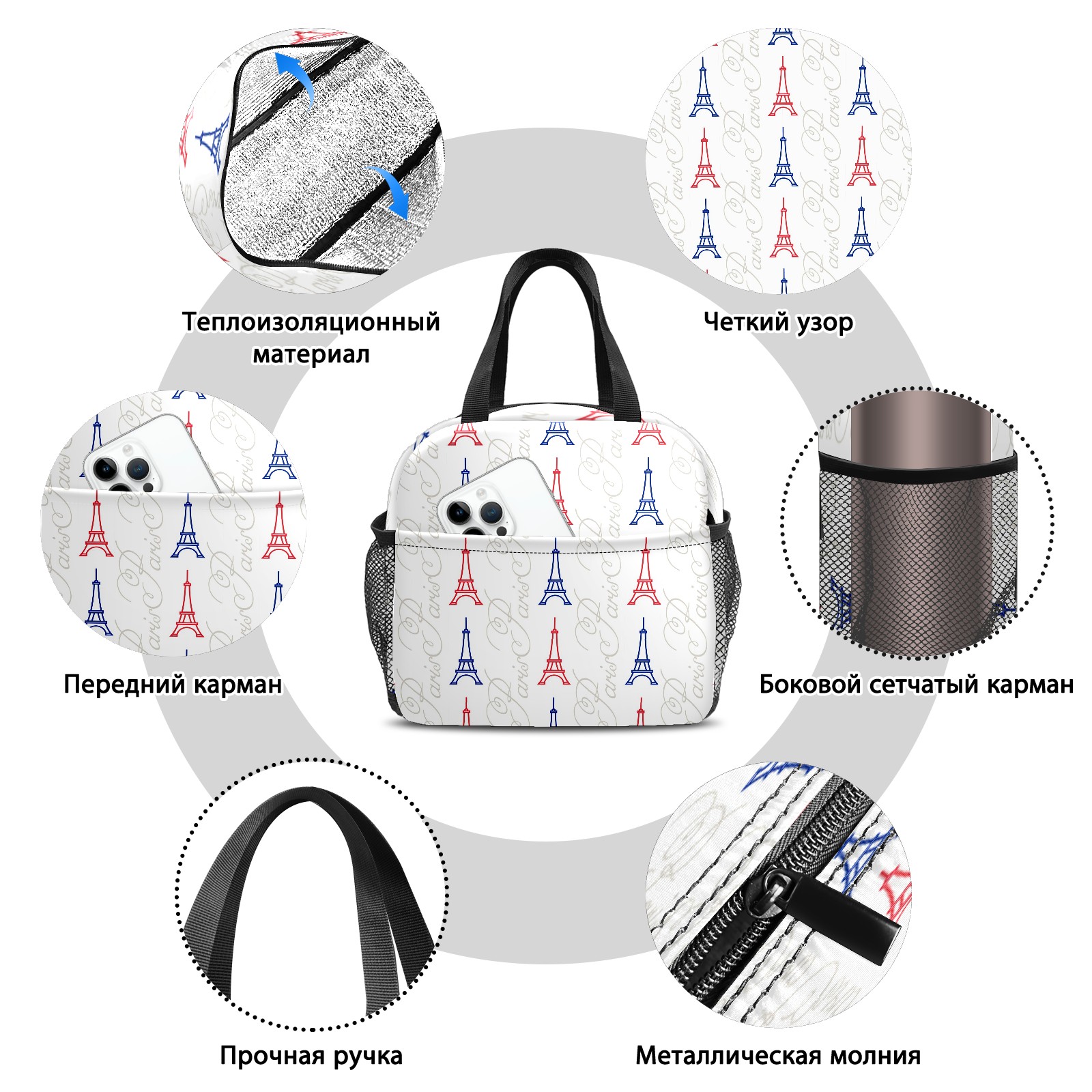 Lunch Bag,Lunch Box for Women Men,The Eiffel Tower Pattern Reusable Insulated Lunch Tote,Small Leakproof Cute Lunch Cooler with High Capacity for Work,Picnic,Camping