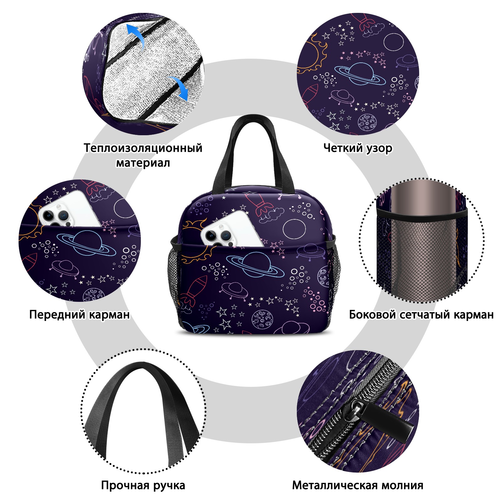 Lunch Bag,Lunch Box for Women Men,Space Pattern Reusable Insulated Lunch Tote,Small Leakproof Cute Lunch Cooler with High Capacity for Work,Picnic,Camping