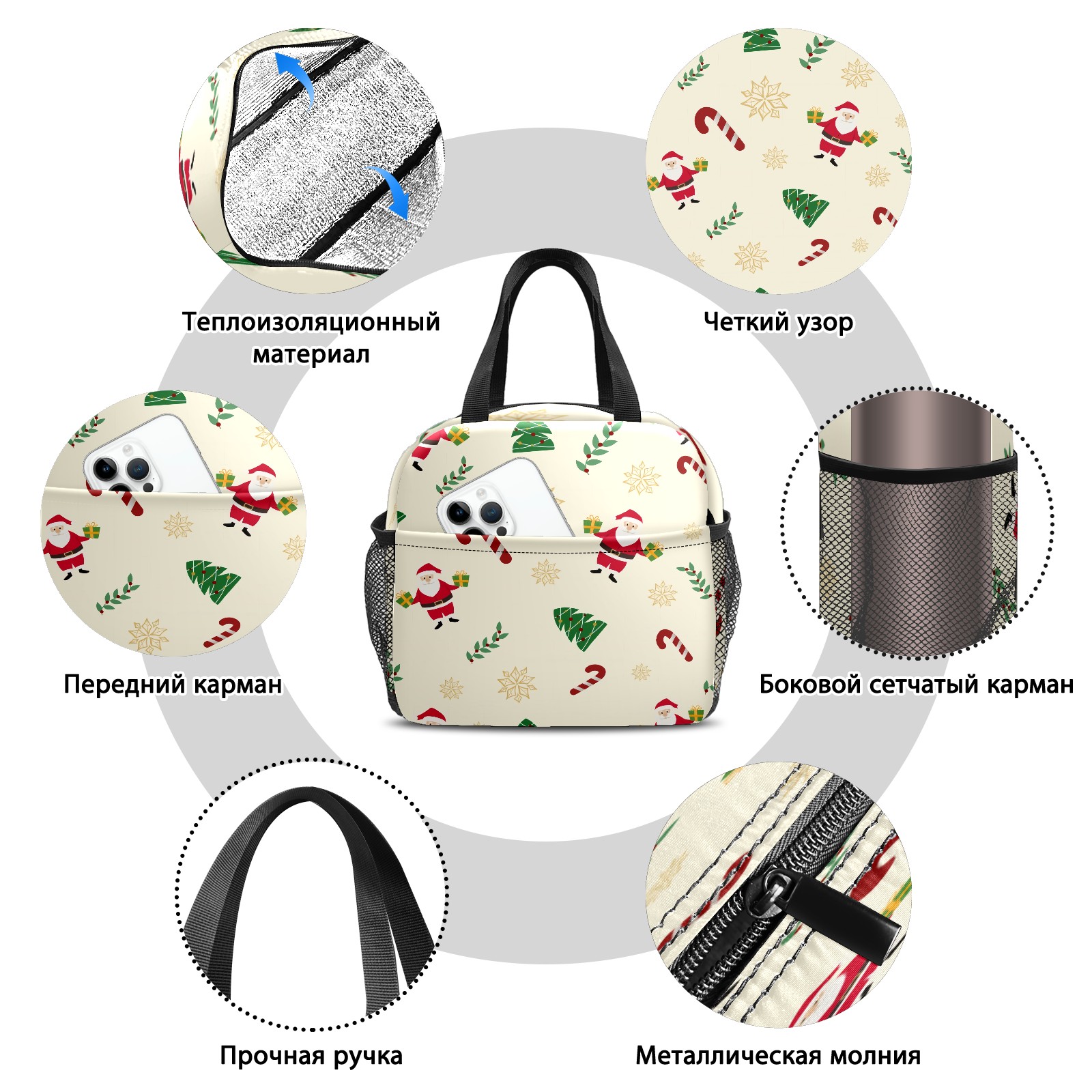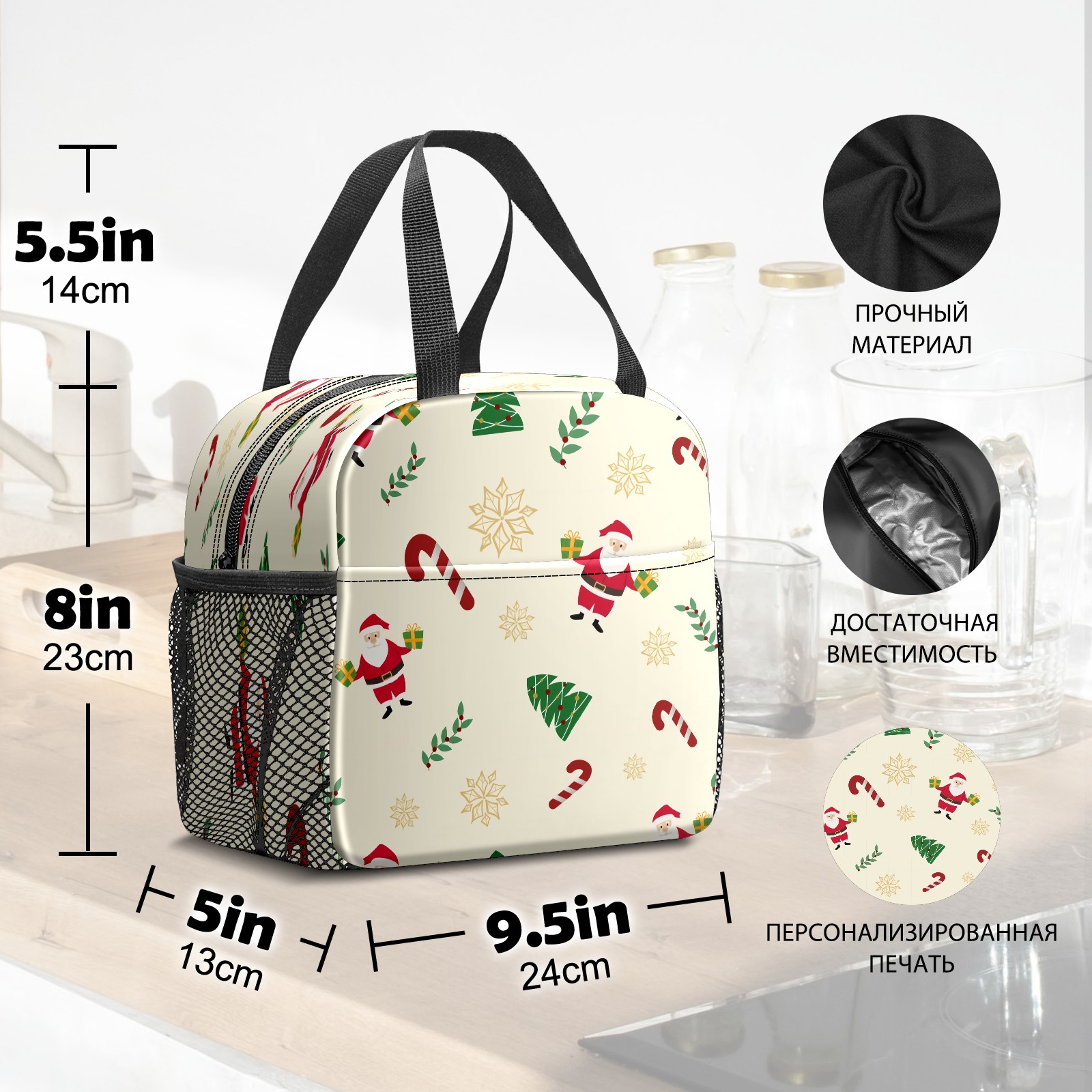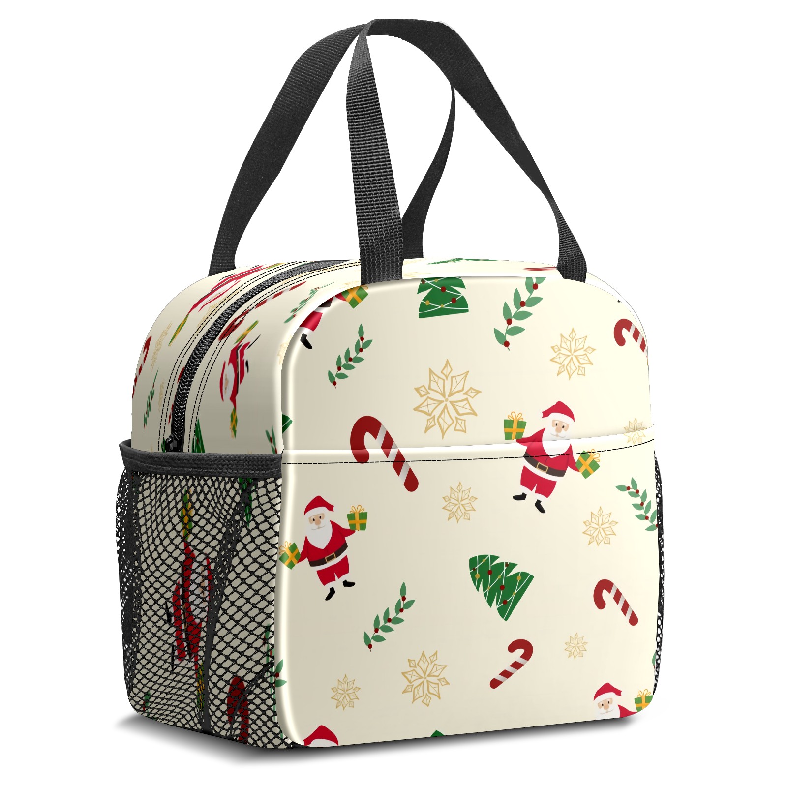 Lunch Bag,Lunch Box for Women Men,Santa Claus Candy Cane Christmas Pattern Reusable Insulated Lunch Tote,Small Leakproof Cute Lunch Cooler with High Capacity for Work,Picnic,Camping