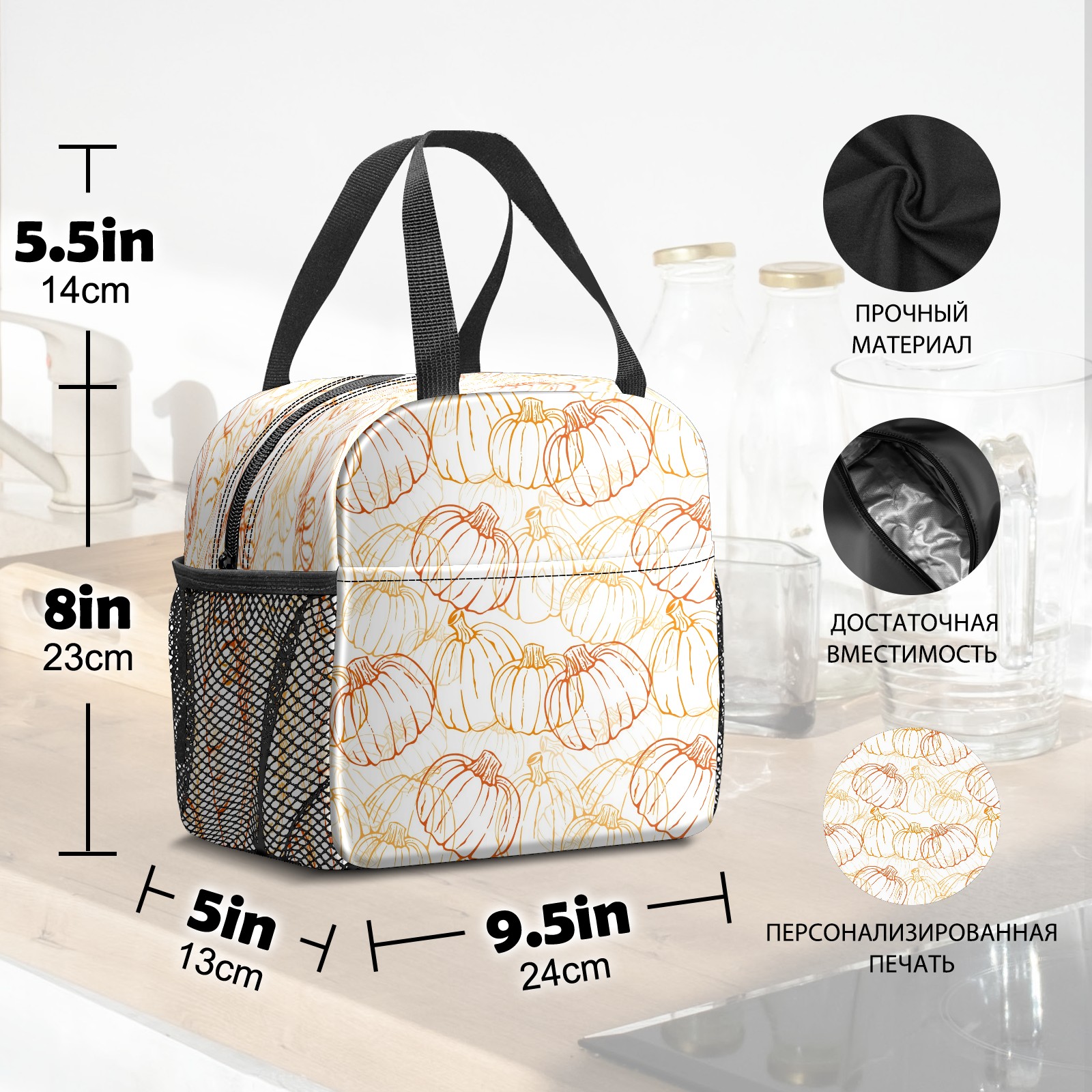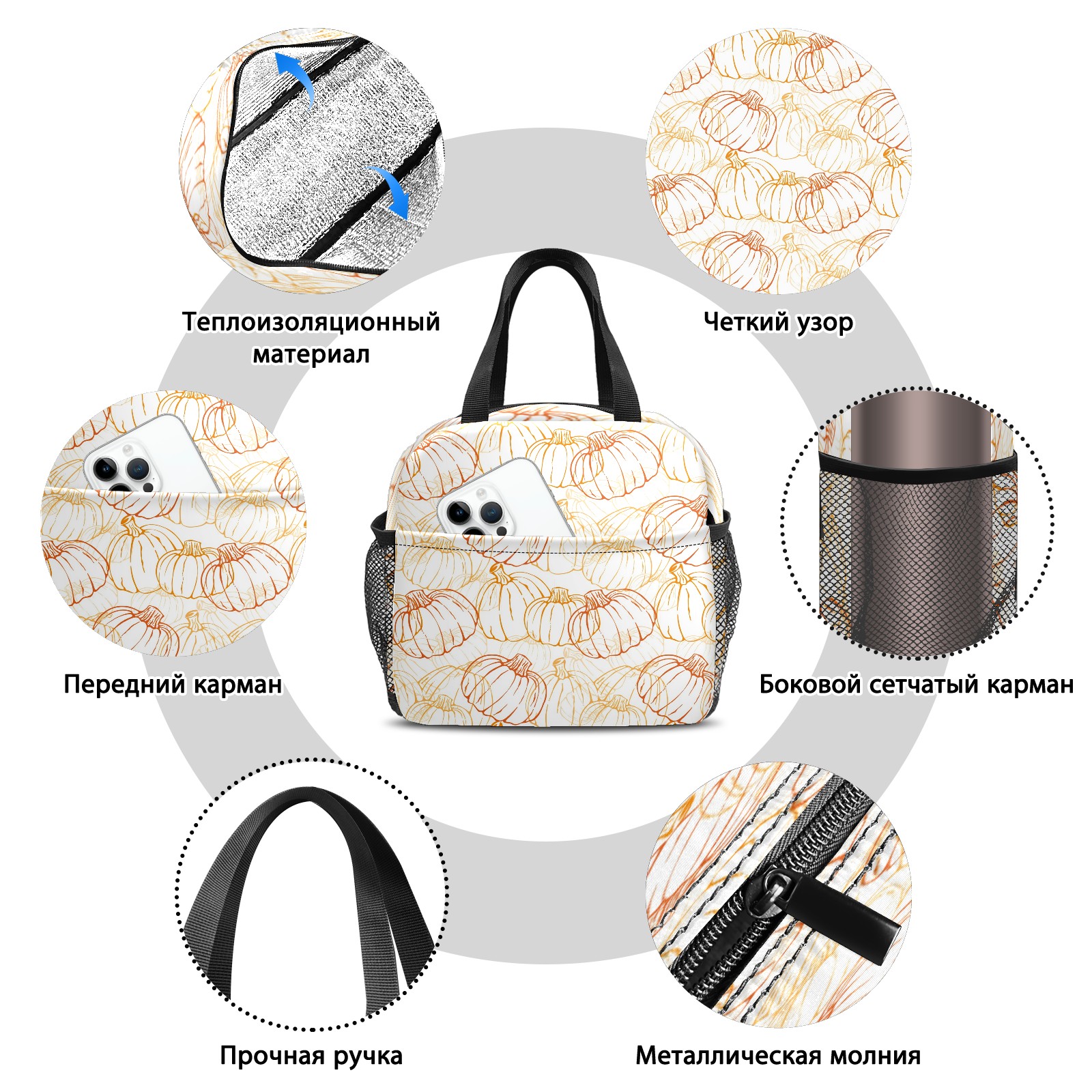 Lunch Bag,Lunch Box for Women Men,Pumpkin Pattern Reusable Insulated Lunch Tote,Small Leakproof Cute Lunch Cooler with High Capacity for Work,Picnic,Camping