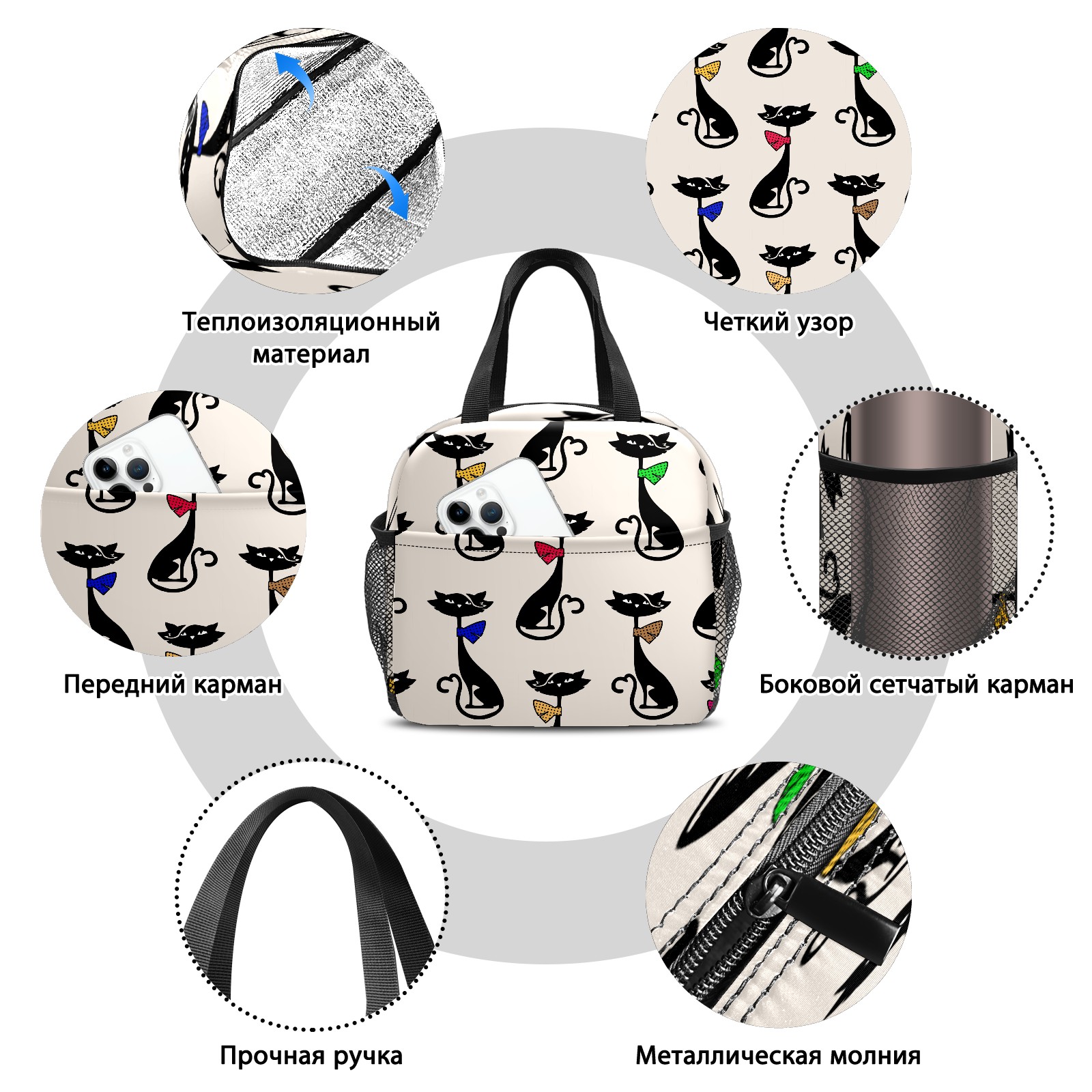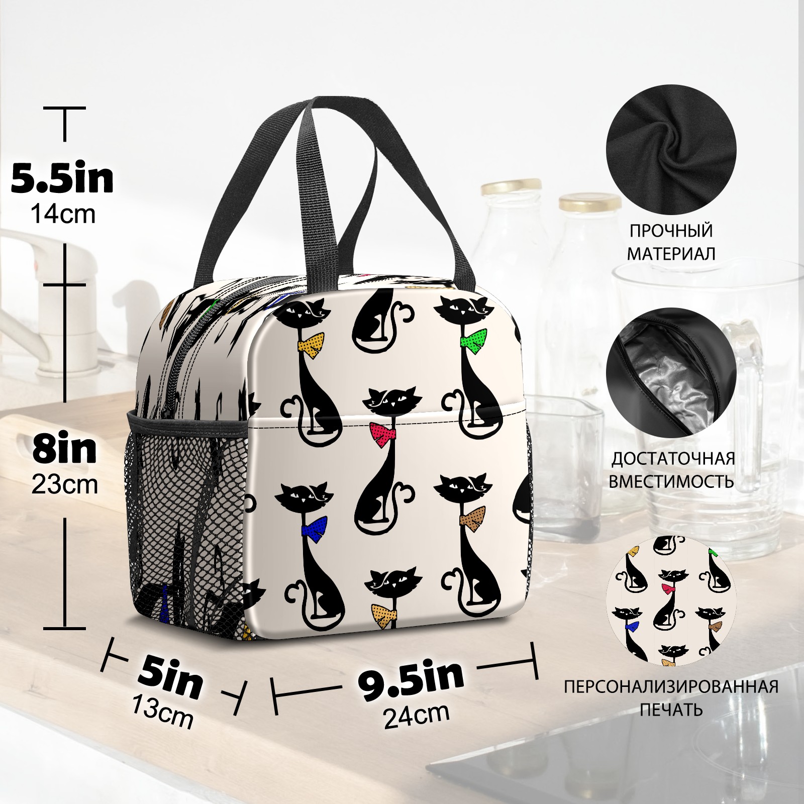 Lunch Bag,Lunch Box for Women Men,Black Cat Reusable Insulated Lunch Tote,Small Leakproof Cute Lunch Cooler with High Capacity for Work,Picnic,Camping