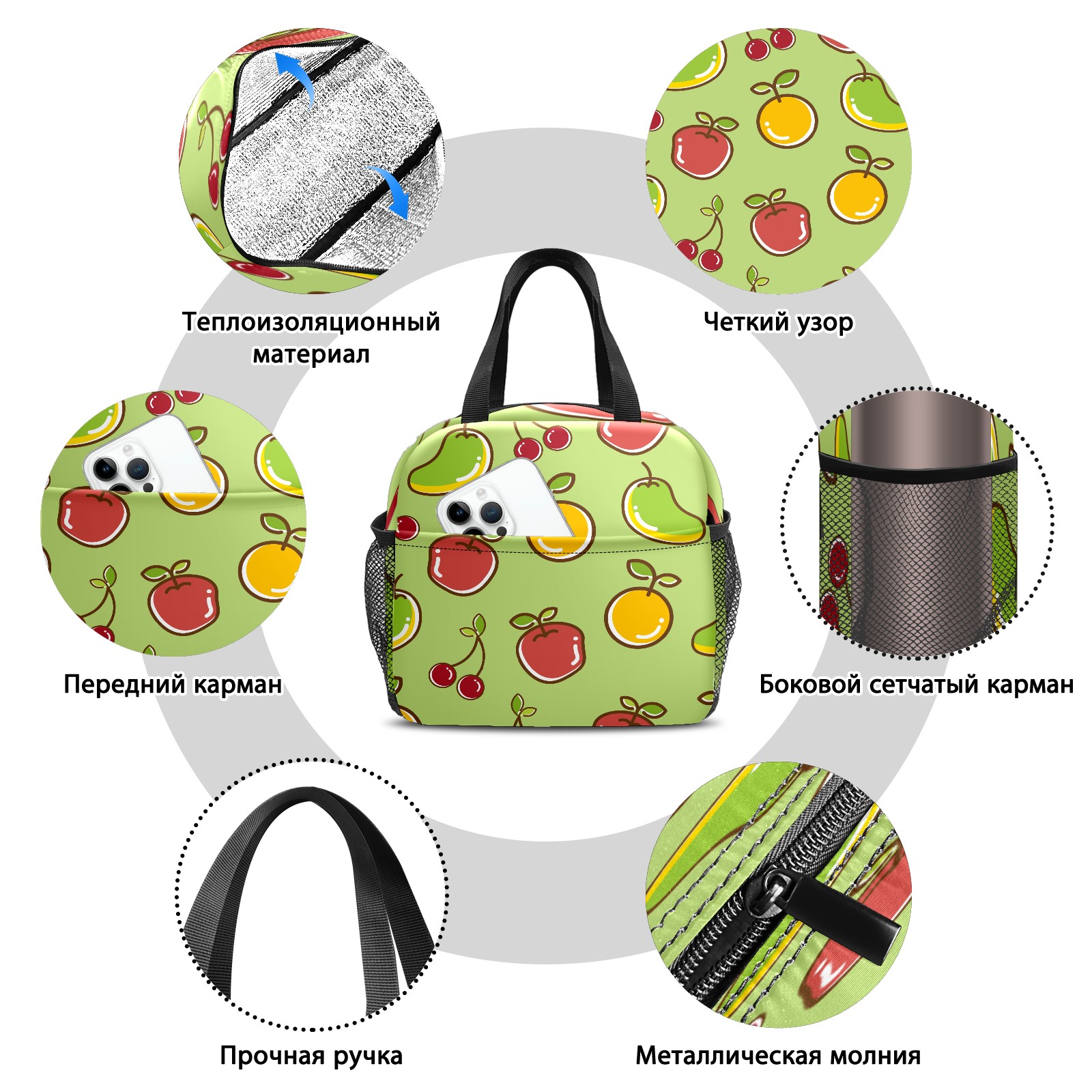 Lunch Bag,Lunch Box for Women Men,Cartoon Fruit Pattern Reusable Insulated Lunch Tote,Small Leakproof Cute Lunch Cooler with High Capacity for Work,Picnic,Camping